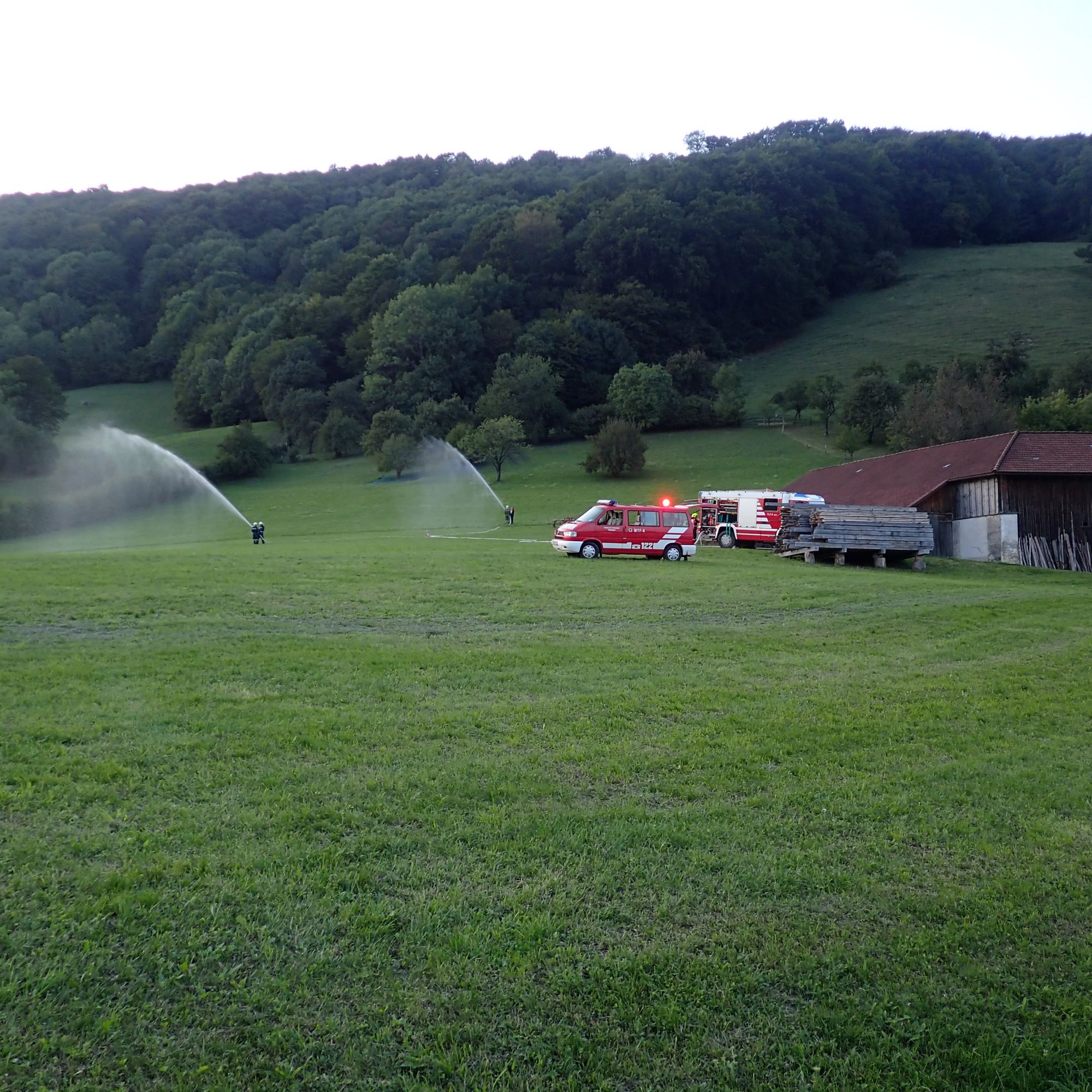 Insgesamt nahmen 90 Feuerwehrmitglieder mit 13 Fahrzeugen an dieser Übung teil. 49 B- Schläuche und 4 C-Schläuche wurden verlegt.