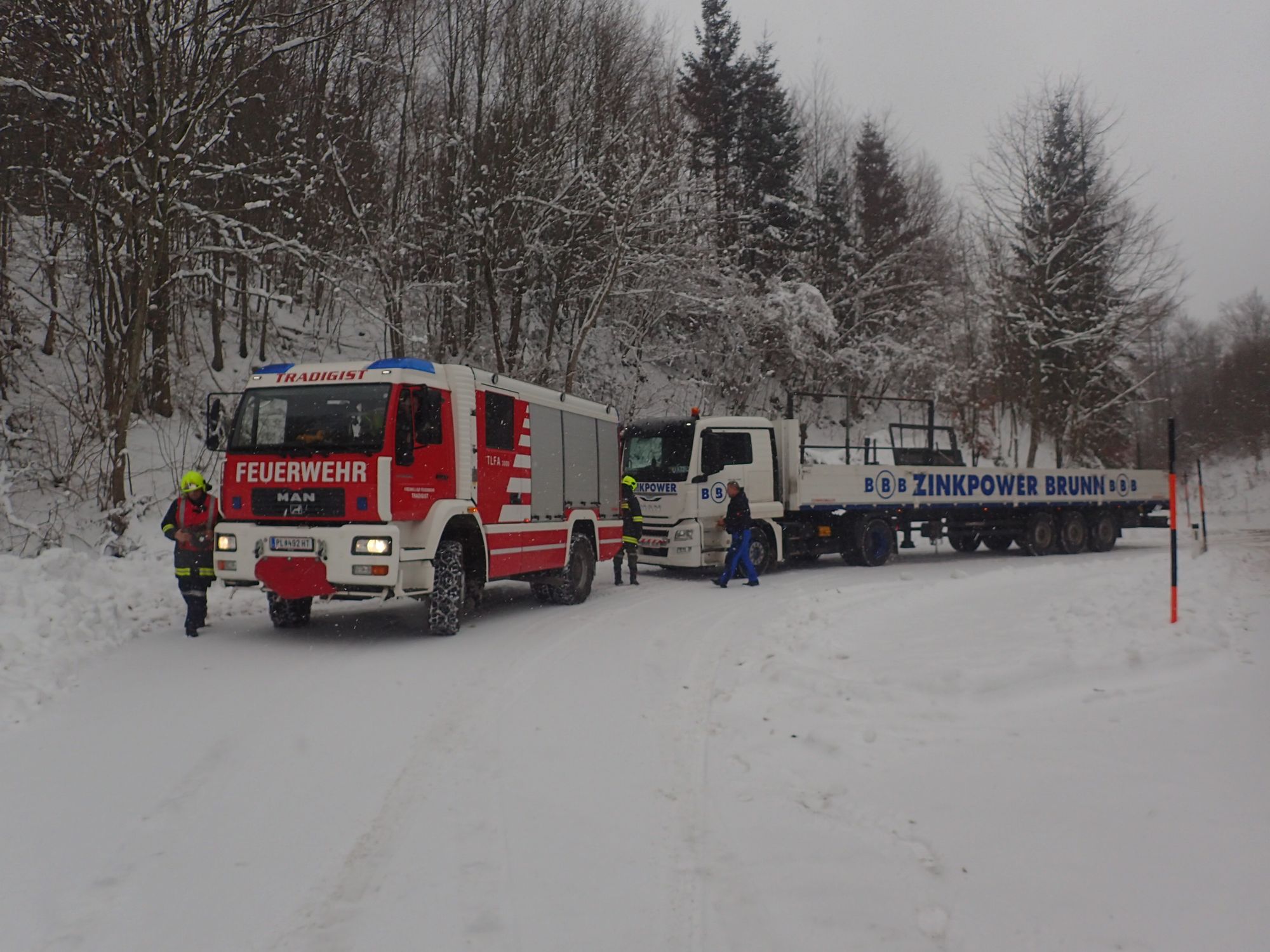 Heute um 11:07 Uhr wurden wir von Florian St. Pölten zu einer LKW Bergung (T1) auf die L5217 "Morigrabenstraße" alarmiert.