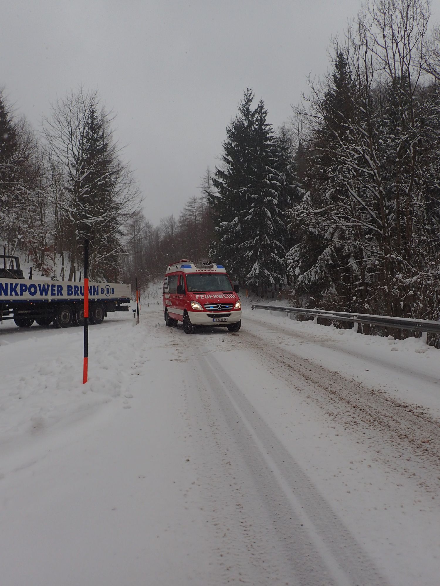 Mit unserem Tanklöschfahrzeug wurde das Schwerfahrzeug bis zum Morigraben-Sattel geschleppt.