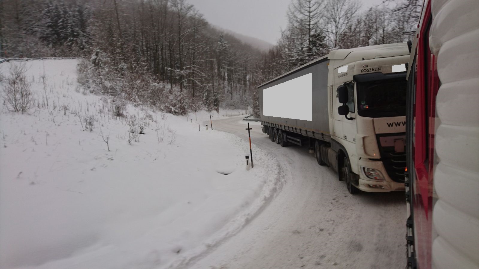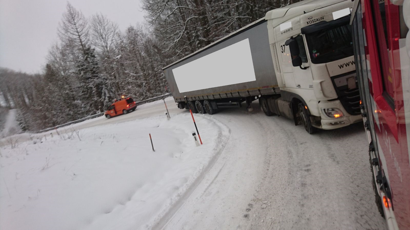Ein Sattelzug war auf der Schneefahrbahn hängen geblieben.