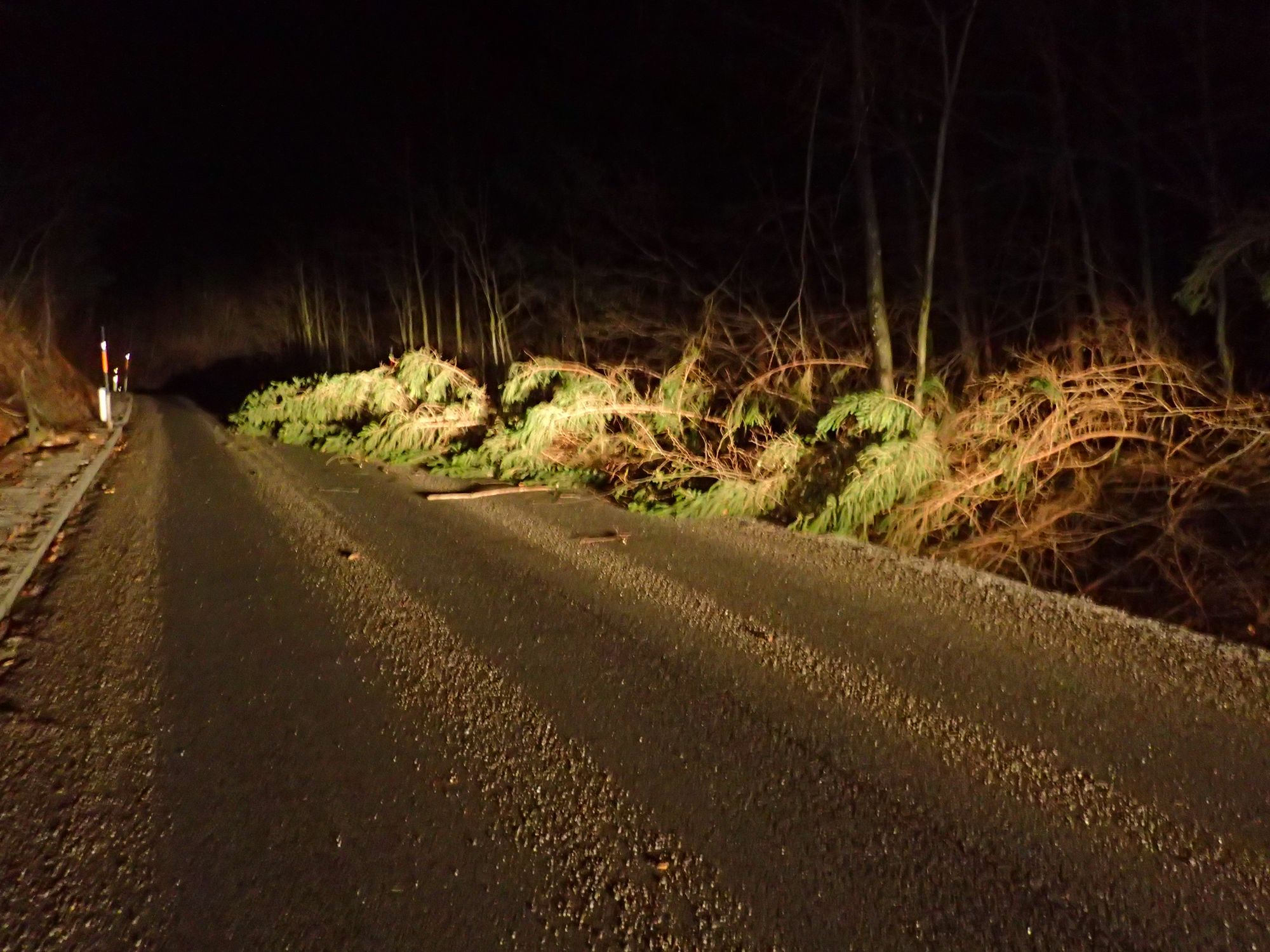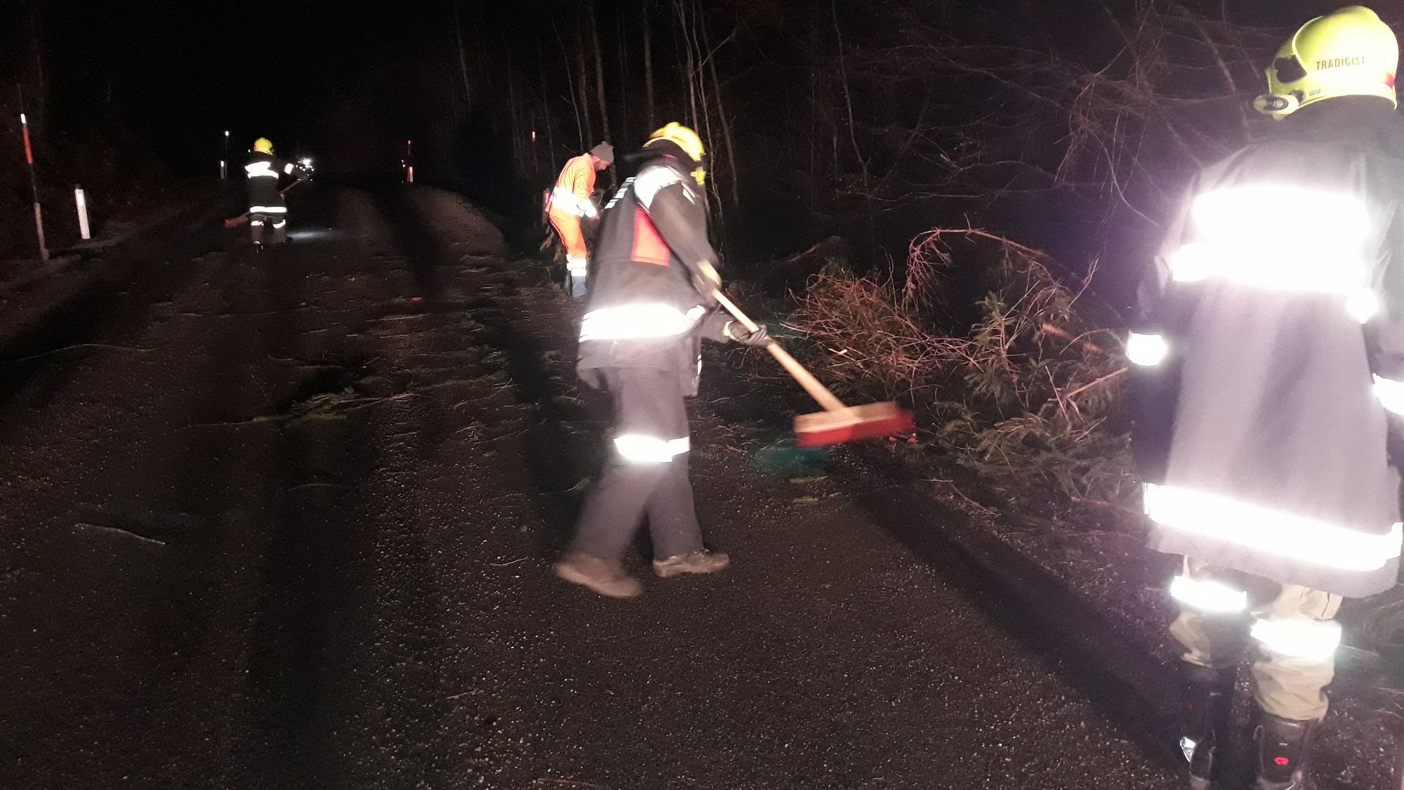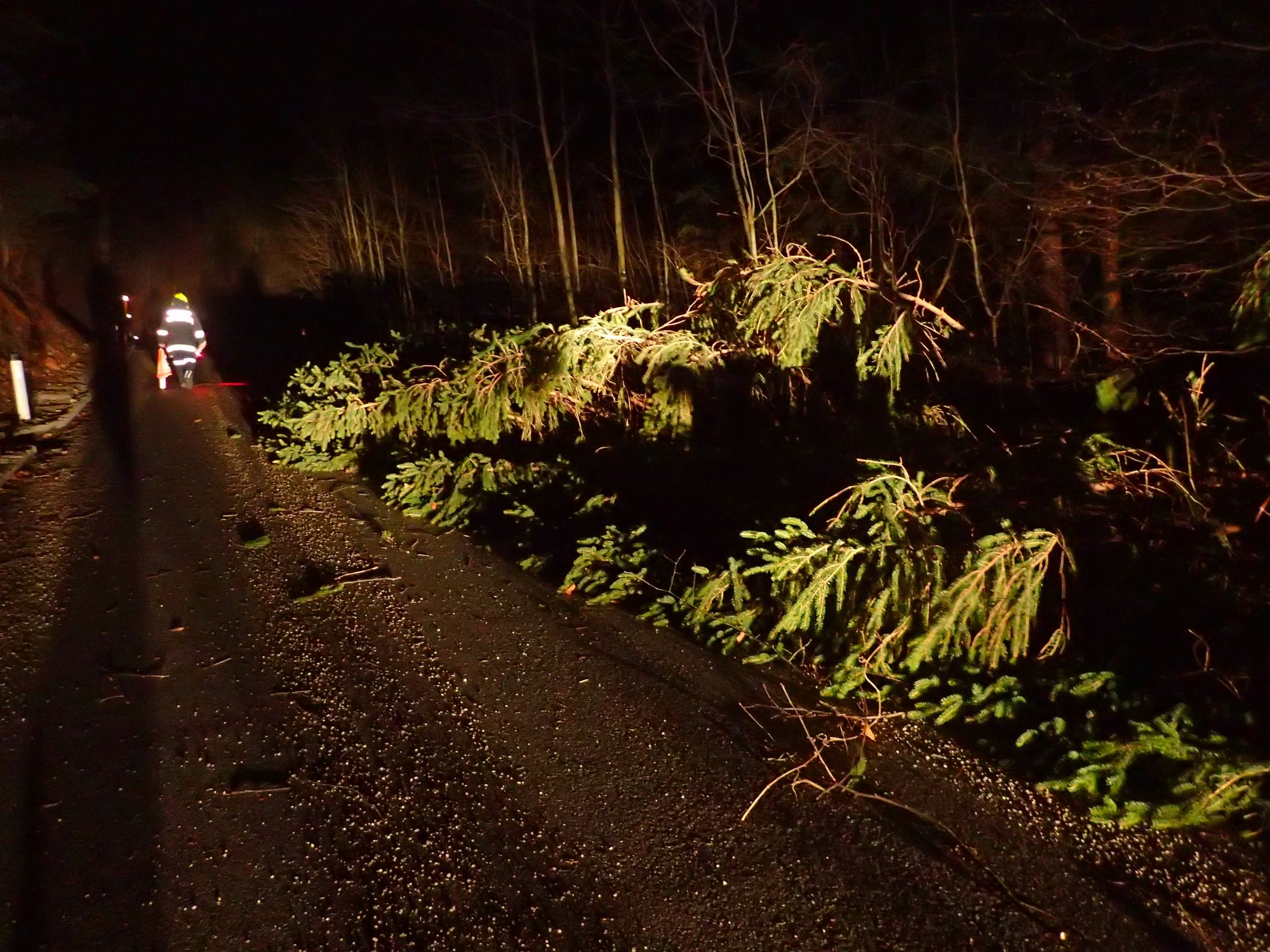 Als die Äste und der Baumstamm von der Fahrbahn entfernt waren, wurde noch die Fahrbahn gereinigt.