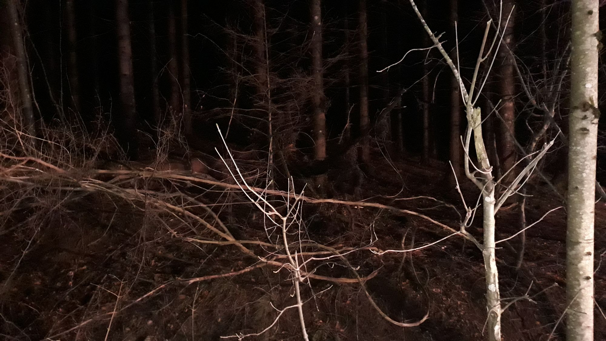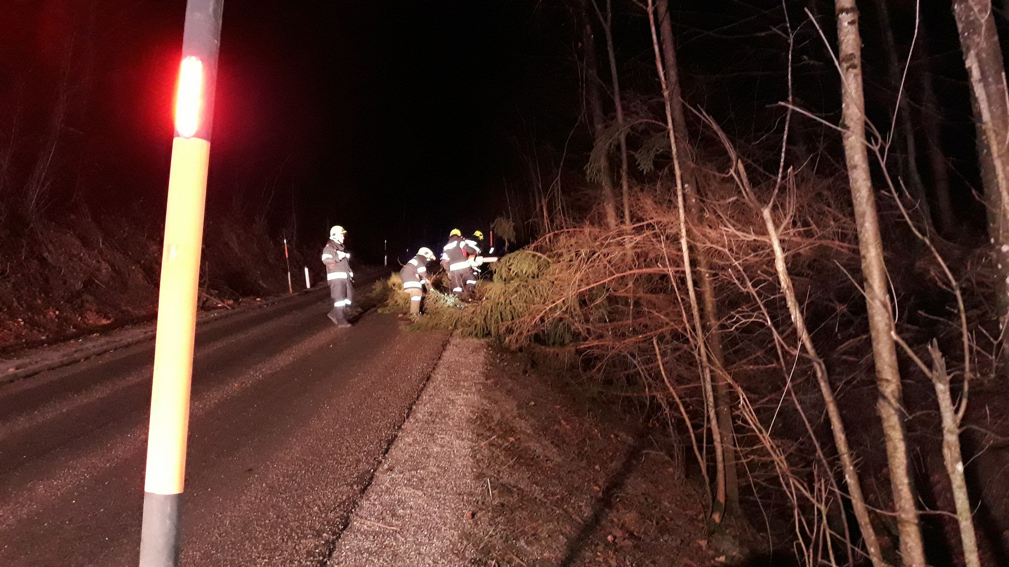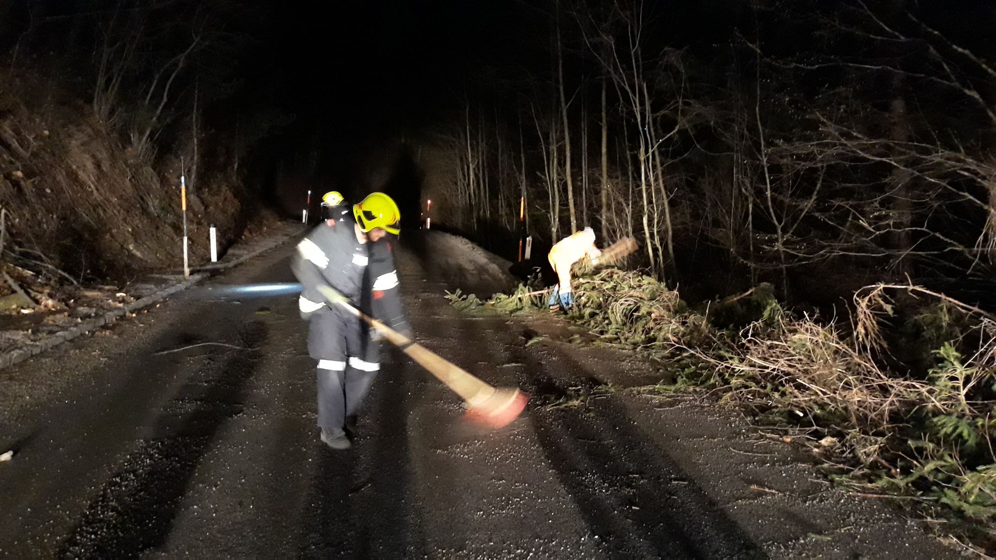 Als die Äste und der Baumstamm von der Fahrbahn entfernt waren, wurde noch die Fahrbahn gereinigt.