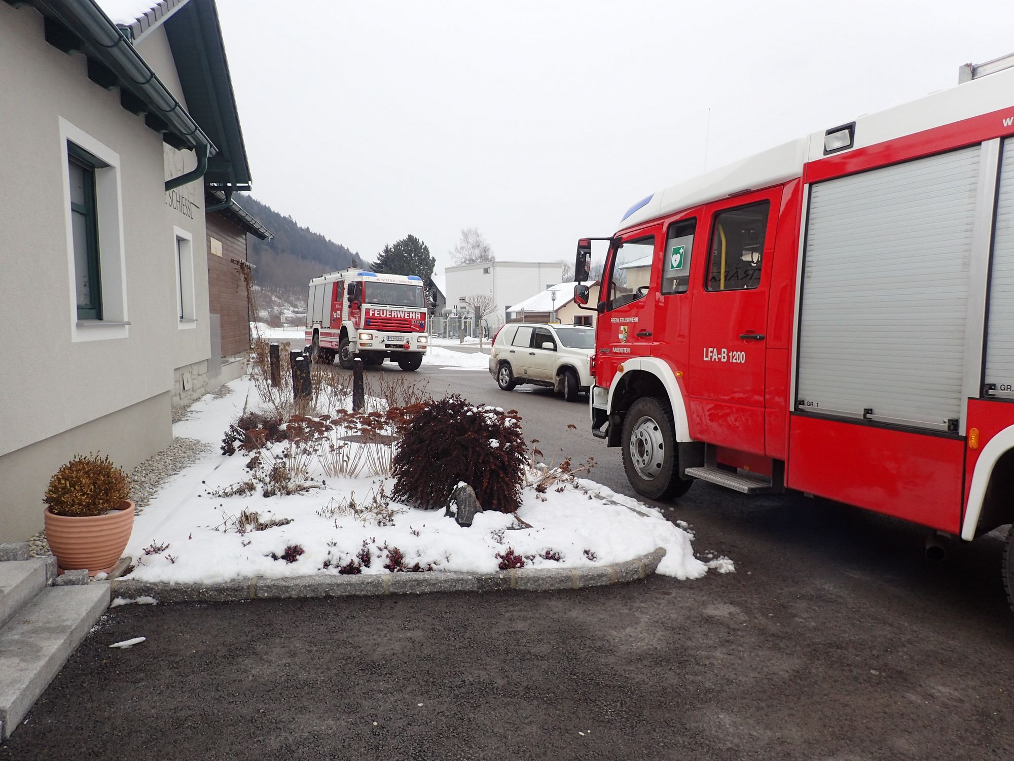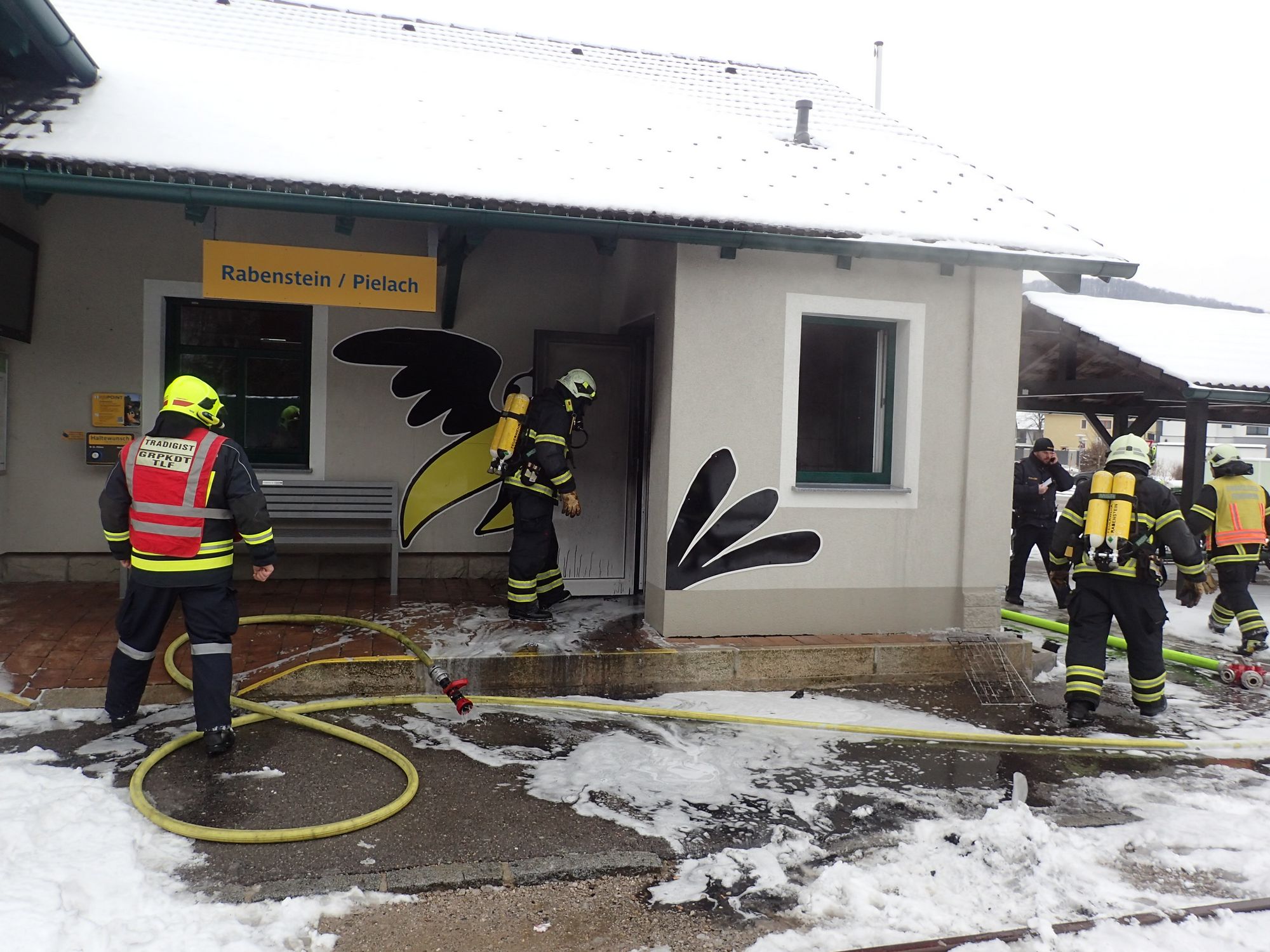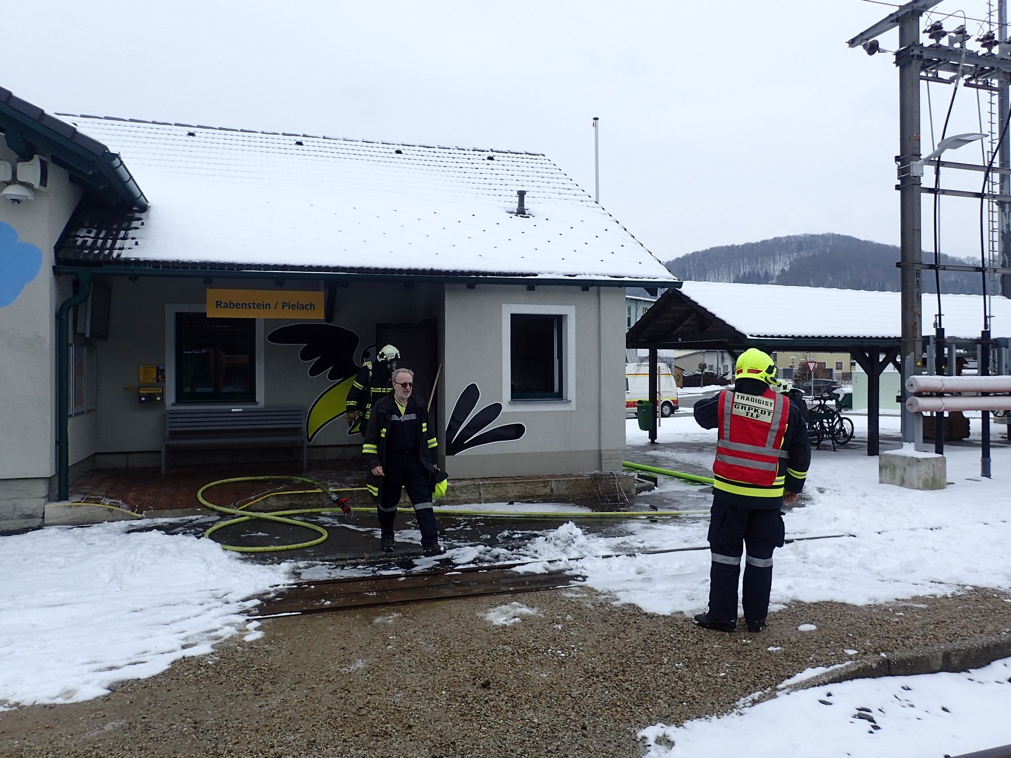 Wir wurden um 13:41 Uhr von der Bezirksalarmzentrale gemeinsam mit den Feuerwehren Rabenstein, Hofstetten-Grünau und Weinburg zu einem Zimmerbrand nach Rabenstein beim Bahnhofsgebäude alarmiert.