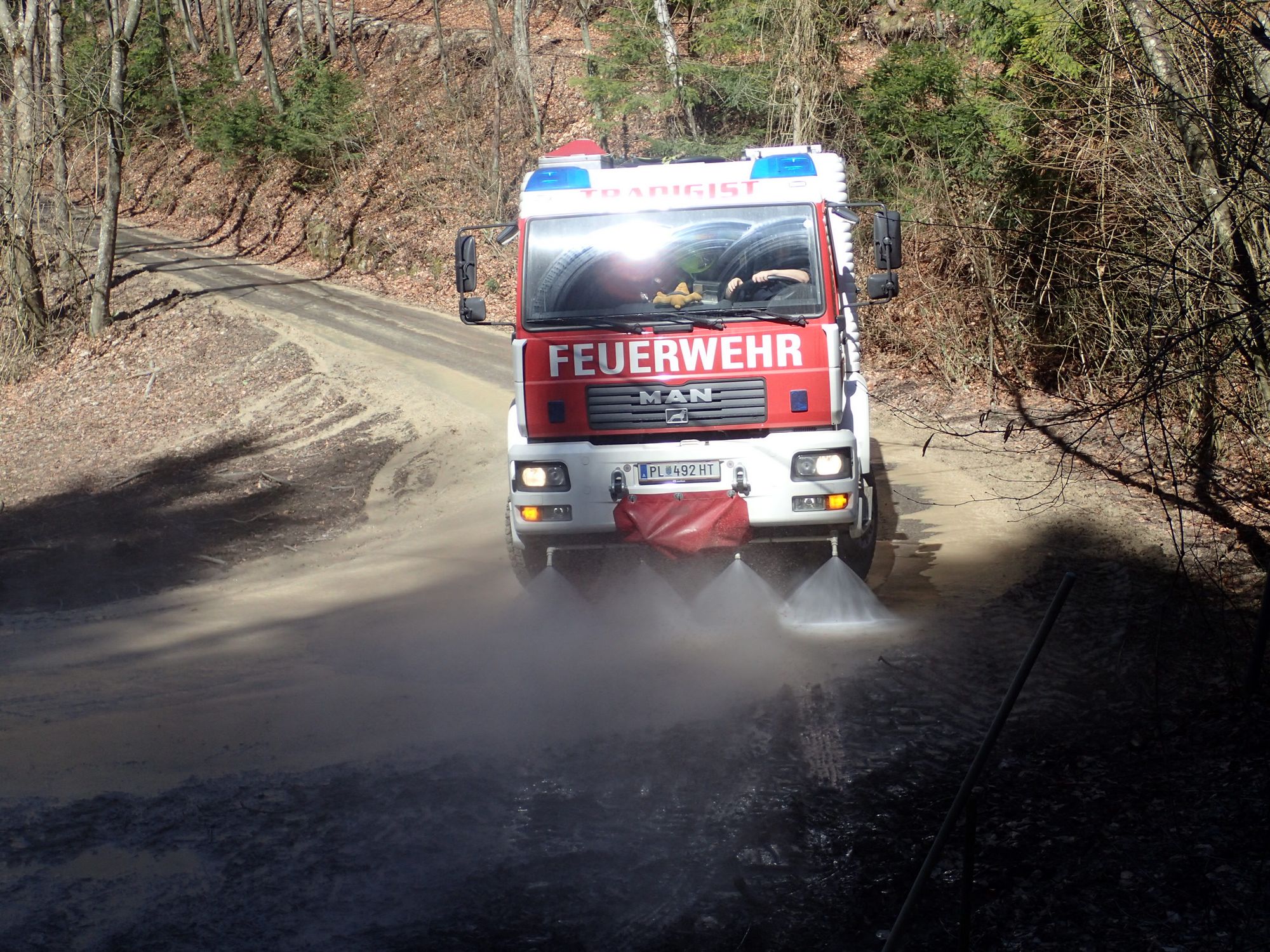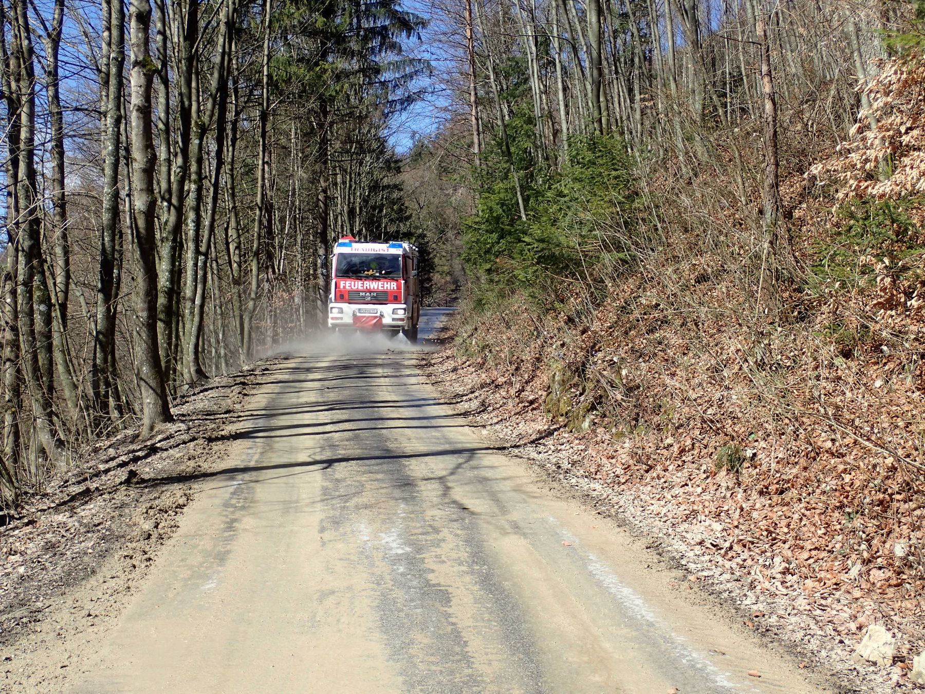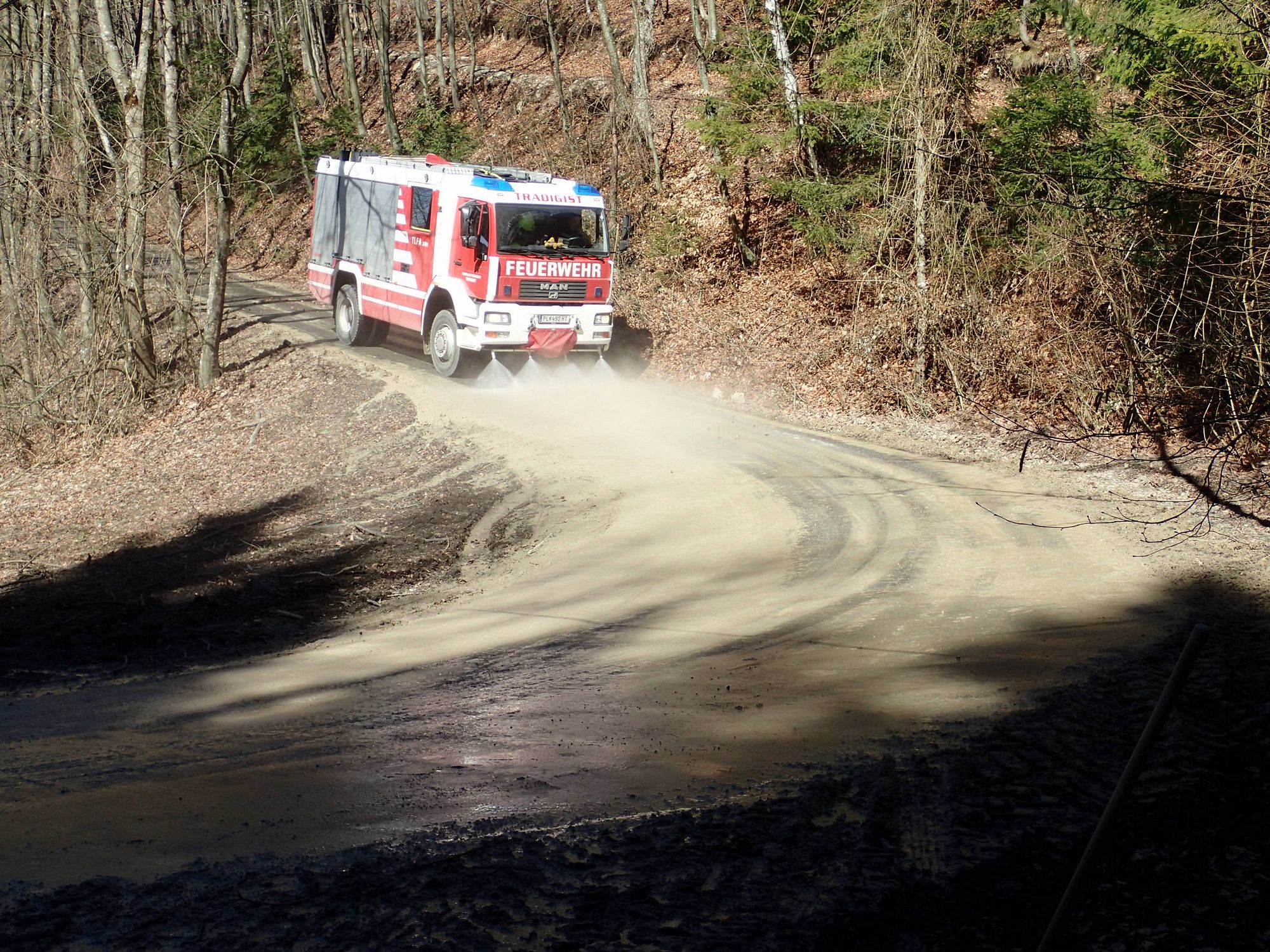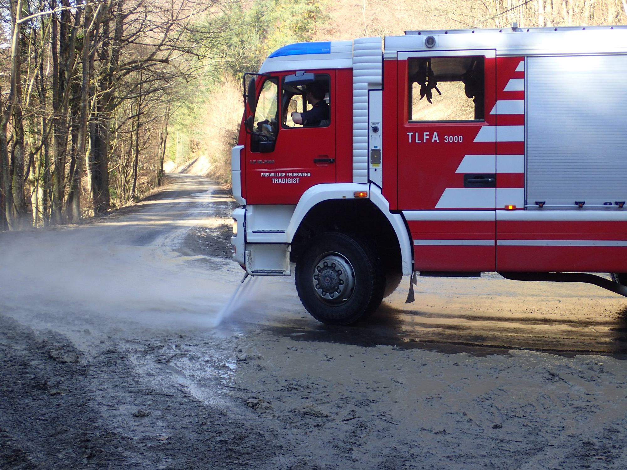 Unter Absprache mit der Feuerwehr Rabenstein wurde die verschmutzte Straße mit unserem Tanklöschfahrzeug und der Straßenwaschanlage wieder gereinigt.