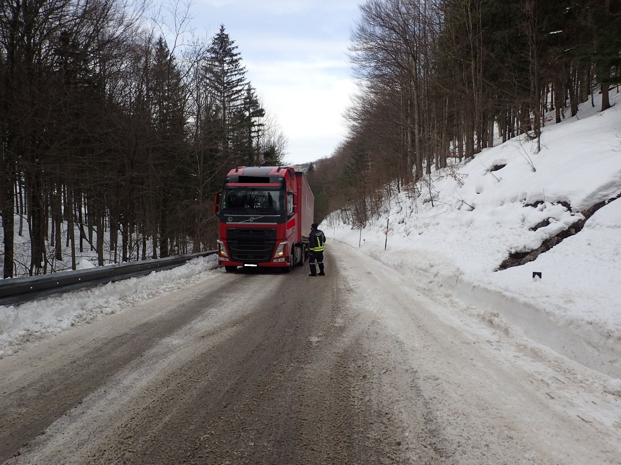 Ein Sattelschlepper war im steilsten Teilstück hängen geblieben.