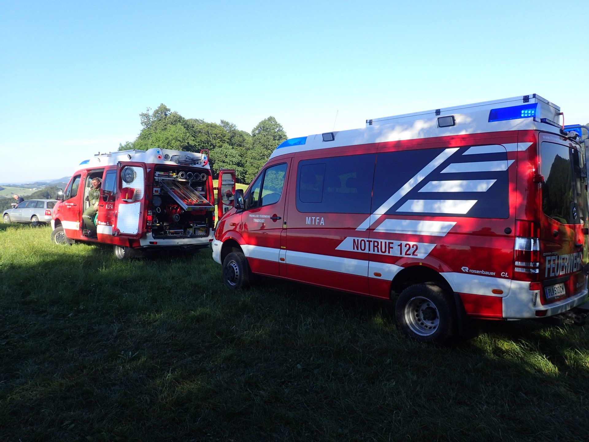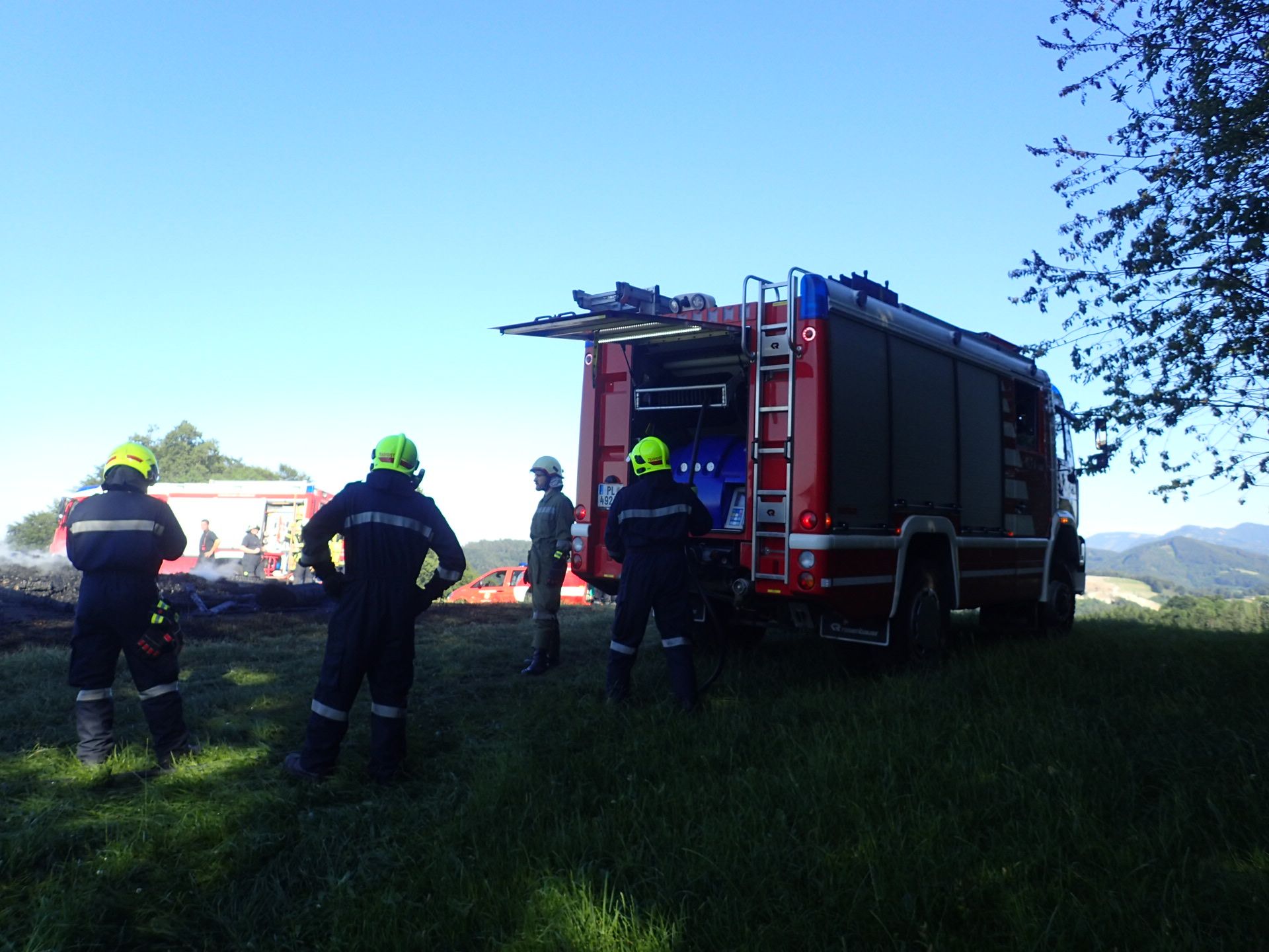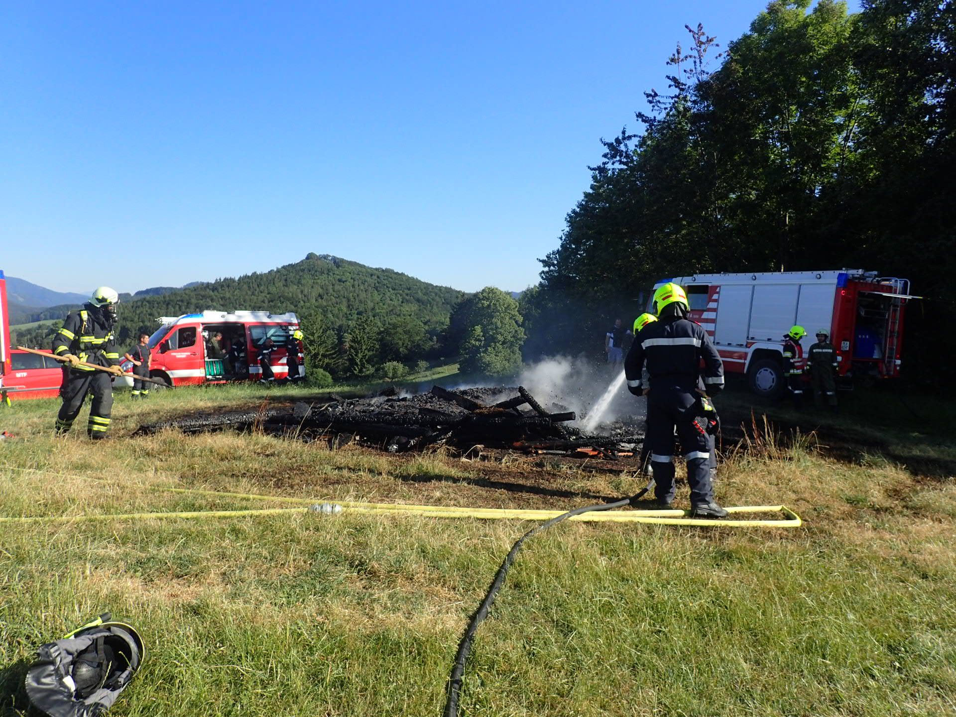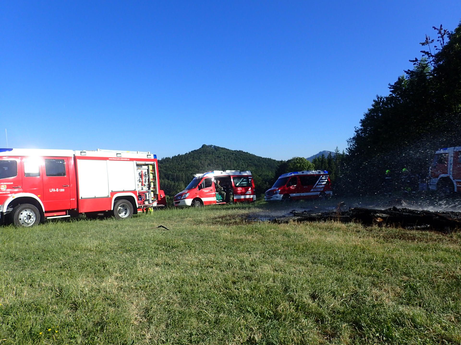 Die Feuerwehr Rabenstein hatte bereits mit den Löscharbeiten begonnen und ein benachbarter Landwirt kam mit seinem Traktor und Güllefass mit Wasser auch zu Hilfe.