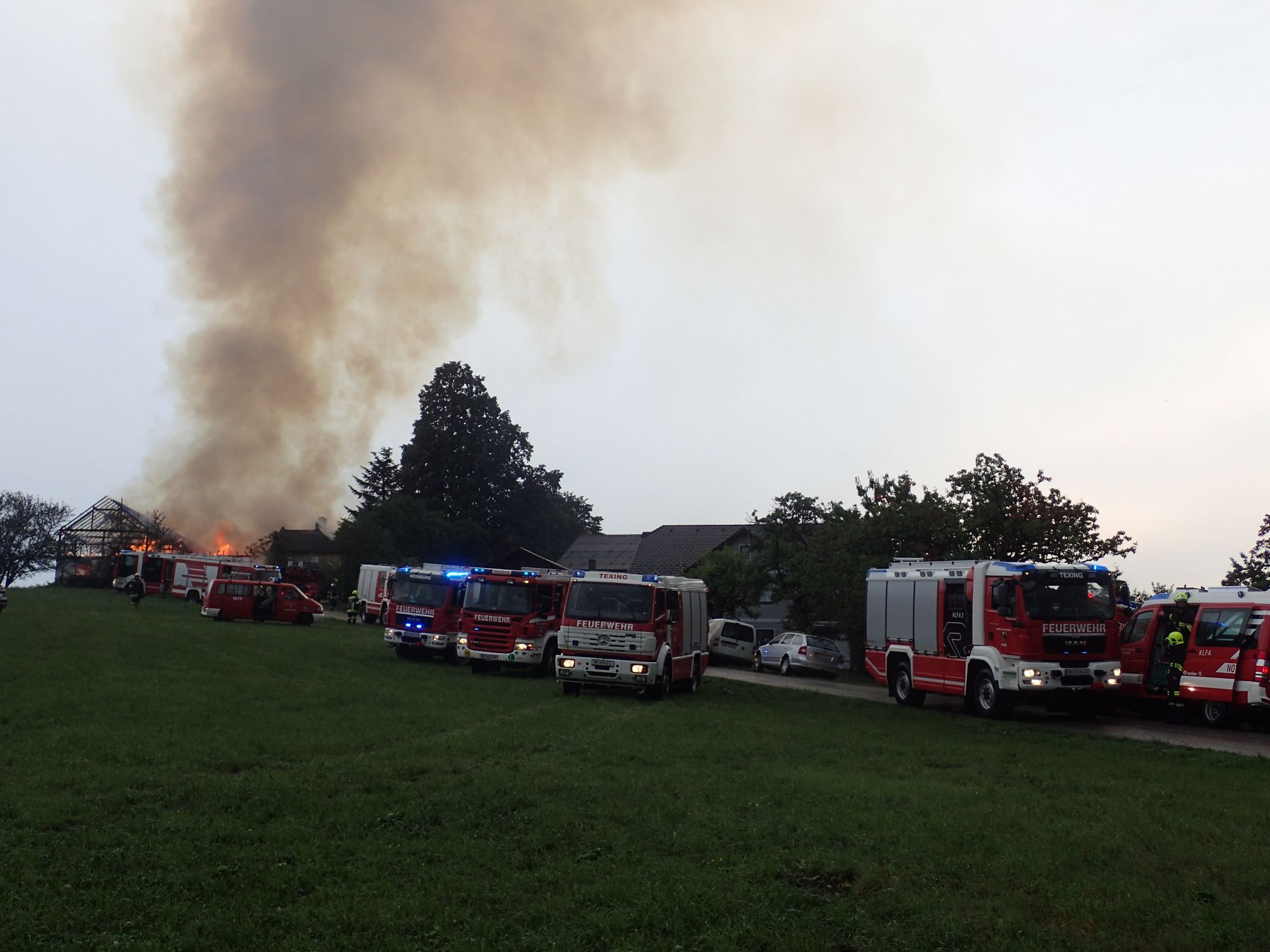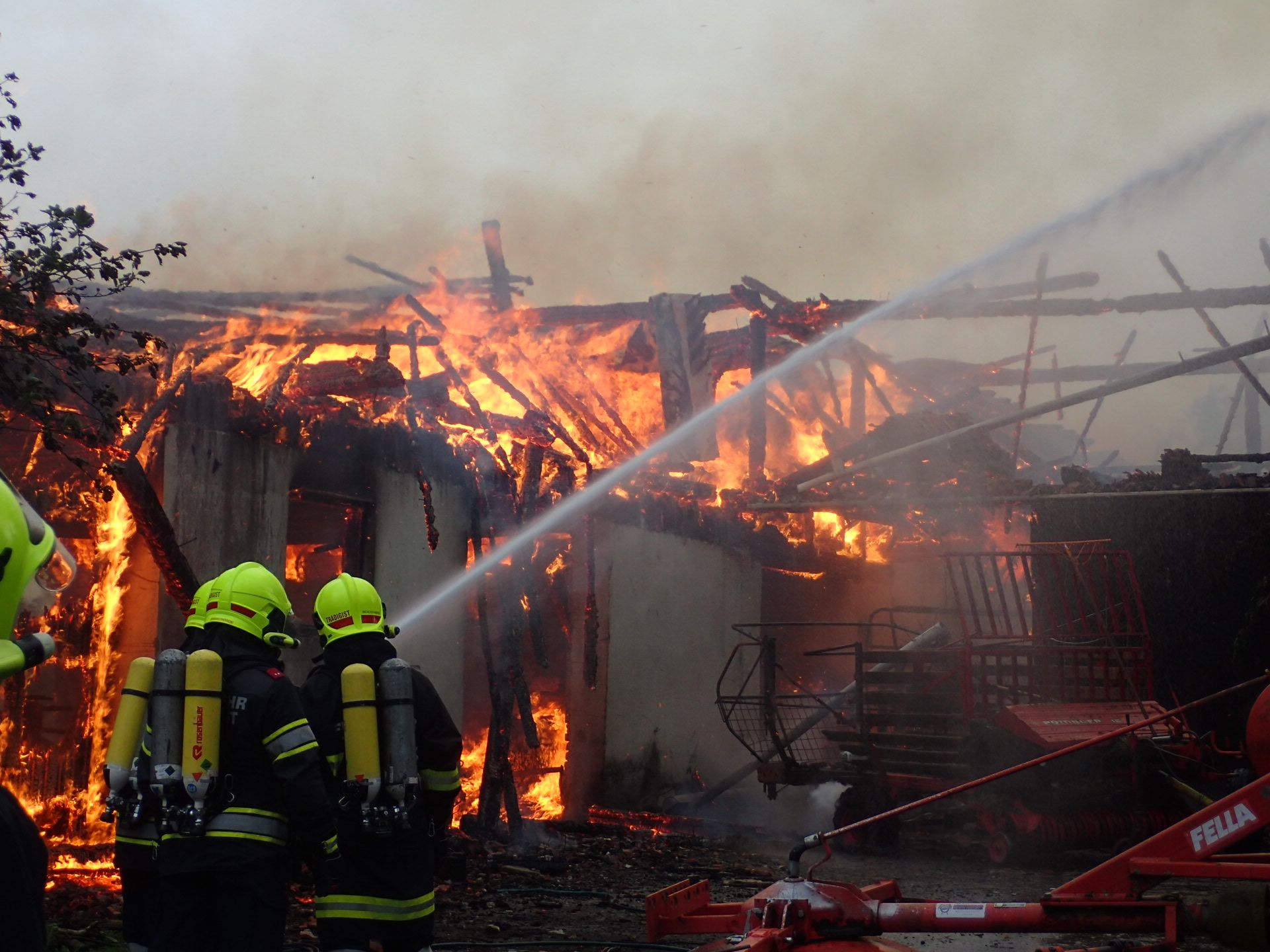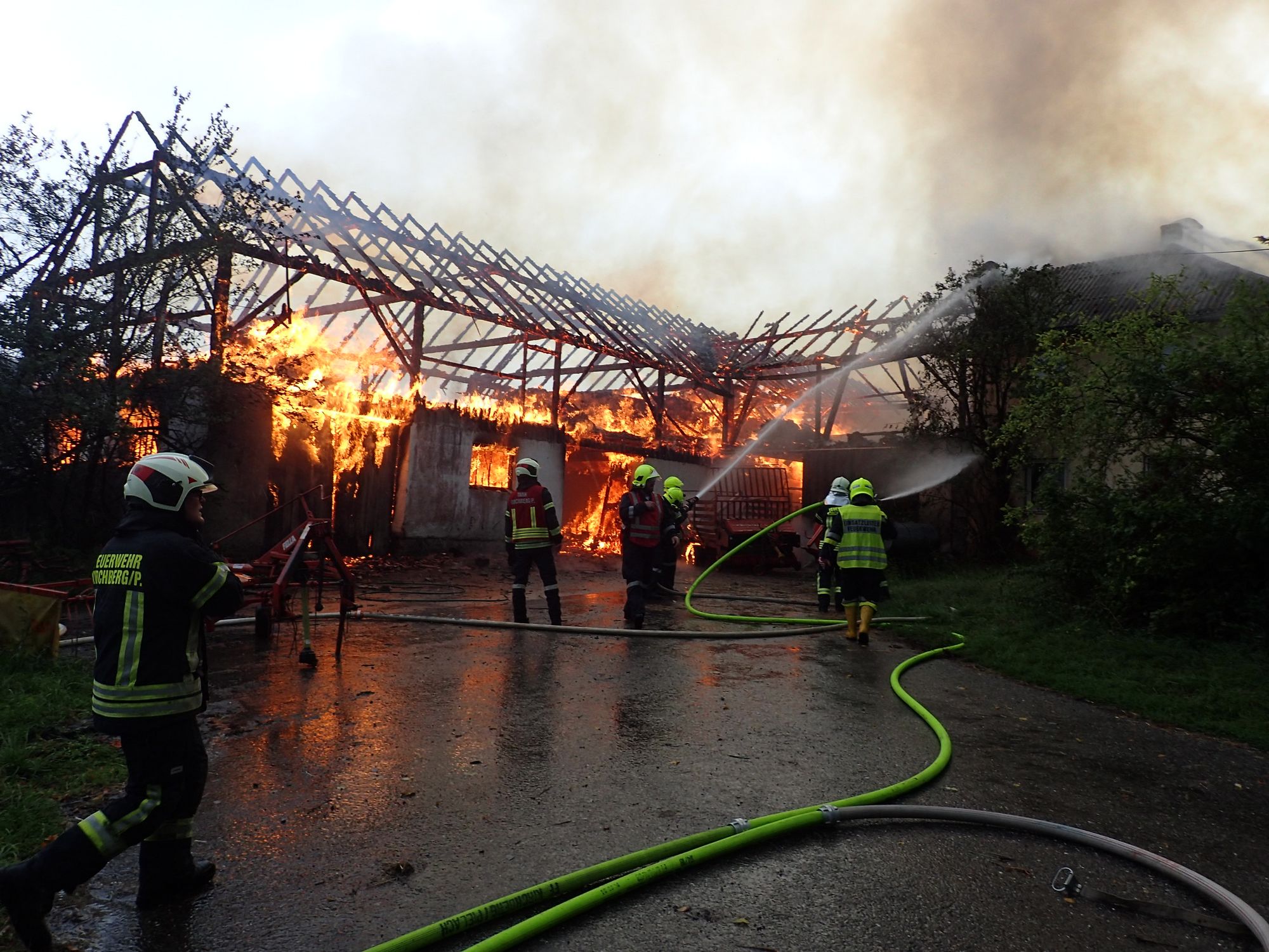 Als wir das Brandobjekt erreichten, stand das Wirtschaftsgebäude des Vierkanters bereits in Vollbrand. Der Einsatz wurde dann erhöht auf einen (B4) "Brand eines landw. Objekts".