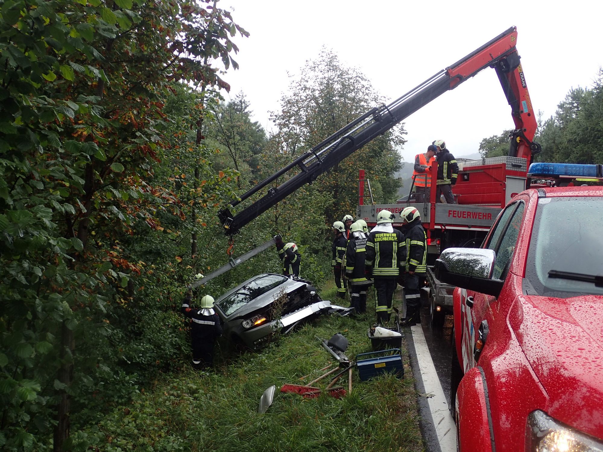 Heute um 15.08 Uhr wurden wir zur einer Menschenrettung (T2) (1 eingeklemmte Person) nach Kirchberg auf die B39 Ortsteil Schwerbach alarmiert.