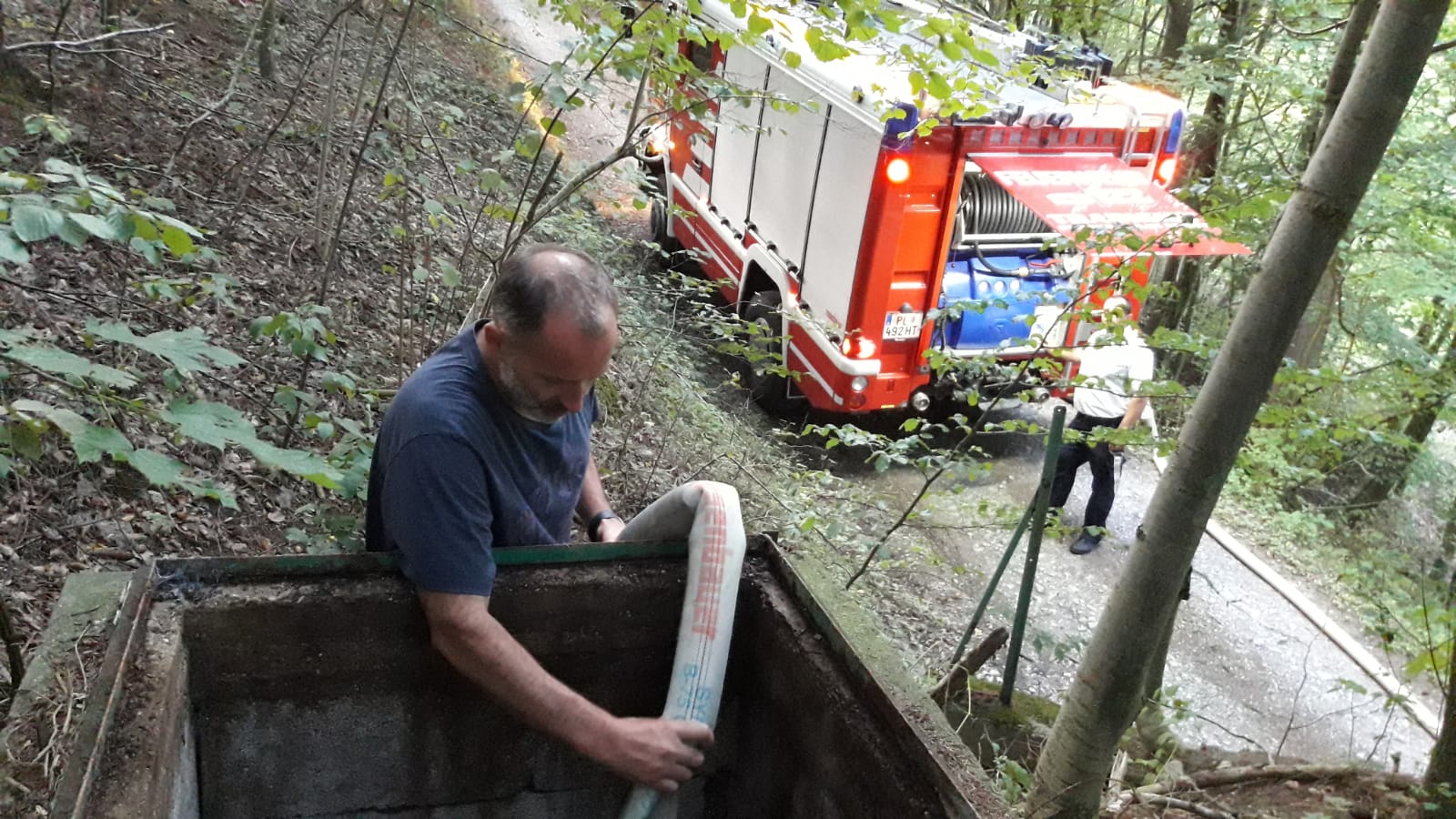 Aufgrund der anhaltenden Trockenheit wurde mit unserem TLFA 3000 ein Nutzwassertransport zu einem Einfamilienhaus durchgeführt.