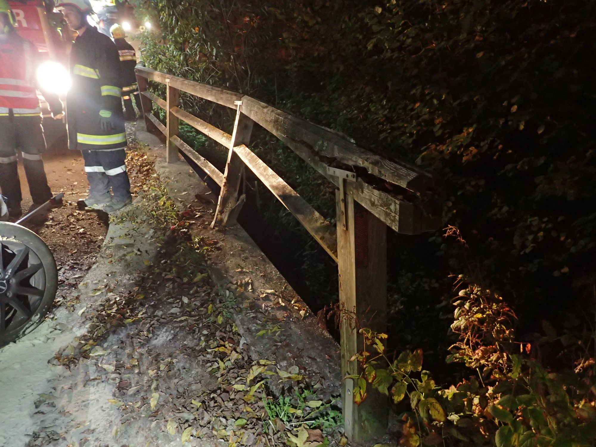 Ein PKW-Lenker kam aus unbekannter Ursache mit seinem PKW in einer leichten Kurve zu weit nach rechts und krachte gegen ein Brückengeländer. Dabei wurde das Vorderrad ausgerissen und der Wagen war somit unfahrbar.