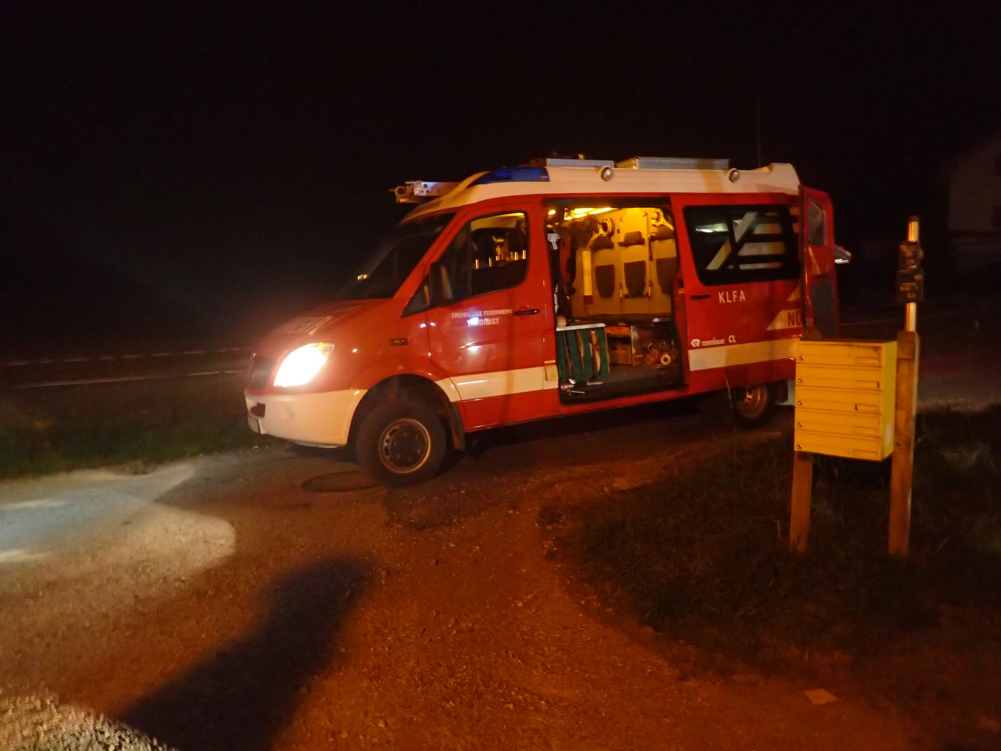 Heute um 20:17 Uhr wurden wir von der Bezirksalarmzentrale zu einer Fahrzeugbergung (T1) auf der Gemeindestraße richtung Steinklamm 65 alarmiert.