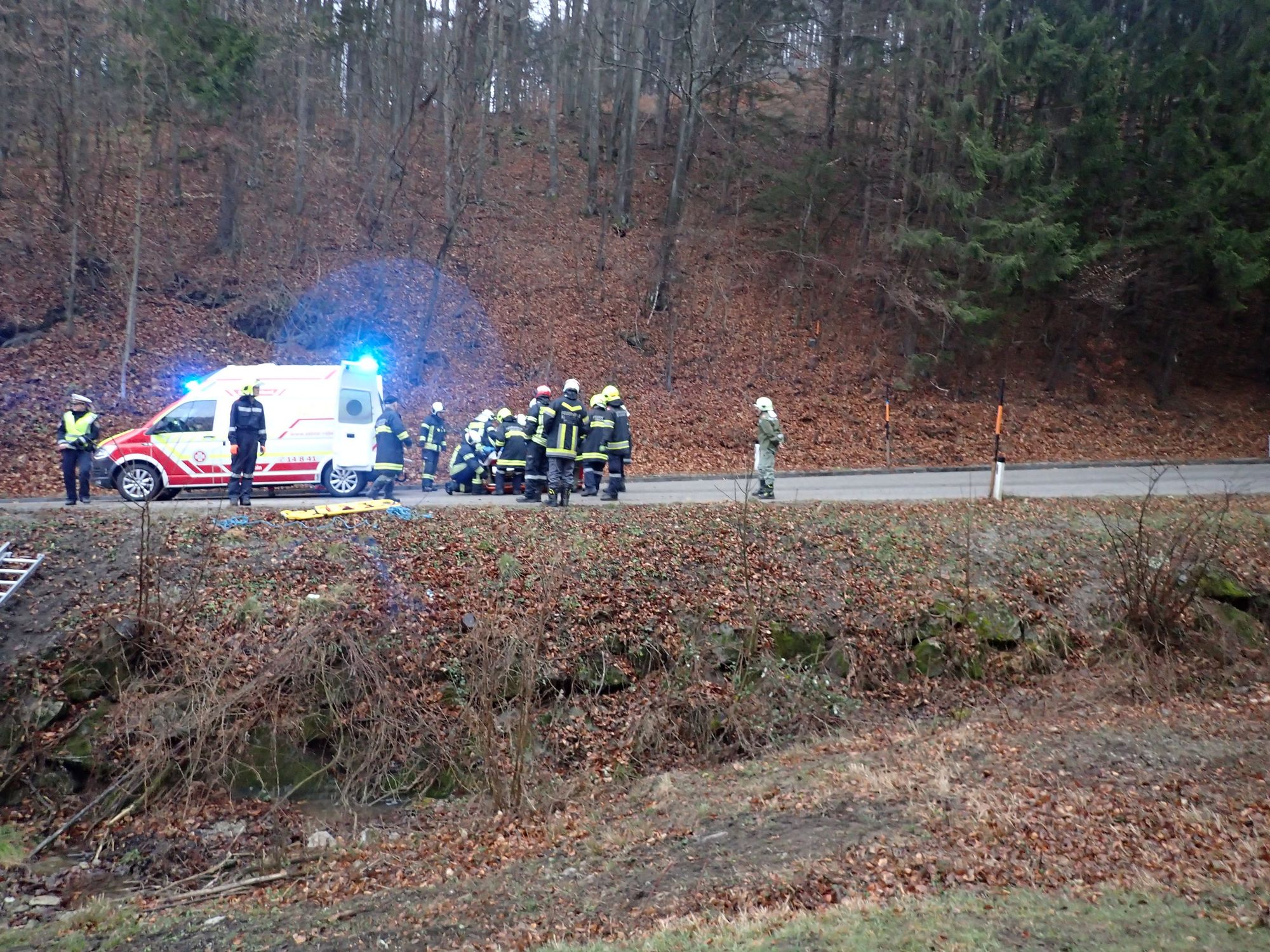 Durch die gute Zusammenarbeit aller Einsatzorganisationen wurde eine möglichst schonende Rettung der Verletzten durchgeführt. Mittels Korbtrage und angelegter Leitern über den Bach, konnten die Verletzten über die Bachböschung zu den Rettungsfahrzeugen gebracht werden.