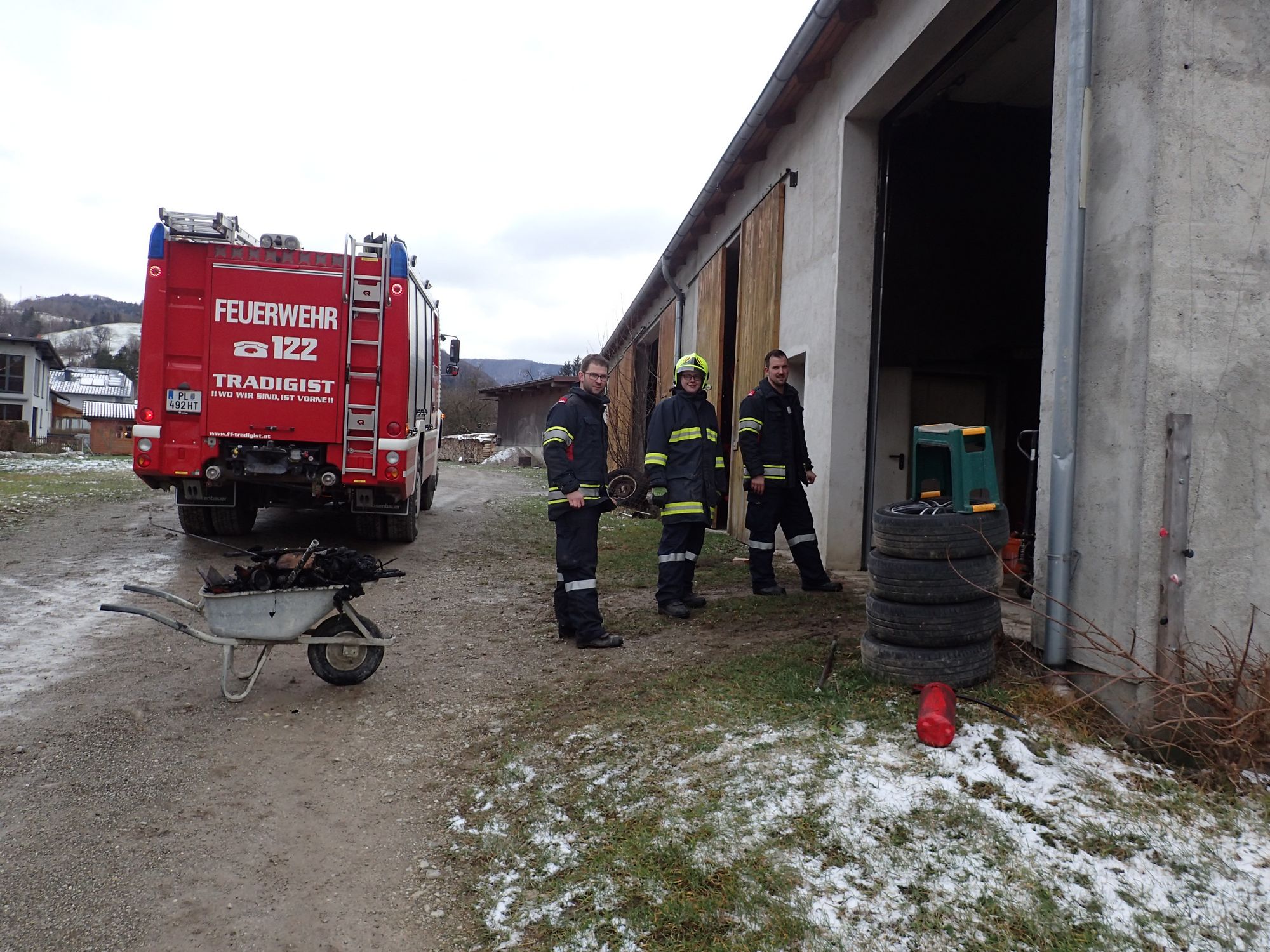 Der Besitzer (selbst Mitglied der Feuerwehr Tradigist) wurde durch einen aufmerksamen Passanten auf Rauchentwicklung im Bereich der Maschinenhalle hingewiesen.