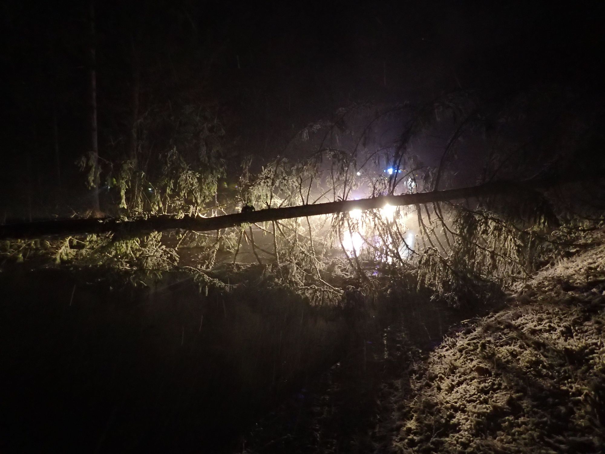 Beim Eintreffen am Einsatzort war die Polizei vorort. Ein Baum lag quer über die Fahrbahn.