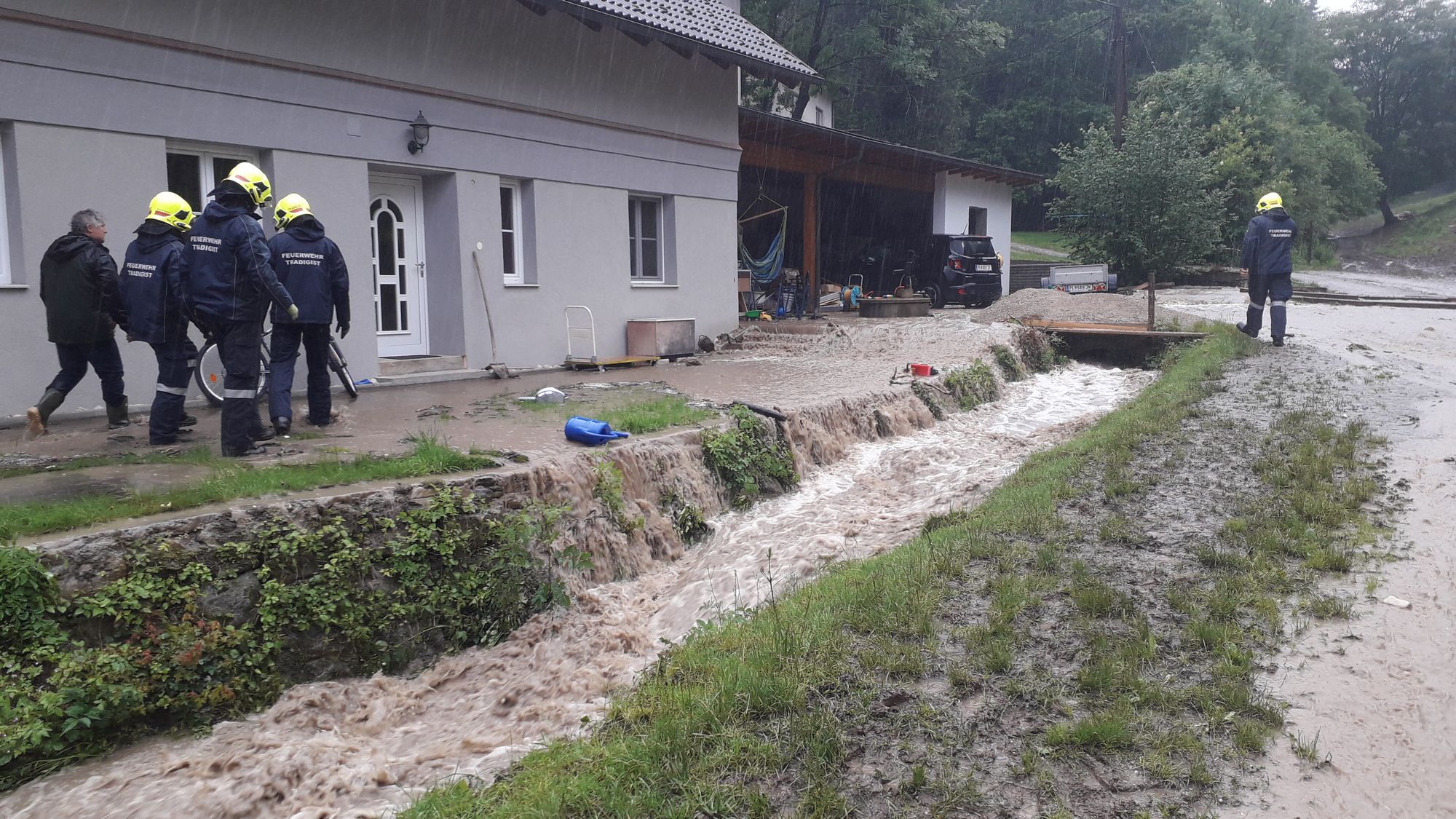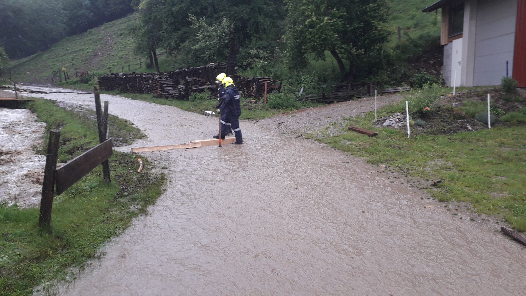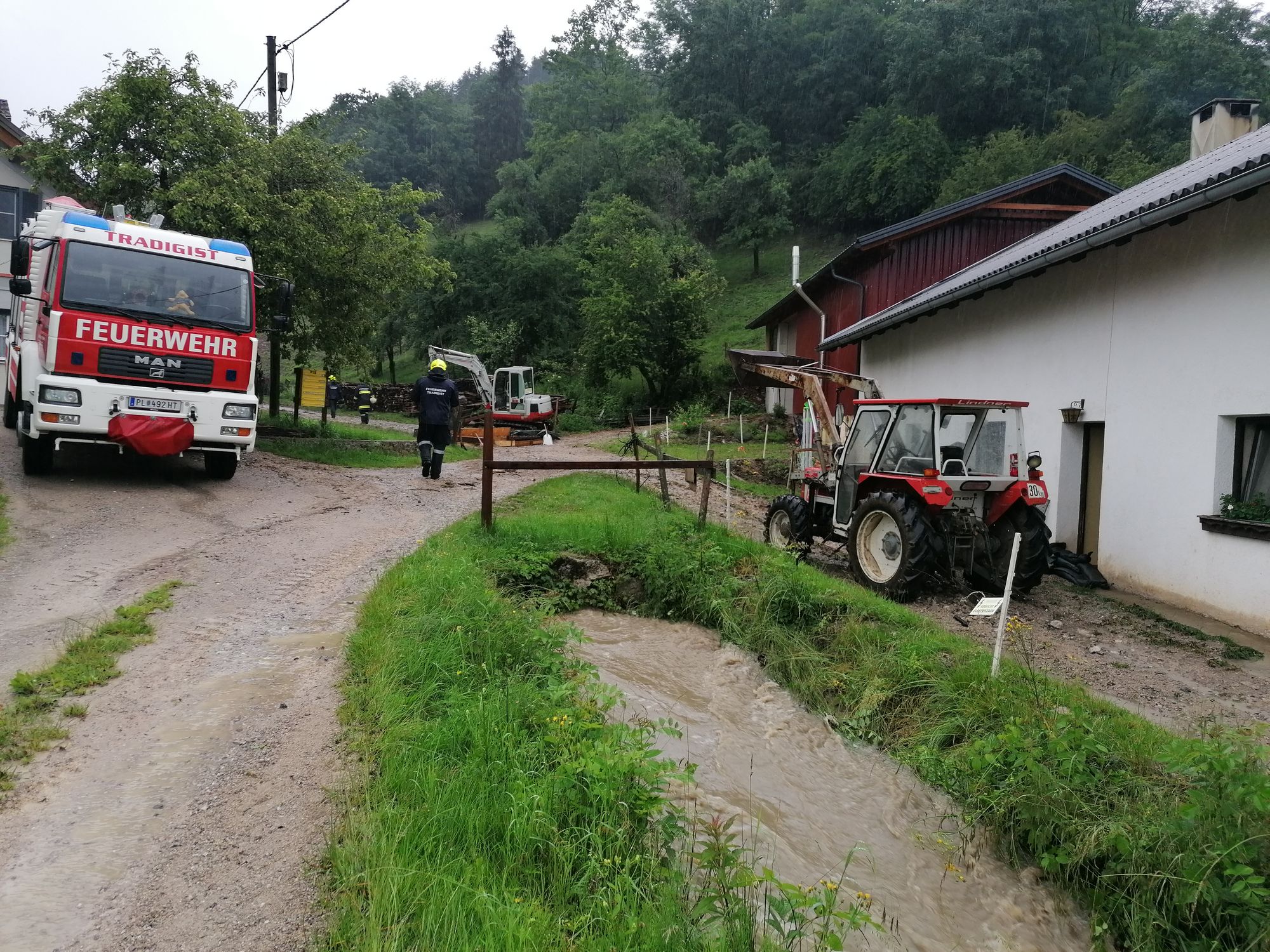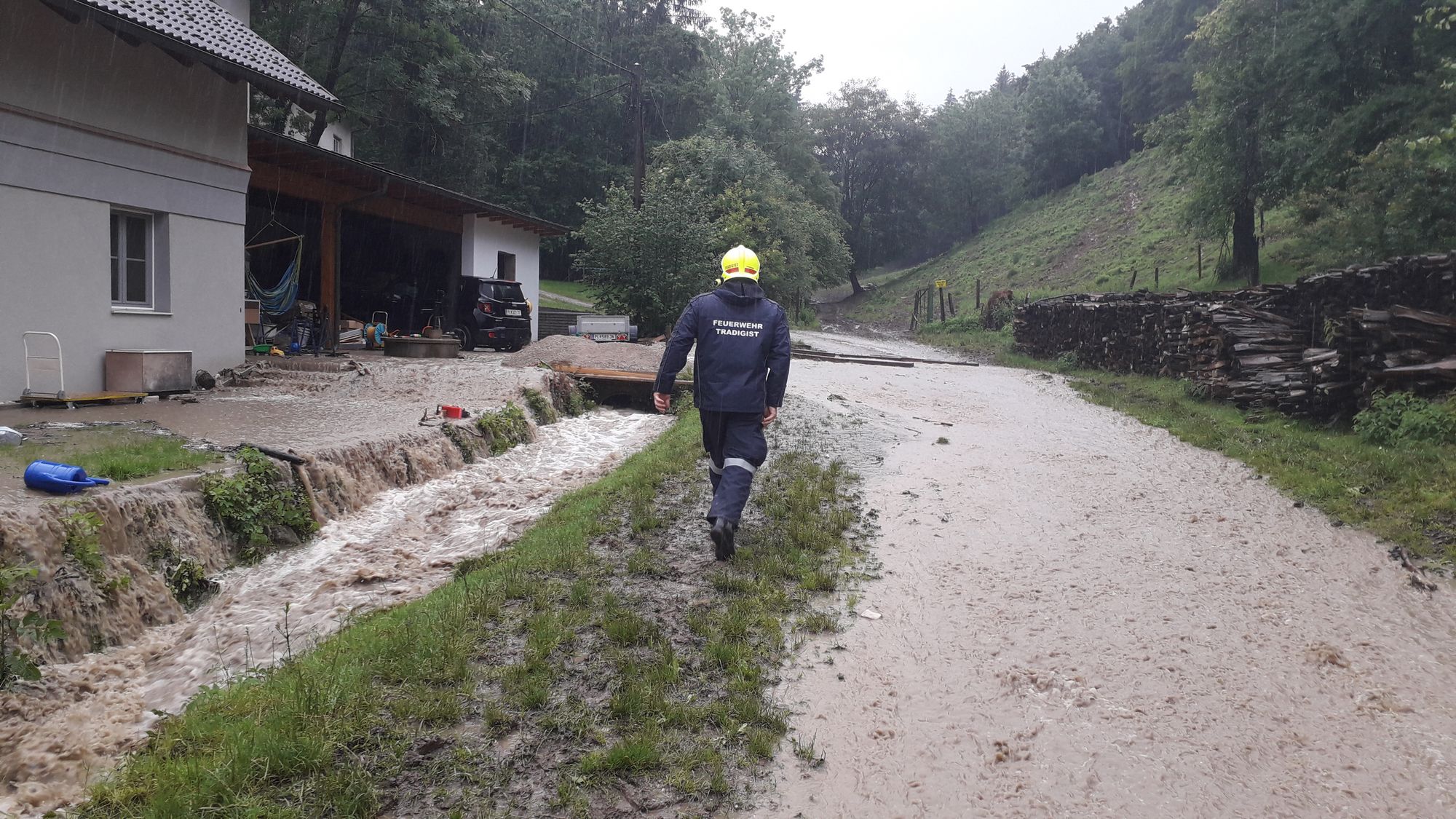 Heute um 15.28 Uhr wurden wir zu einem Hochwasser-Einsatz in Warth gerufen. Auf diesen Einsatz, bei dem ein verstopftes Rohr einen kleinen Bach zum Überlaufen brachte und so Wasser in ein Wohnhaus eintrat - folgten weitere Einsätze in Warth, Steinklamm und Tradigist...
