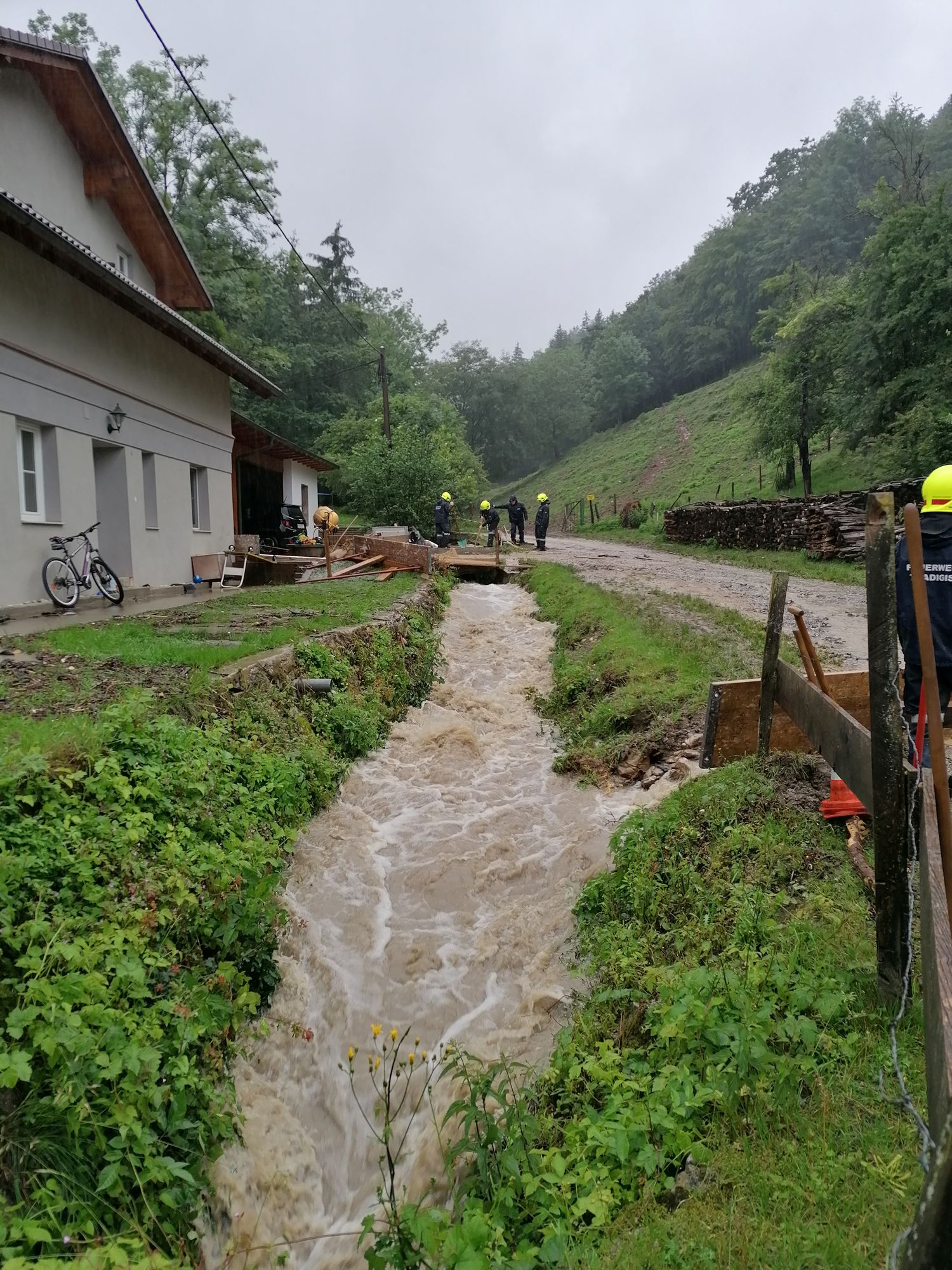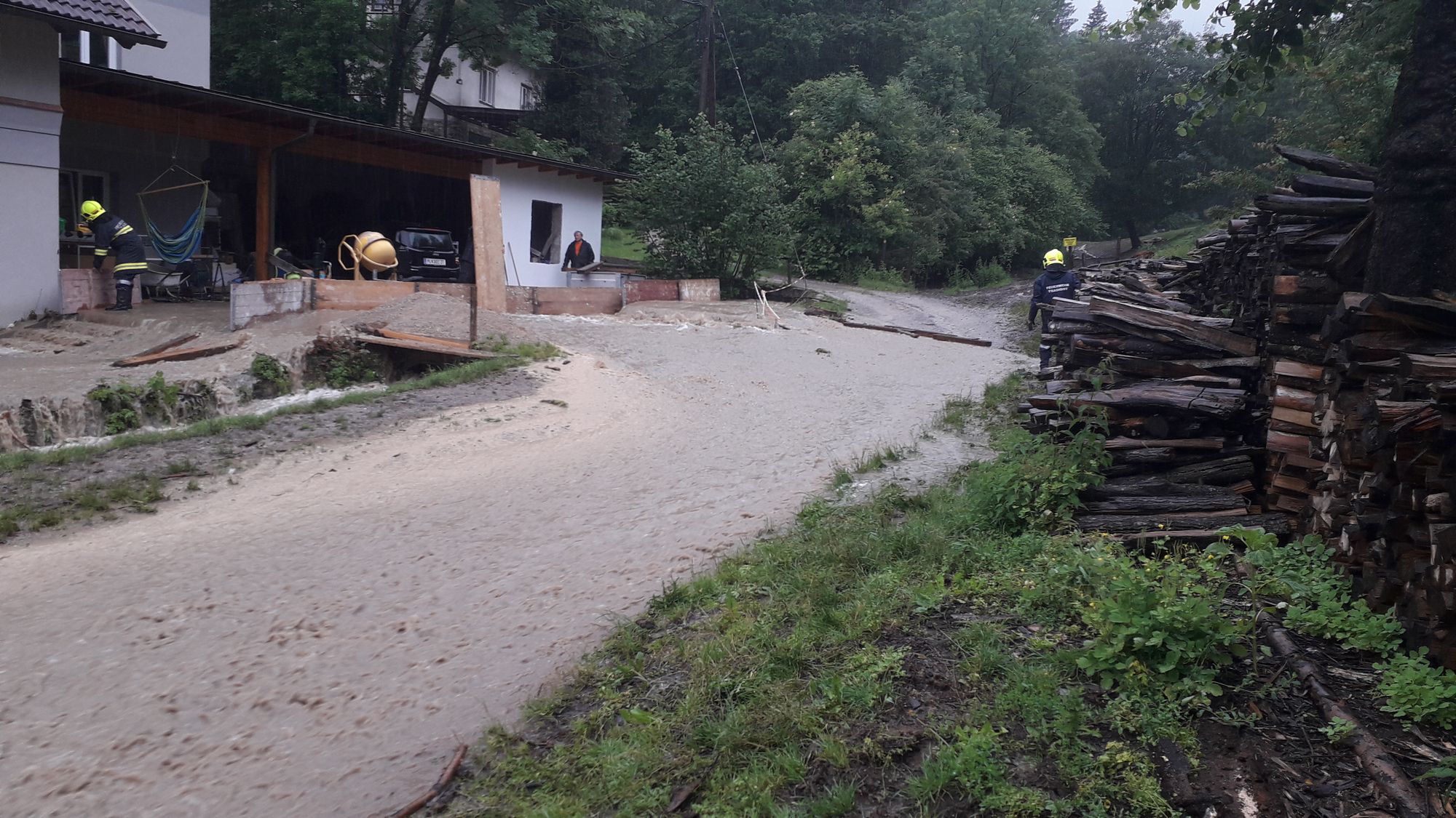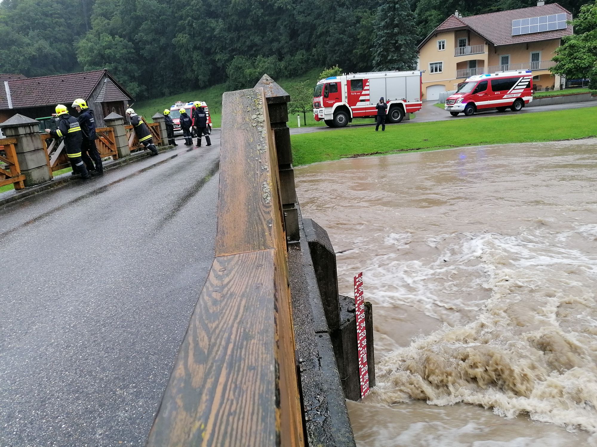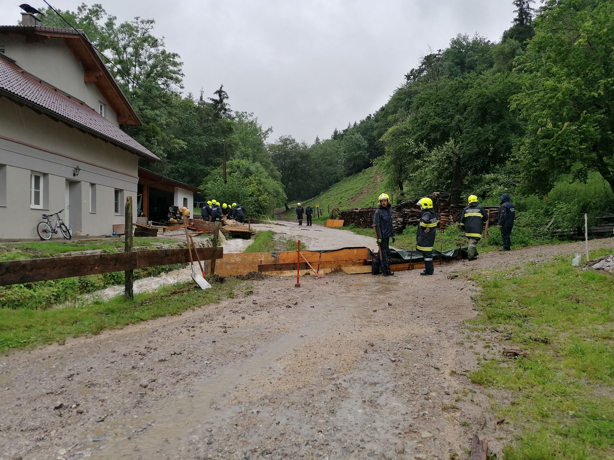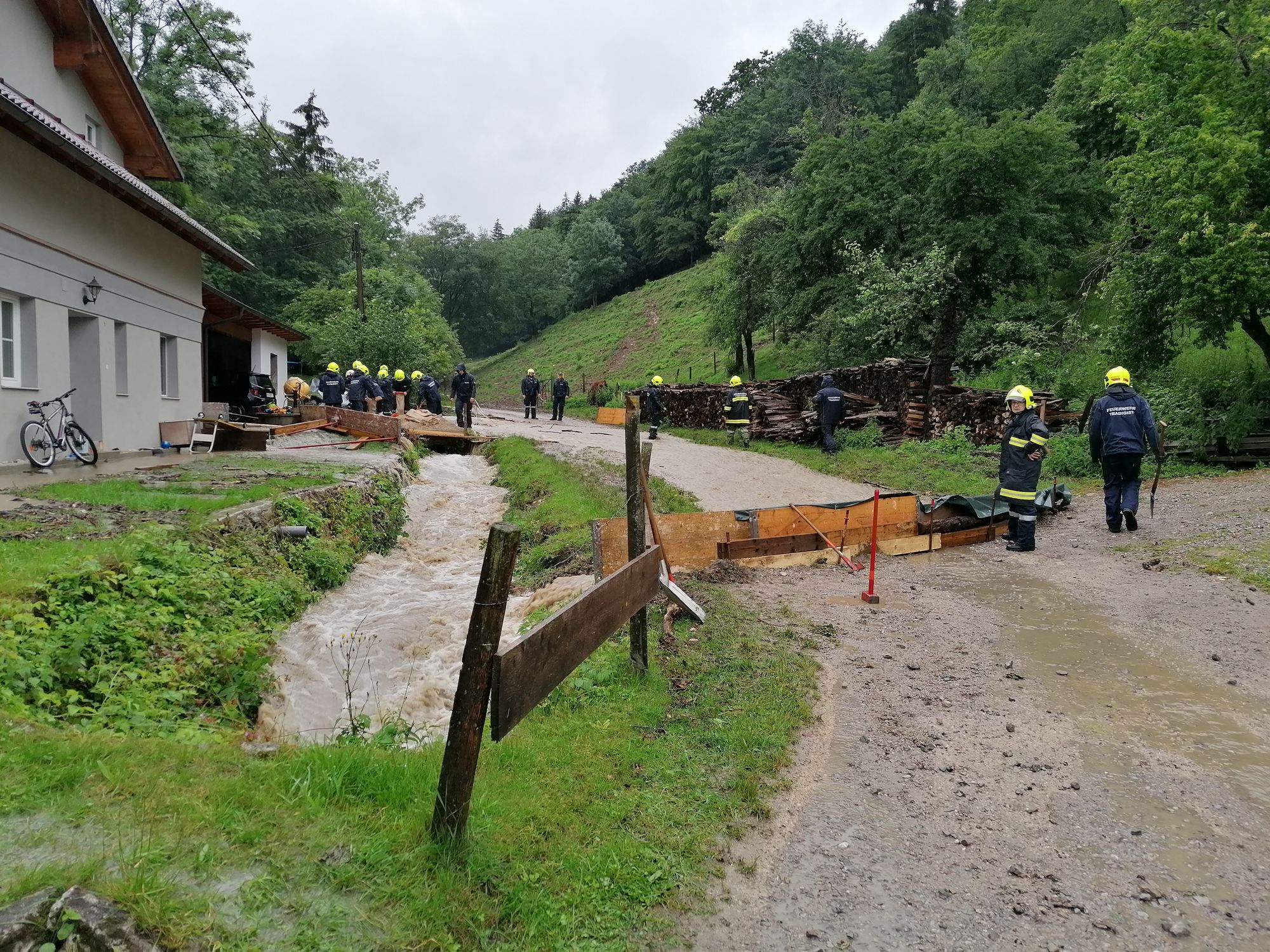 Heute um 15.28 Uhr wurden wir zu einem Hochwasser-Einsatz in Warth gerufen. Auf diesen Einsatz, bei dem ein verstopftes Rohr einen kleinen Bach zum Überlaufen brachte und so Wasser in ein Wohnhaus eintrat - folgten weitere Einsätze in Warth, Steinklamm und Tradigist...
