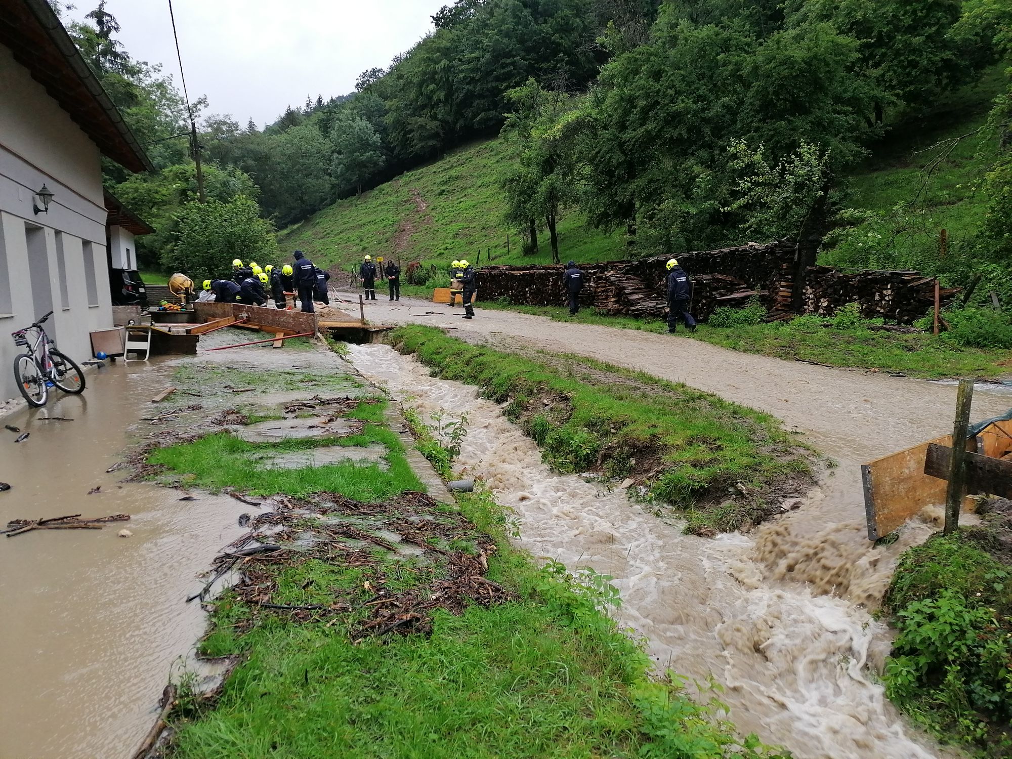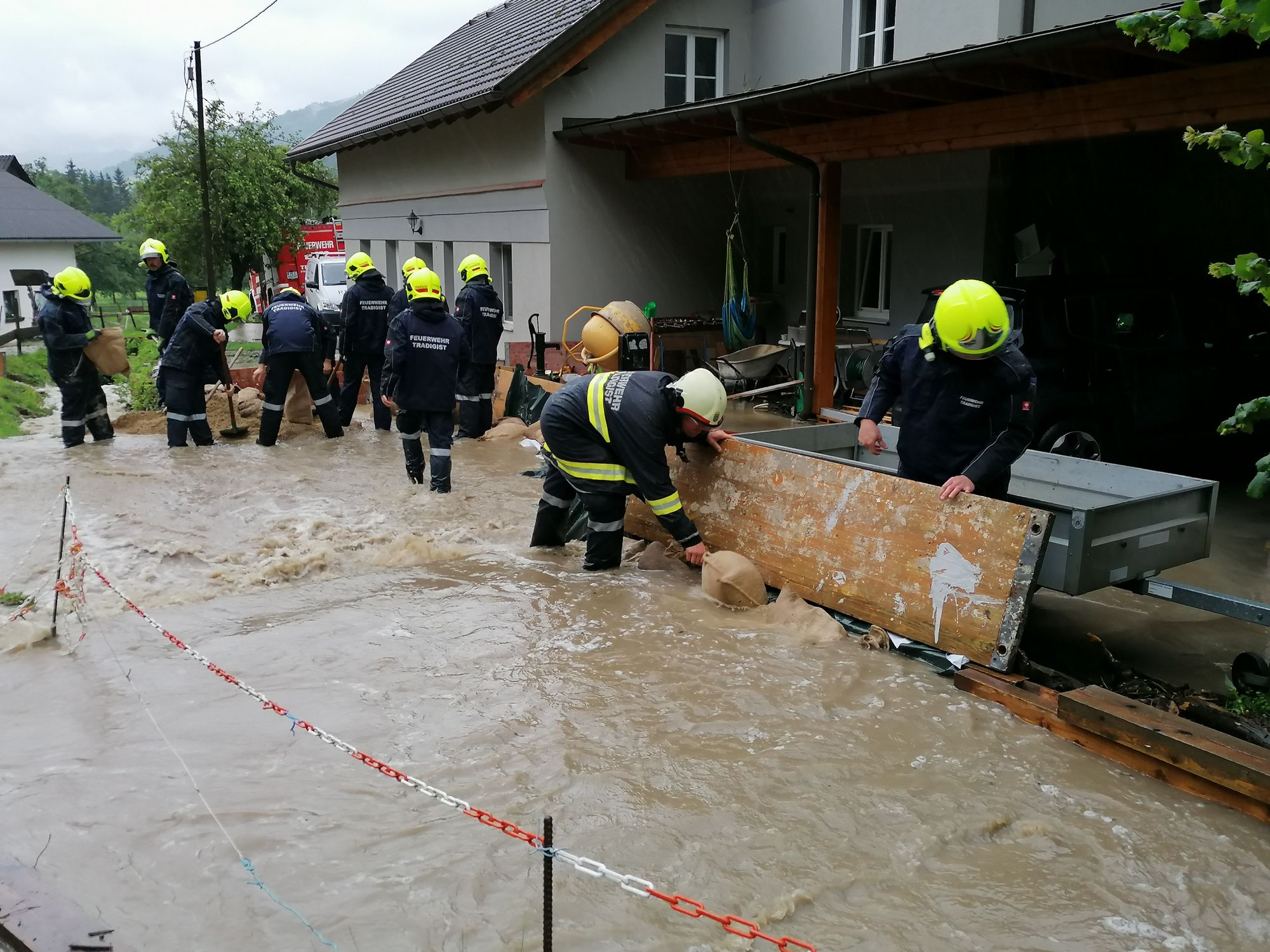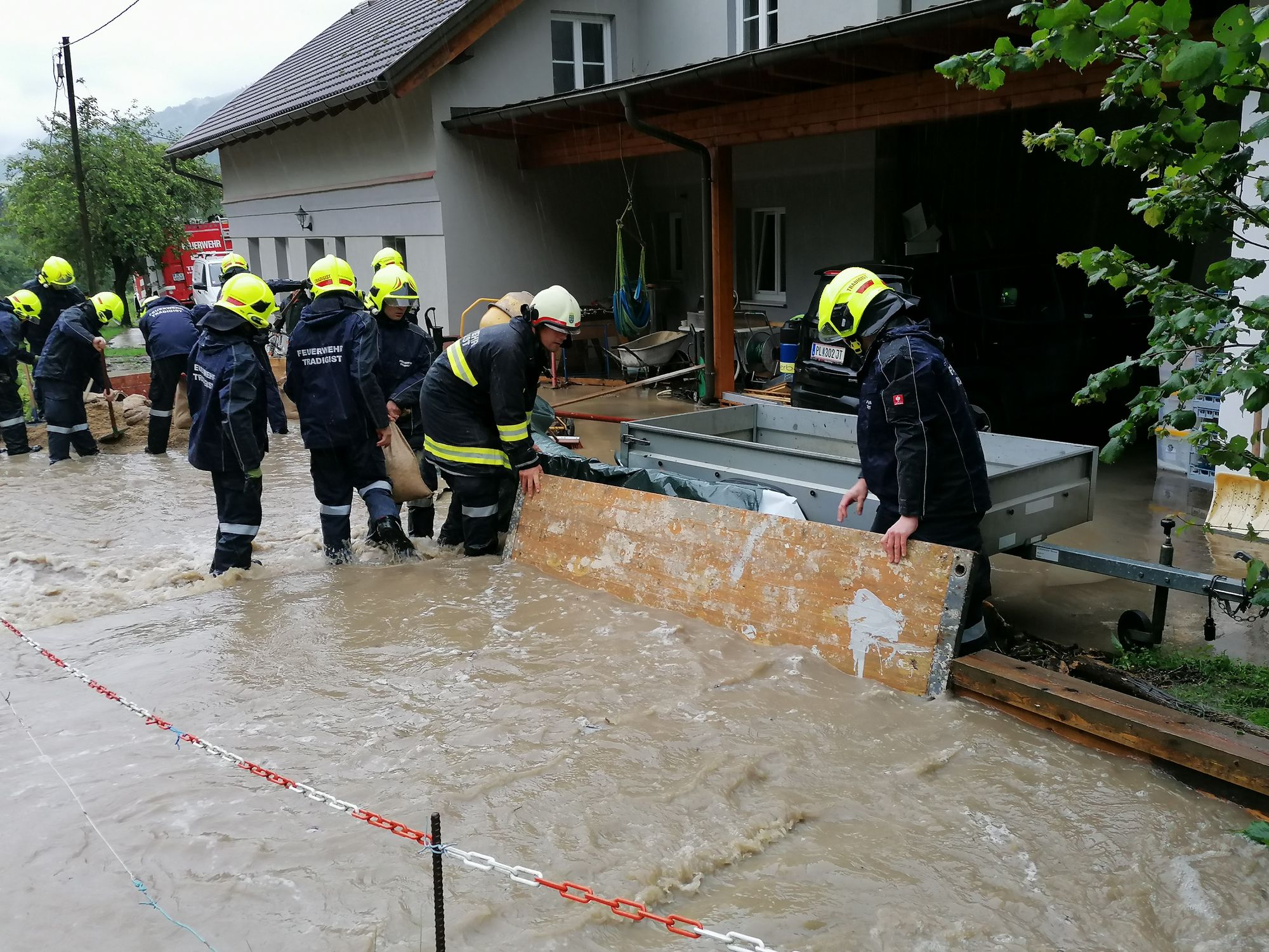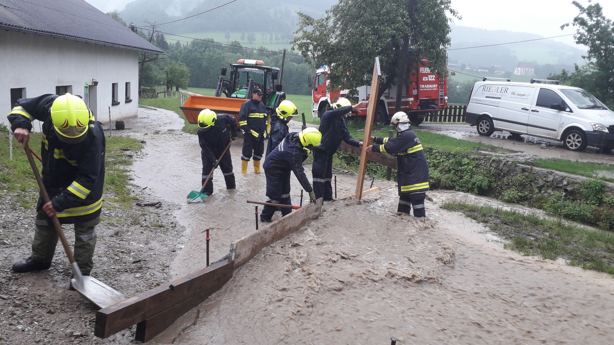 Heute um 15.28 Uhr wurden wir zu einem Hochwasser-Einsatz in Warth gerufen. Auf diesen Einsatz, bei dem ein verstopftes Rohr einen kleinen Bach zum Überlaufen brachte und so Wasser in ein Wohnhaus eintrat - folgten weitere Einsätze in Warth, Steinklamm und Tradigist...