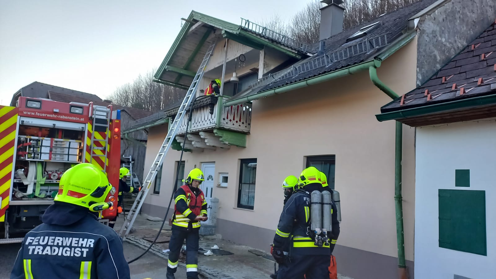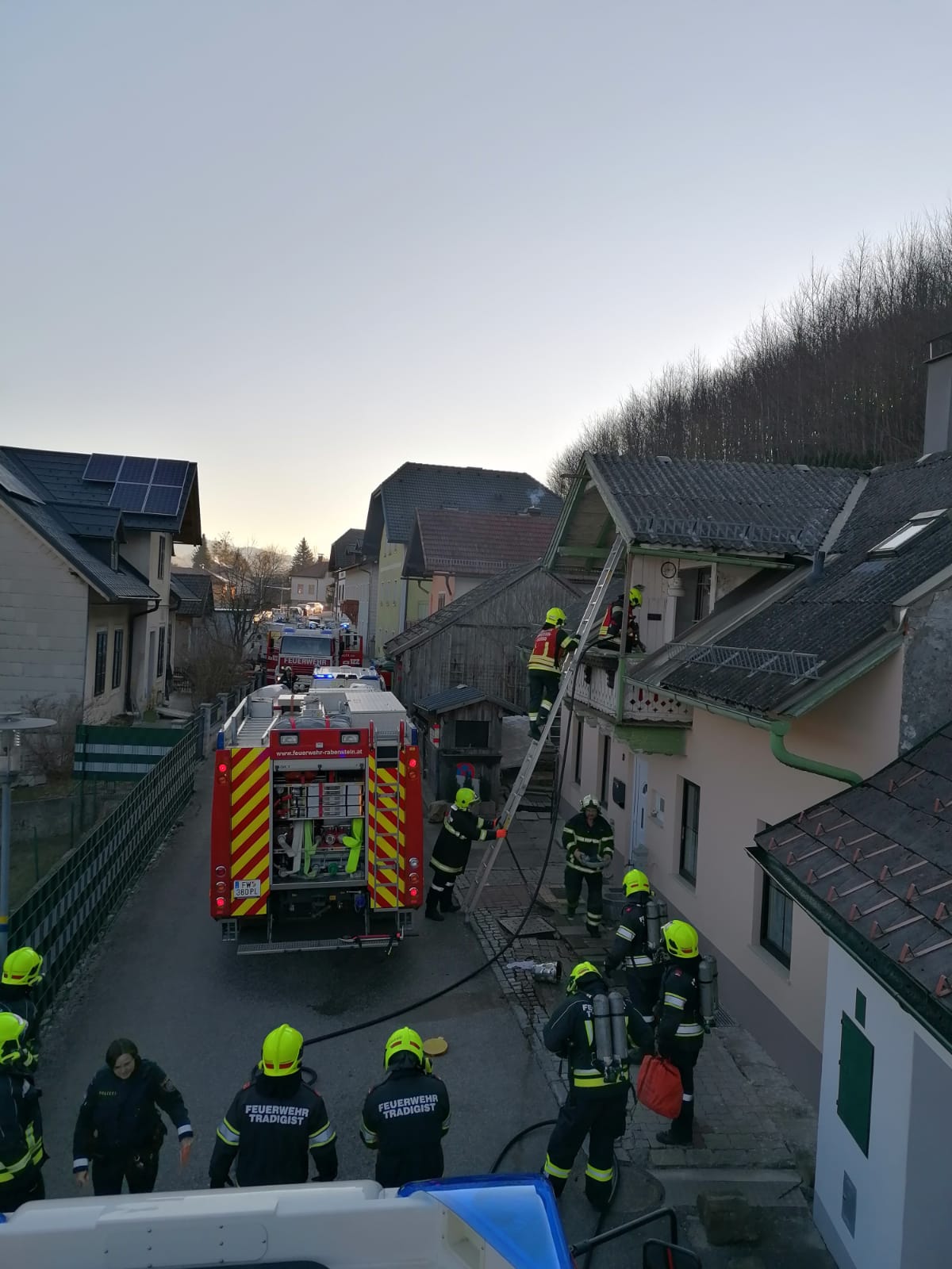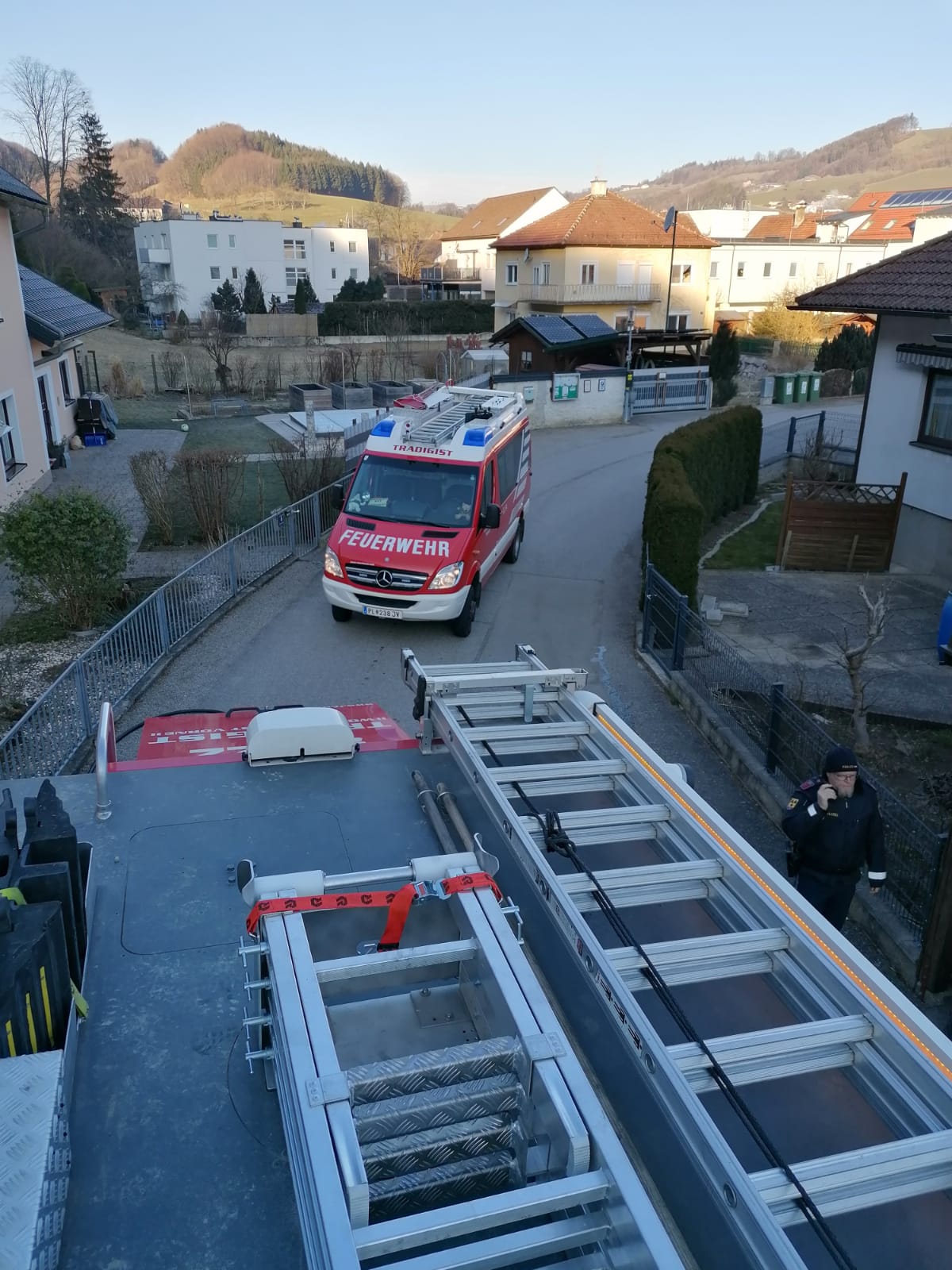Heute um 07.09 Uhr lautete die gemeinsame Alarmierung der freiwilligen Feuerwehren Rabenstein, Tradigist, Hofstetten-Grünau, sowie der Rettung und Polizei: "Wohnungsbrand (B2) in 3203 Rabenstein...". Bei unserem Eintreffen am Einsatzort war aus einem Einfamilienhaus Rauchentwicklung im oberen Stockwerk zu sehen. Sofort rüstete sich der Atemschutztrupp aus. Über eine Leiter gelangten wir auf den Balkon, wo ein brennender Kübel gesichert und gelöscht werden konnte. Durch das schnelle Eingreifen konnten schlimmere Schäden verhindert werden.