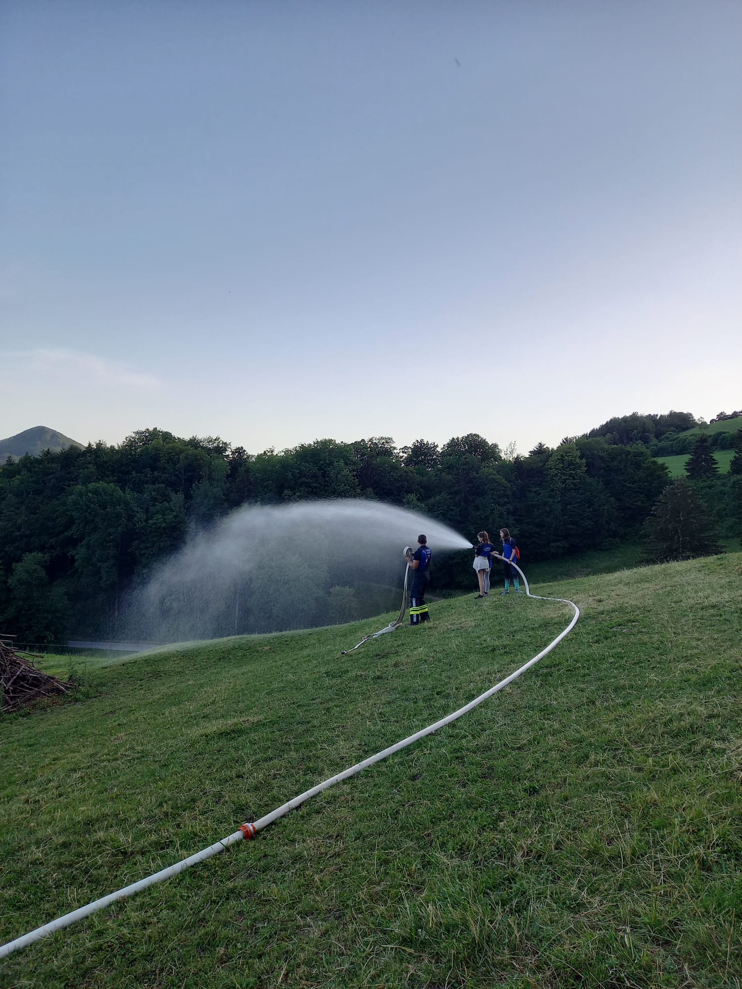 Gemeinsam mit unseren Nachwuchs-Firefighters wurden Löschleitungen vom Tanklöschfahrzeug (TLF) bis zur Brandstelle aufgebaut und betreut. Das umliegende Gelände war durch die getroffenen Maßnahmen während und nach Sonnwendfeuer und Feuerwerk gesichert. So konnte diese schöne Tradition in sicherem Rahmen durchgeführt werden. Auch die Wärmebildkamera kam zu Übungszwecken zum Einsatz.