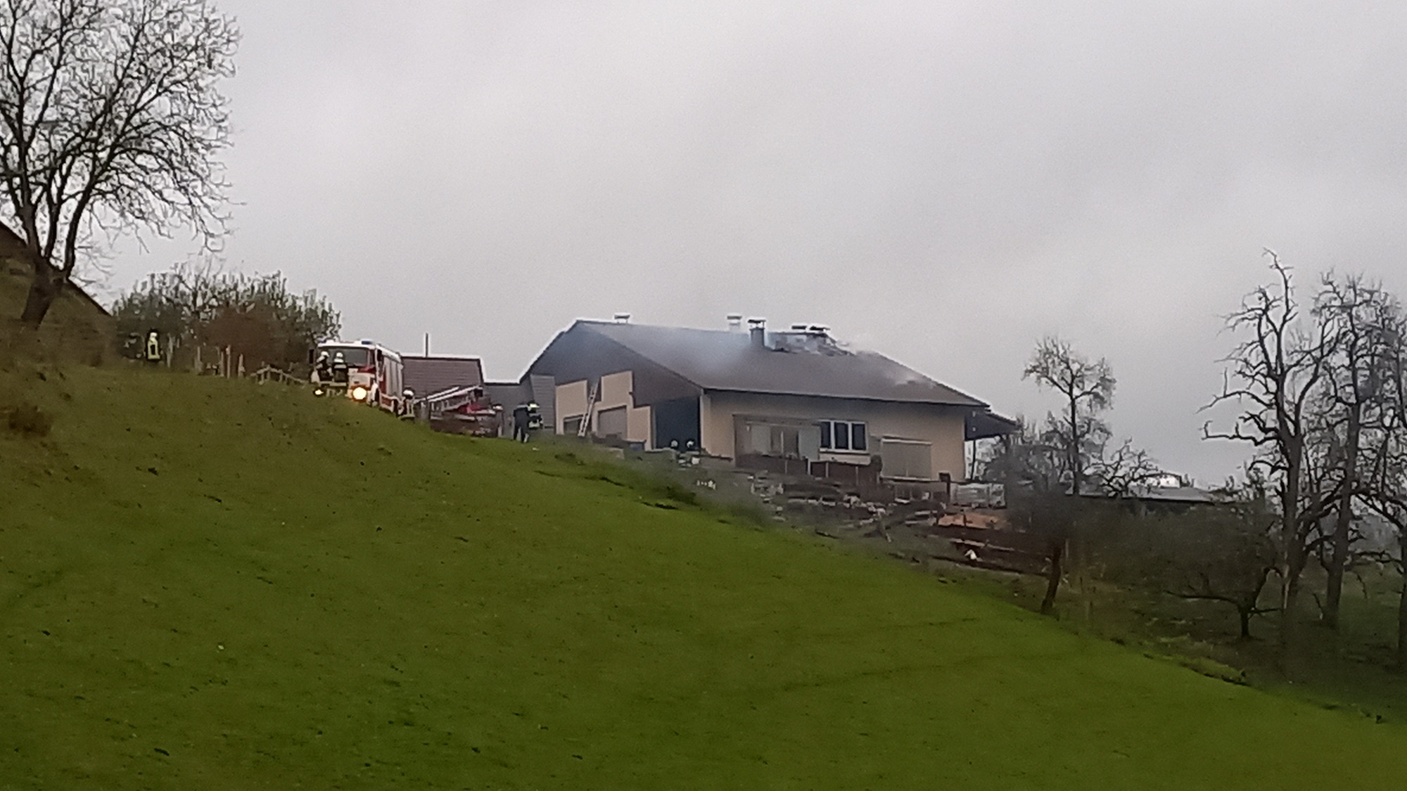 Der Brand war in einem Nebengebäude mit integriertem Hackschnitzellager sowie Heizungsanlage ausgebrochen.