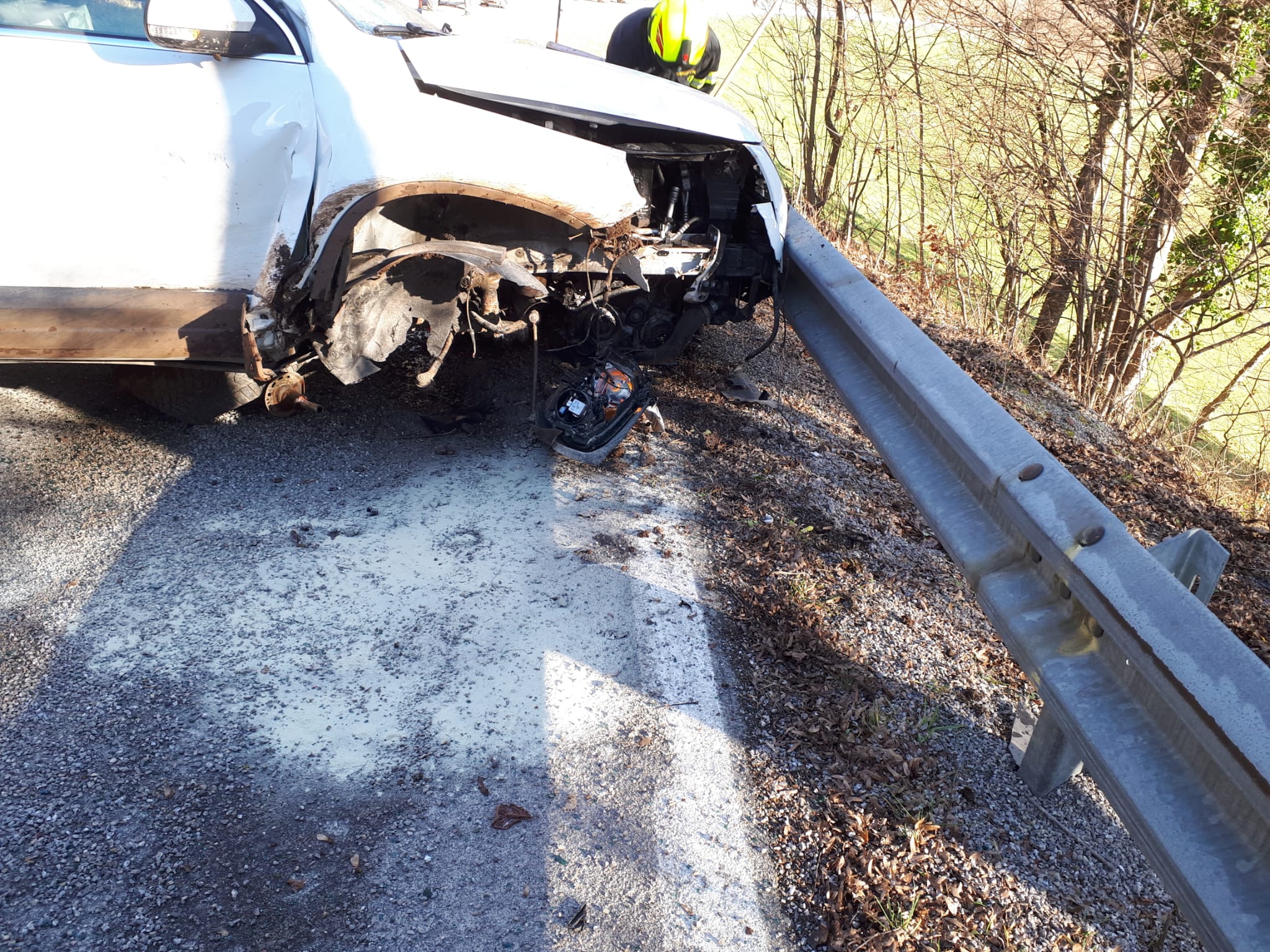 Wir übernahmen die Verkehrsregelung bergseitig und unterstützen die FF-Eschenau bei der PKW-Bergung. Mittels unserer Rangierroller wurde das verunfallte Fahrzeug um 90 Grad gedreht und so konnte im Anschluß an die Straßenreinigung wieder eine Fahrspur für den nachkommenden Verkehr freigegeben werden.