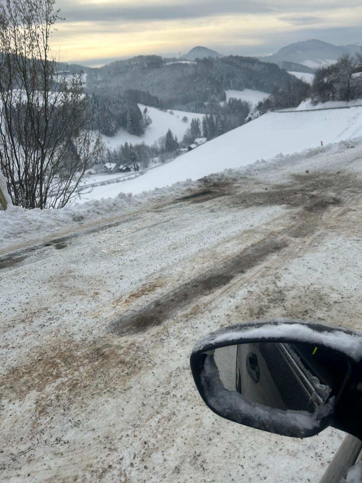 Am Einsatzort angekommen, hing ein Sattelschlepper in einem etwas steileren Stück. Da für die Strecke keine Kettenpflicht vorhanden ist, versuchte es der LKW-Lenker auf der schneebedeckten Fahrbahn ohne Ketten bis er hängenblieb und nicht mehr weiter konnte. Beim Versuch zurückzuschieben geriet das Sattelfahrzeug schon ins Bankett.