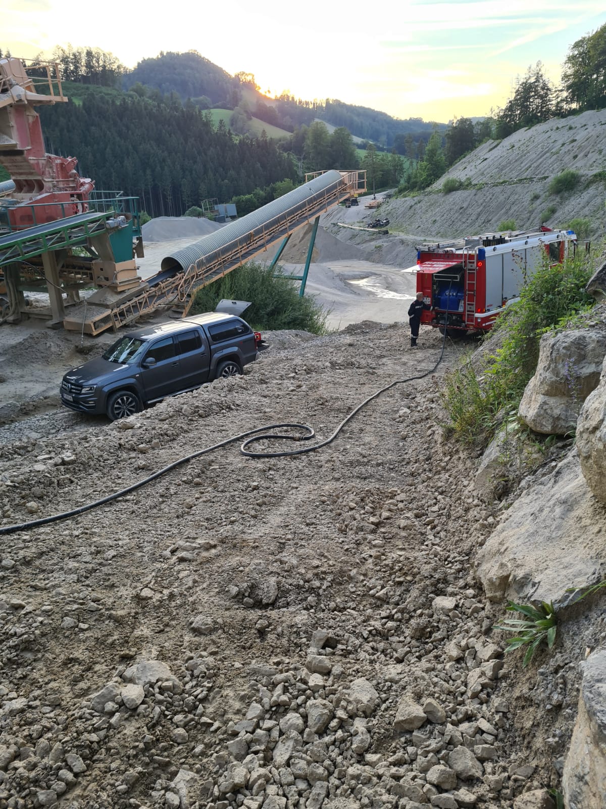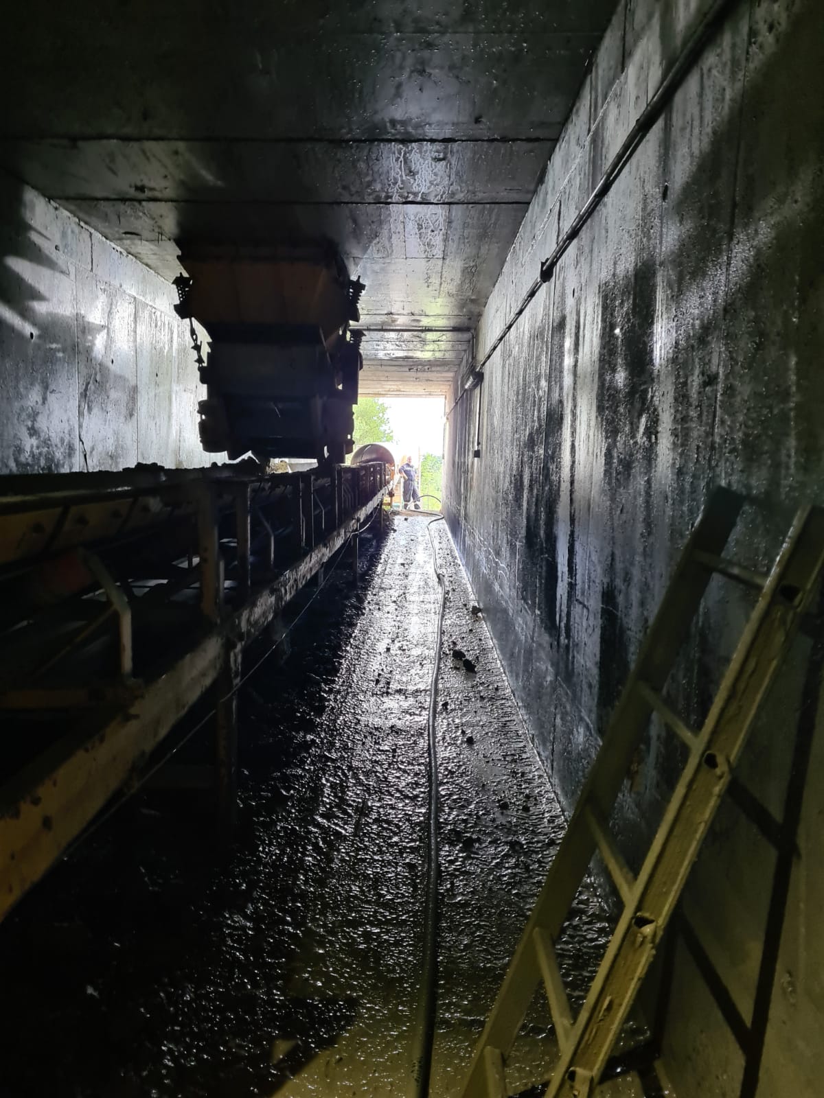 Aufgrund der starken Unwetter in den vergangenen Wochen kam es in einem Tunnel der Schottergrube zu Wasser- und Schlammansammlung.