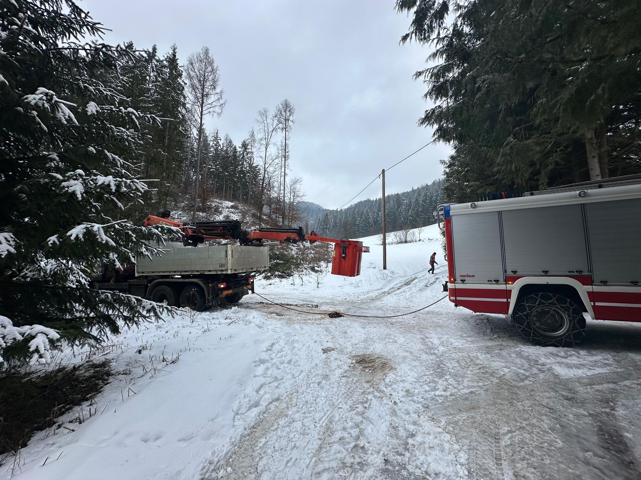 Am Donnerstag, den 29.01.2026, wurden wir von einer Privatperson verständigt, dass ein LKW auf einem Weg in eine missliche Lage geraten war und nicht mehr aus eigener Kraft weiterfahren konnte.
