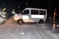 Aufgrund des Schneefalls war ein Klein-Bus auf schneebedeckter Fahrbahn bei einem Umdrehmanöver seitlich