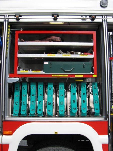 Schlauchlade mit 100m B-Druckschlauch als Schnellangriff