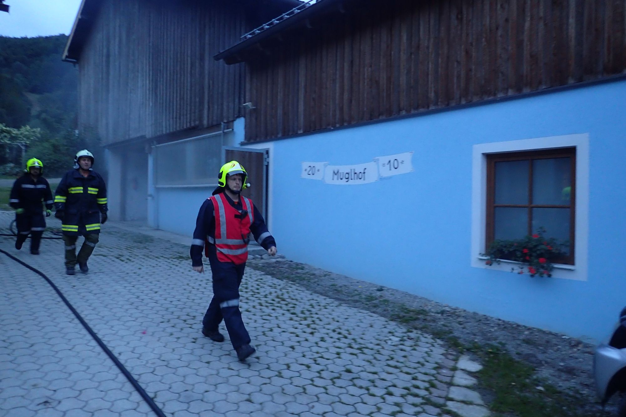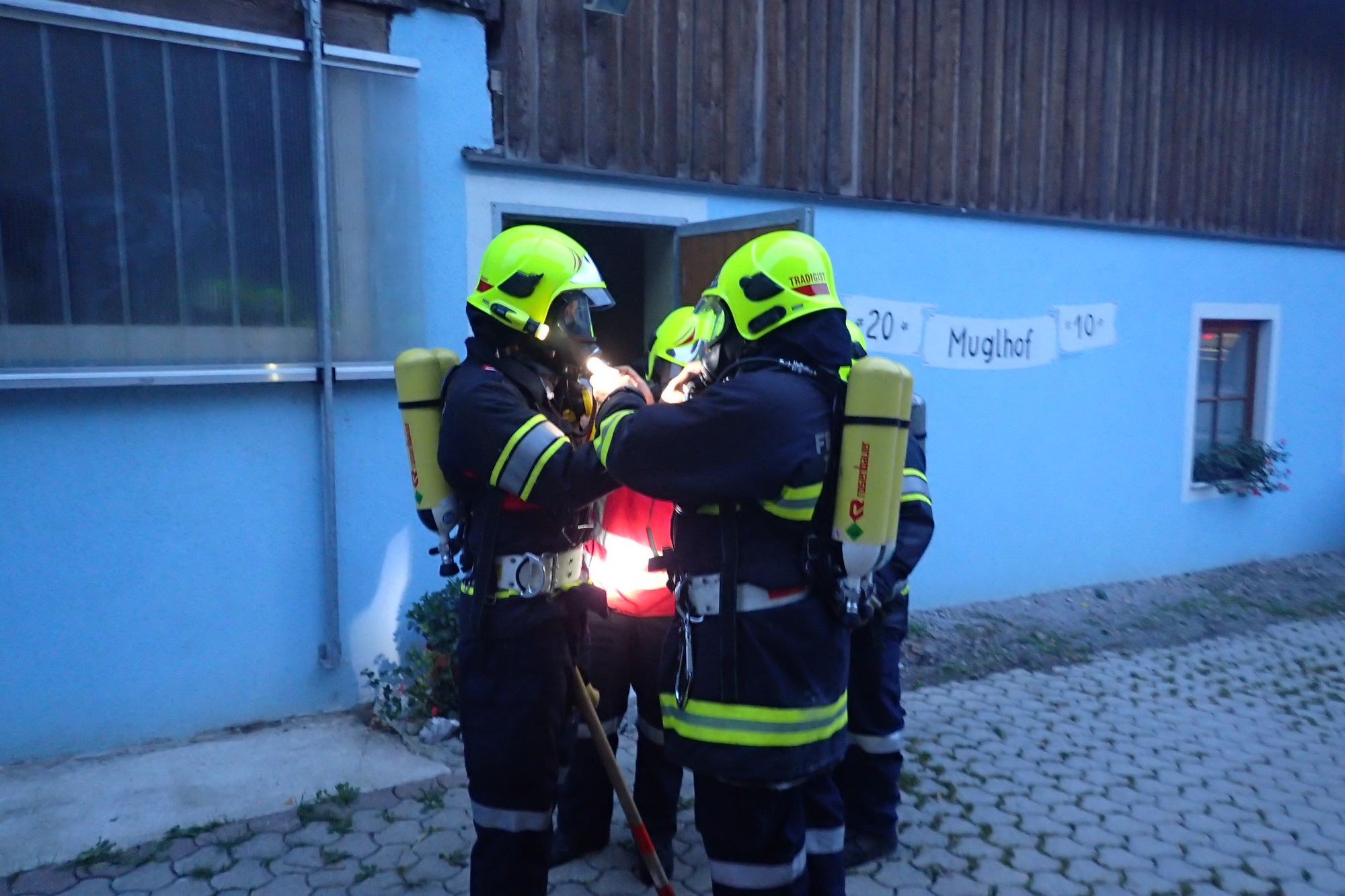 Unsere Gesamtübung zum Thema Atemschutz fand am Anwesen der Fa. Zöchbauer (Muglbauer) statt. Übungsannahme war ein Brand im Stallgebäude. Eine Person wurde vermisst und musste vom Atemschutztrupp gerettet werden.