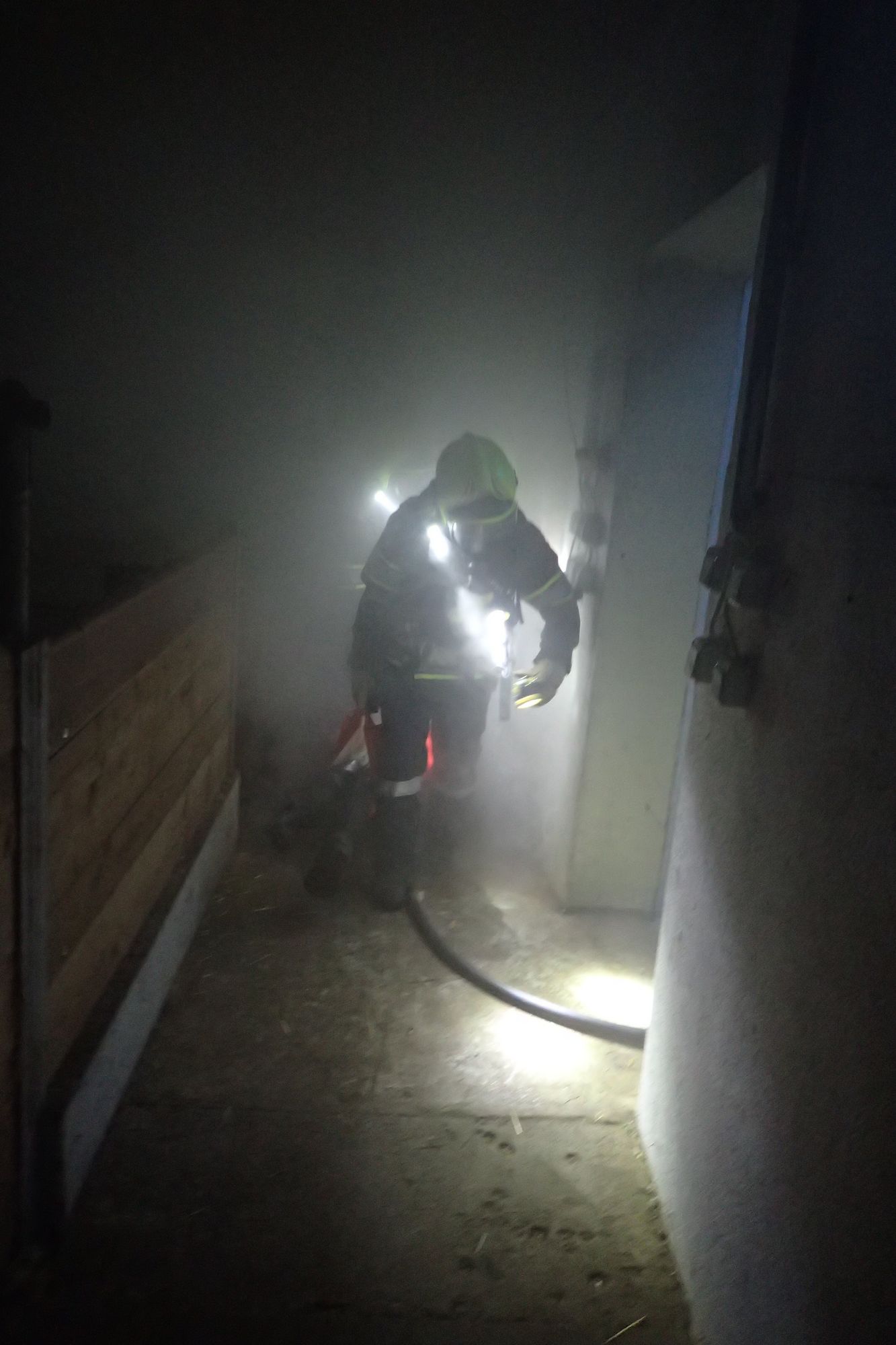 Anschließend wurde ein Innenangriff durchgeführt bis Brandaus gegeben werden konnte. Zu guter letzt wurde das Stallgebäude mittels Druckbelüfter vom Rauch befreit.