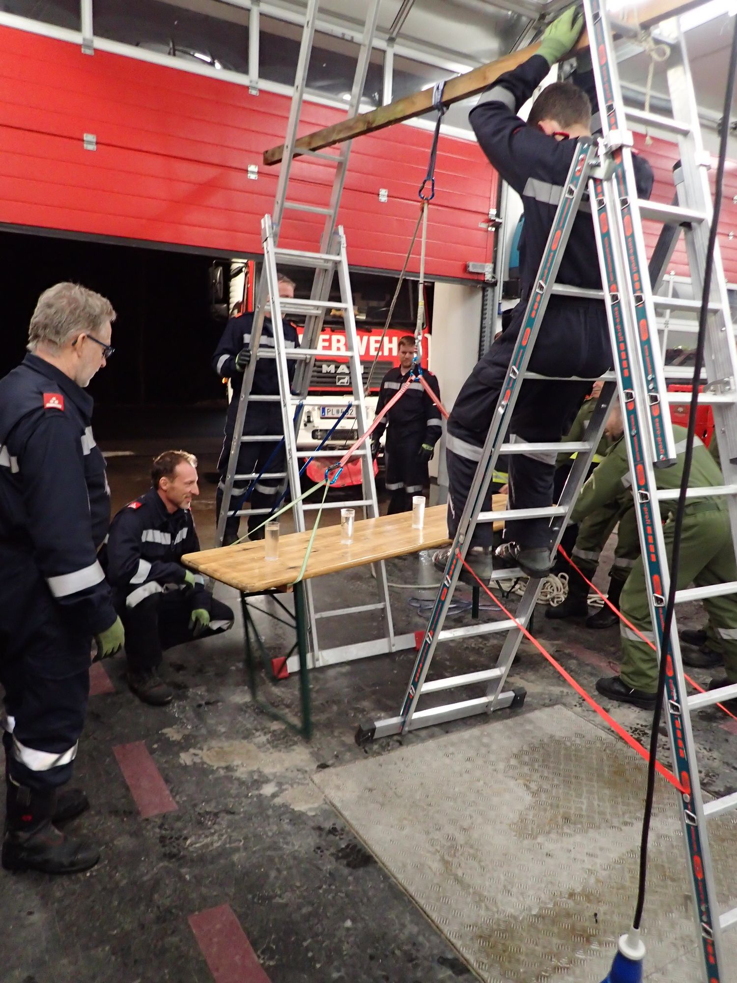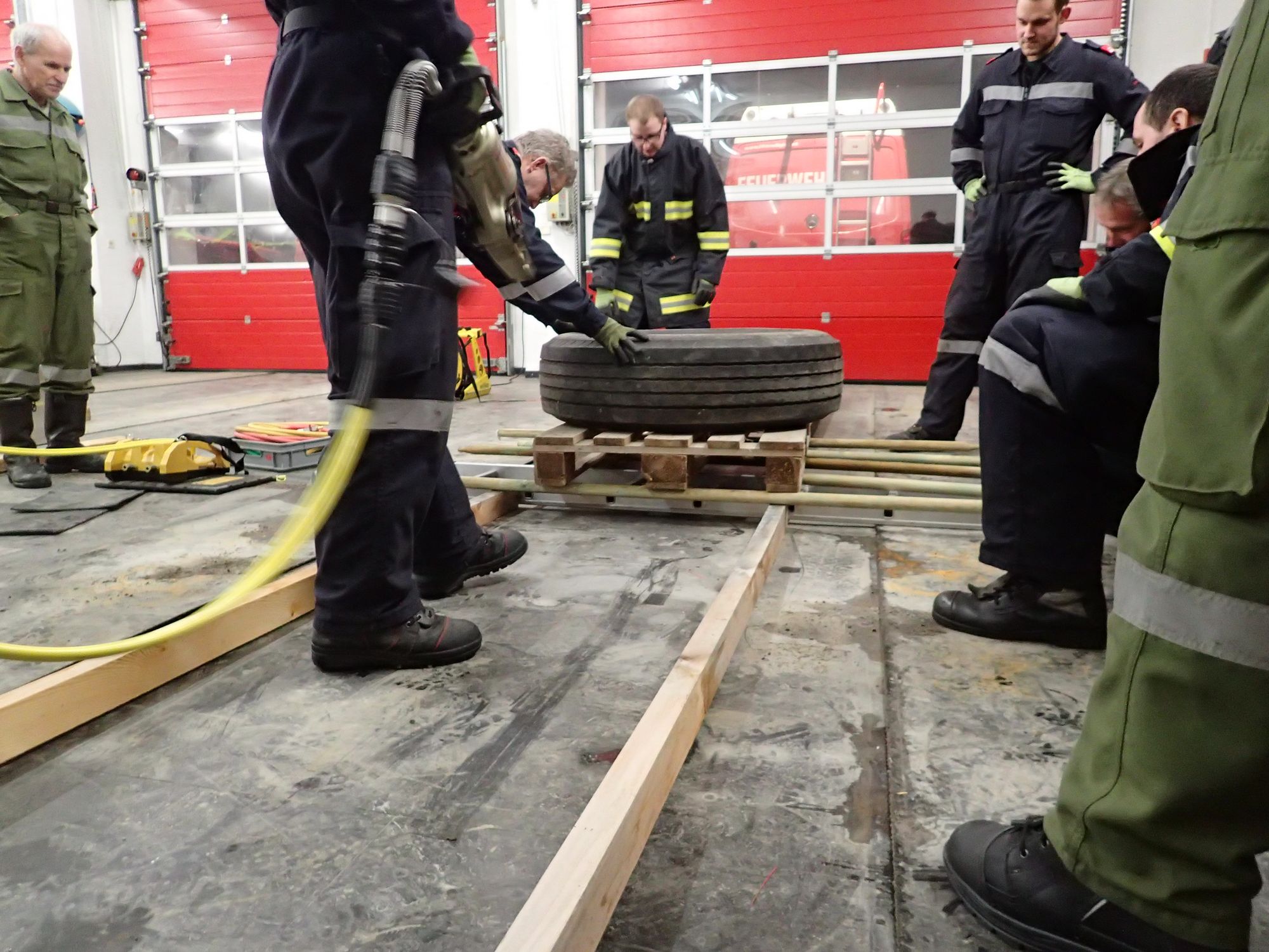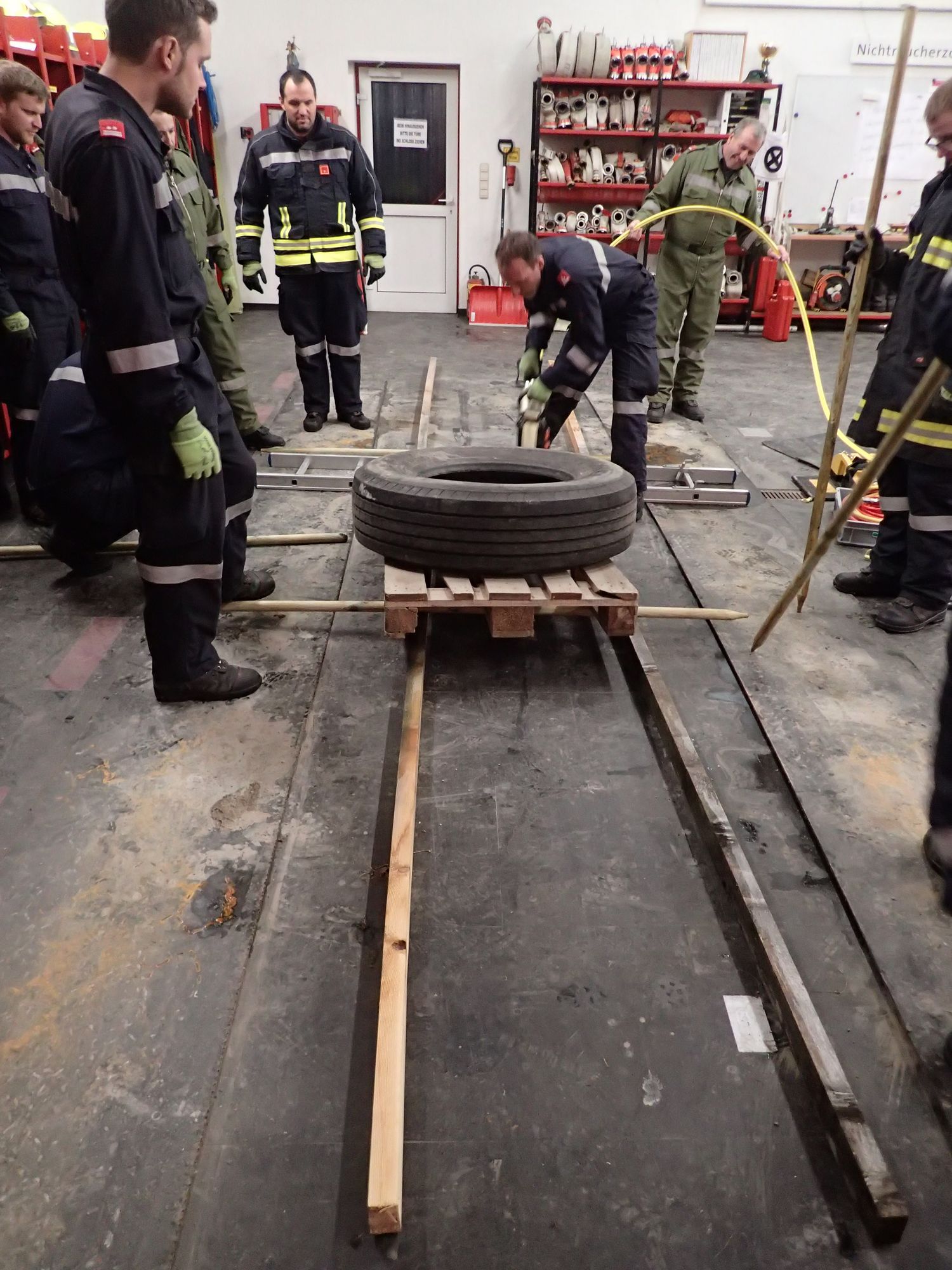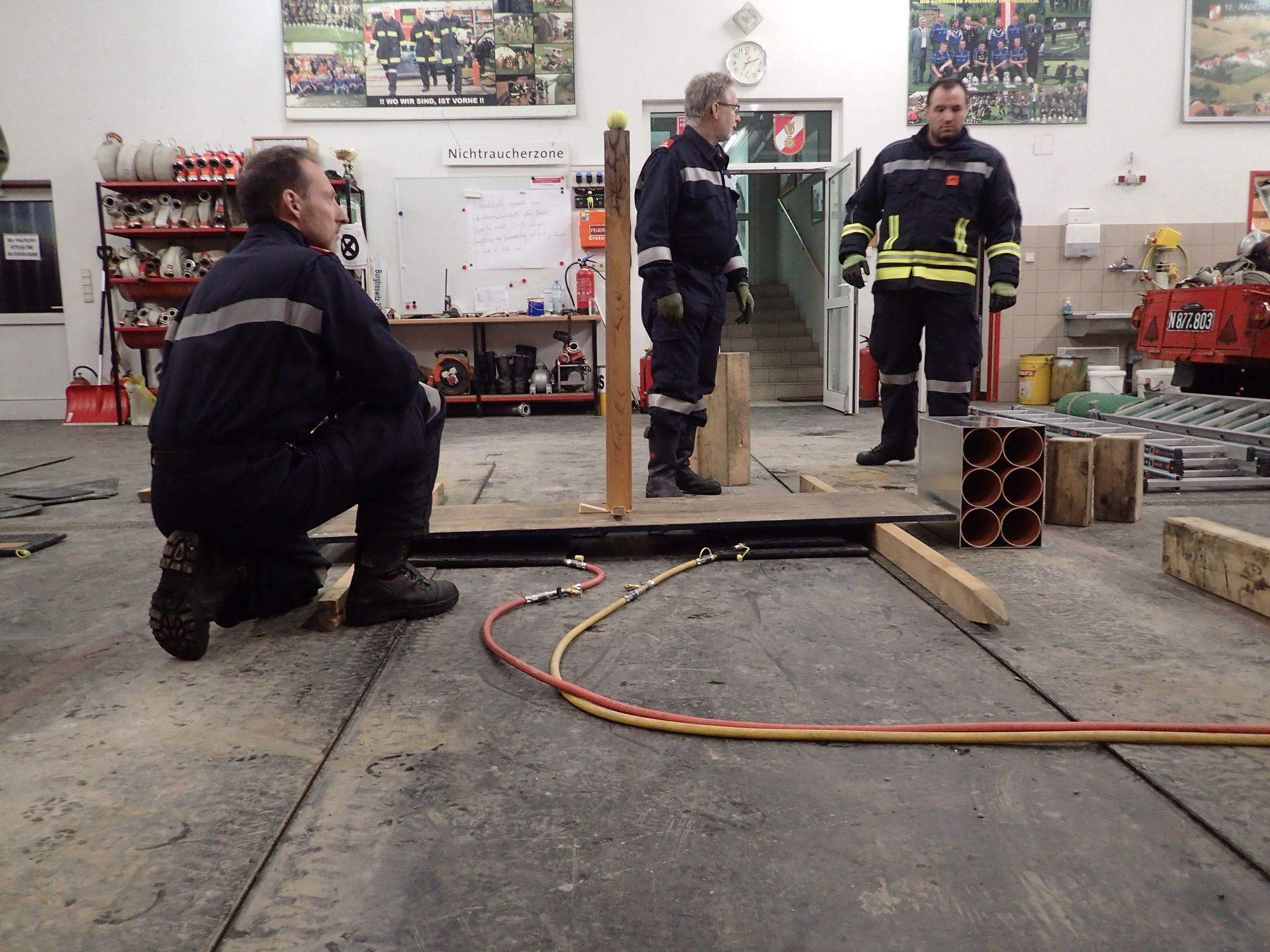 Ziel war es in Teams drei Aufgabenstellungen, unter Einsatz aller zur verfügung stehender Gerätschaften aus den Feuerwehrfahrzeugen, möglichst effizient zu erfüllen - ohne dabei Muskelkraft anzuwenden.