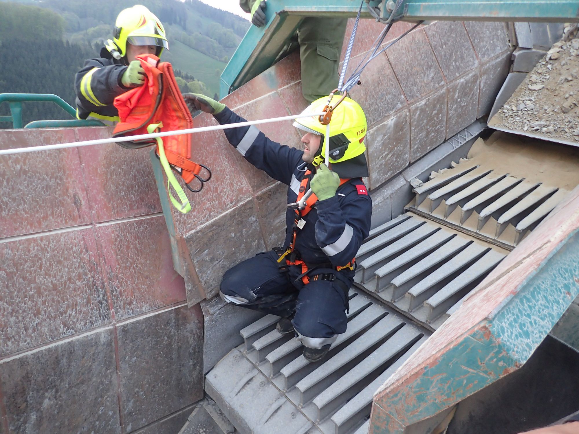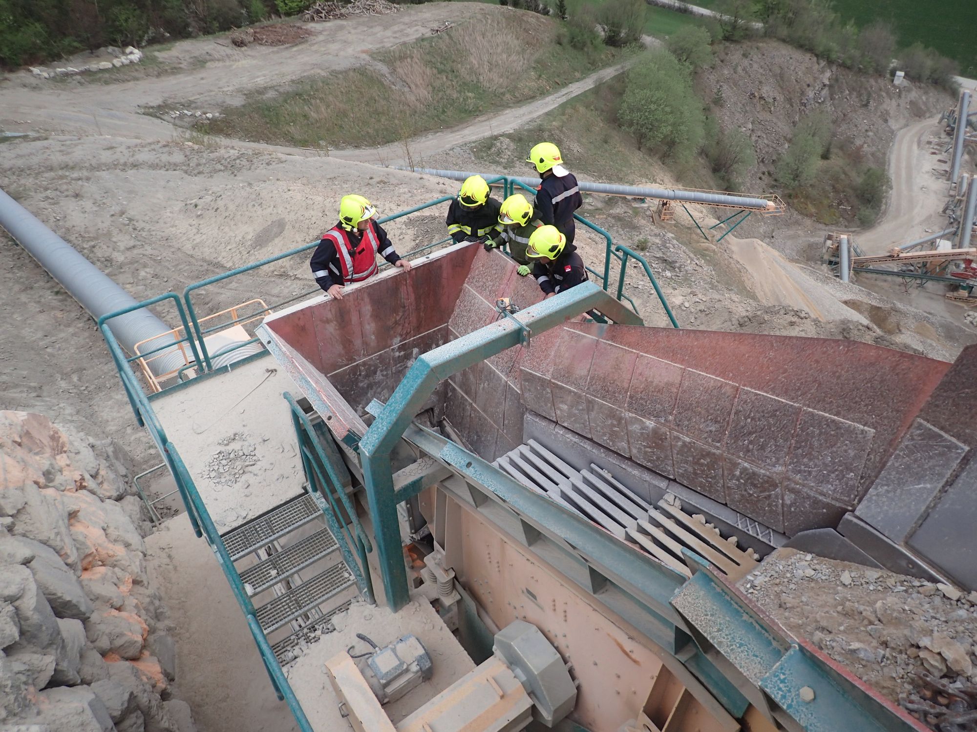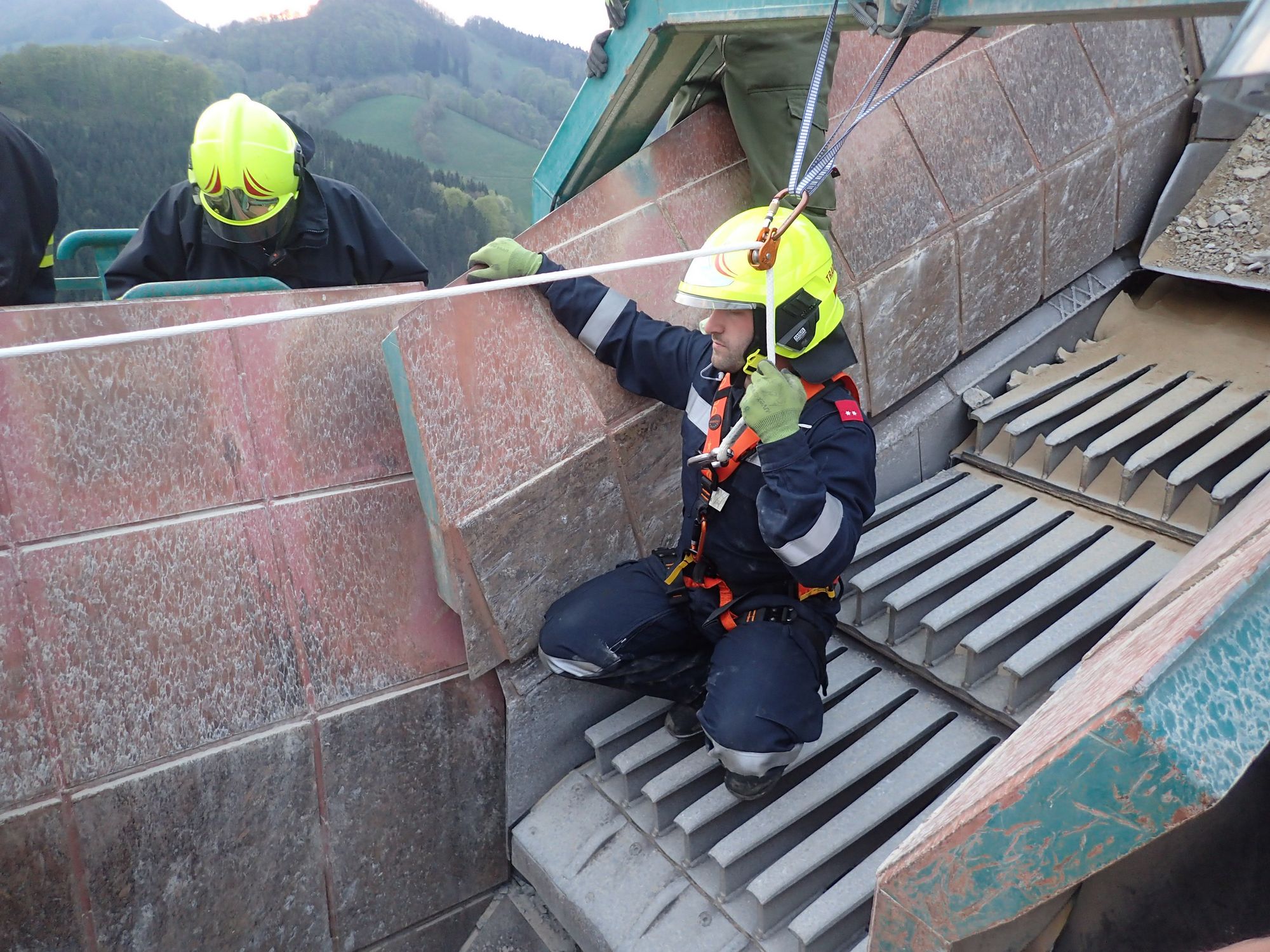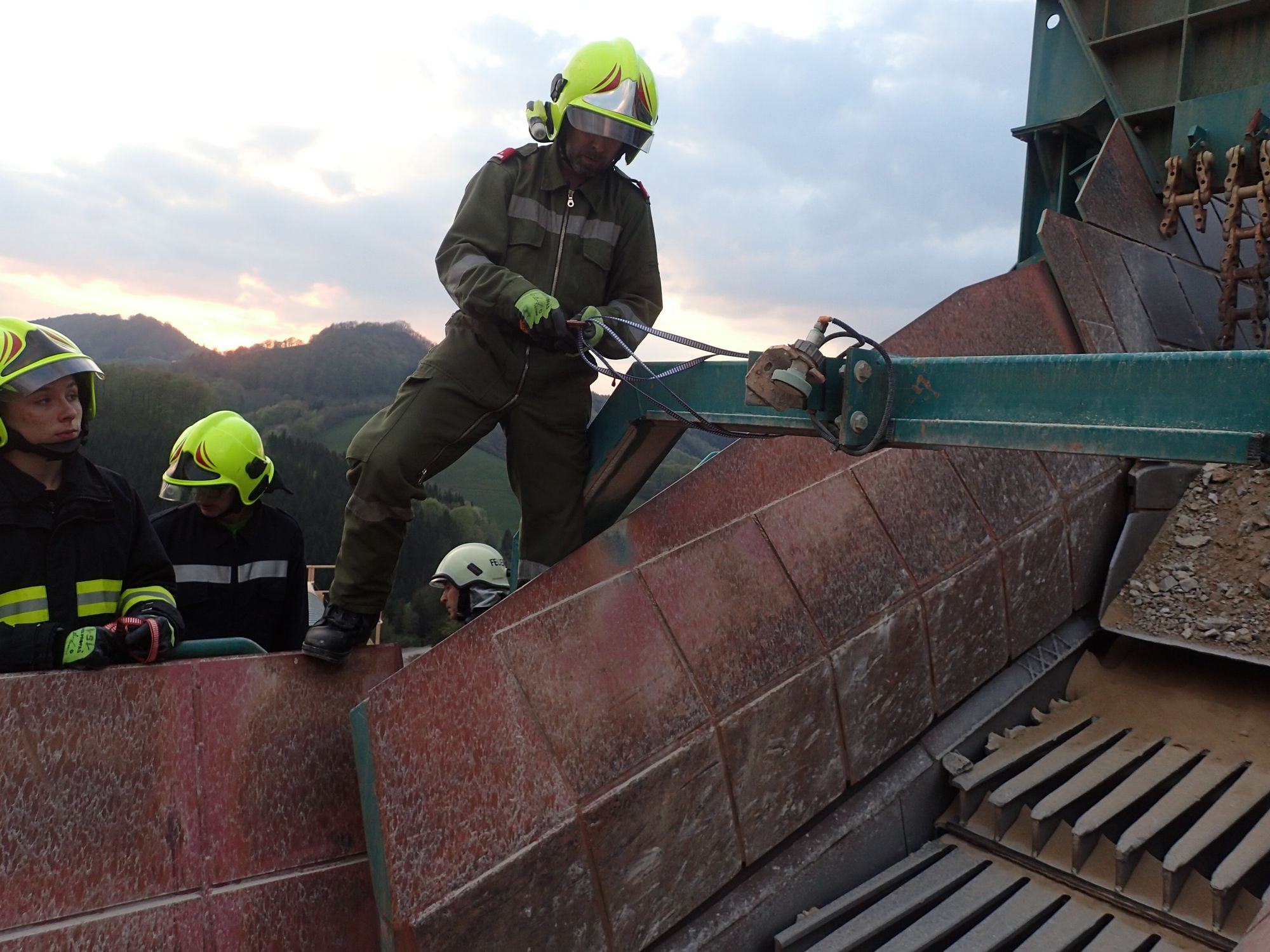 Es wurde simuliert, dass eine Person in den Steinbrecher einer Schottergrube gestürtz war, sich dabei verletzt hatte und somit nicht mehr selbstständig befreien konnte.