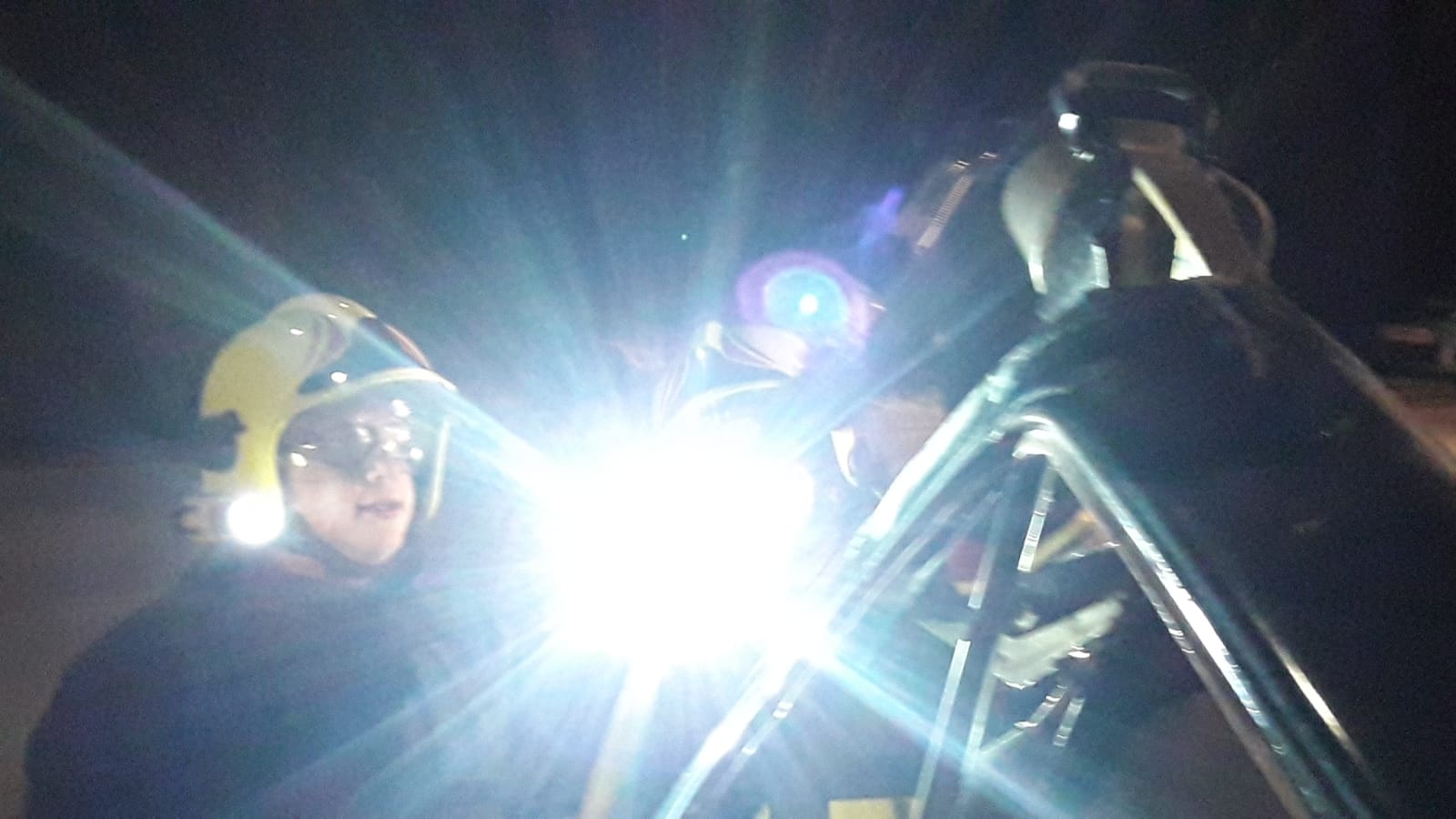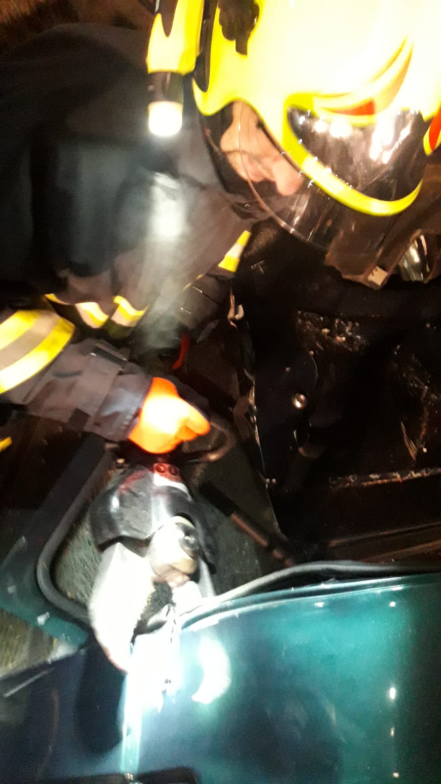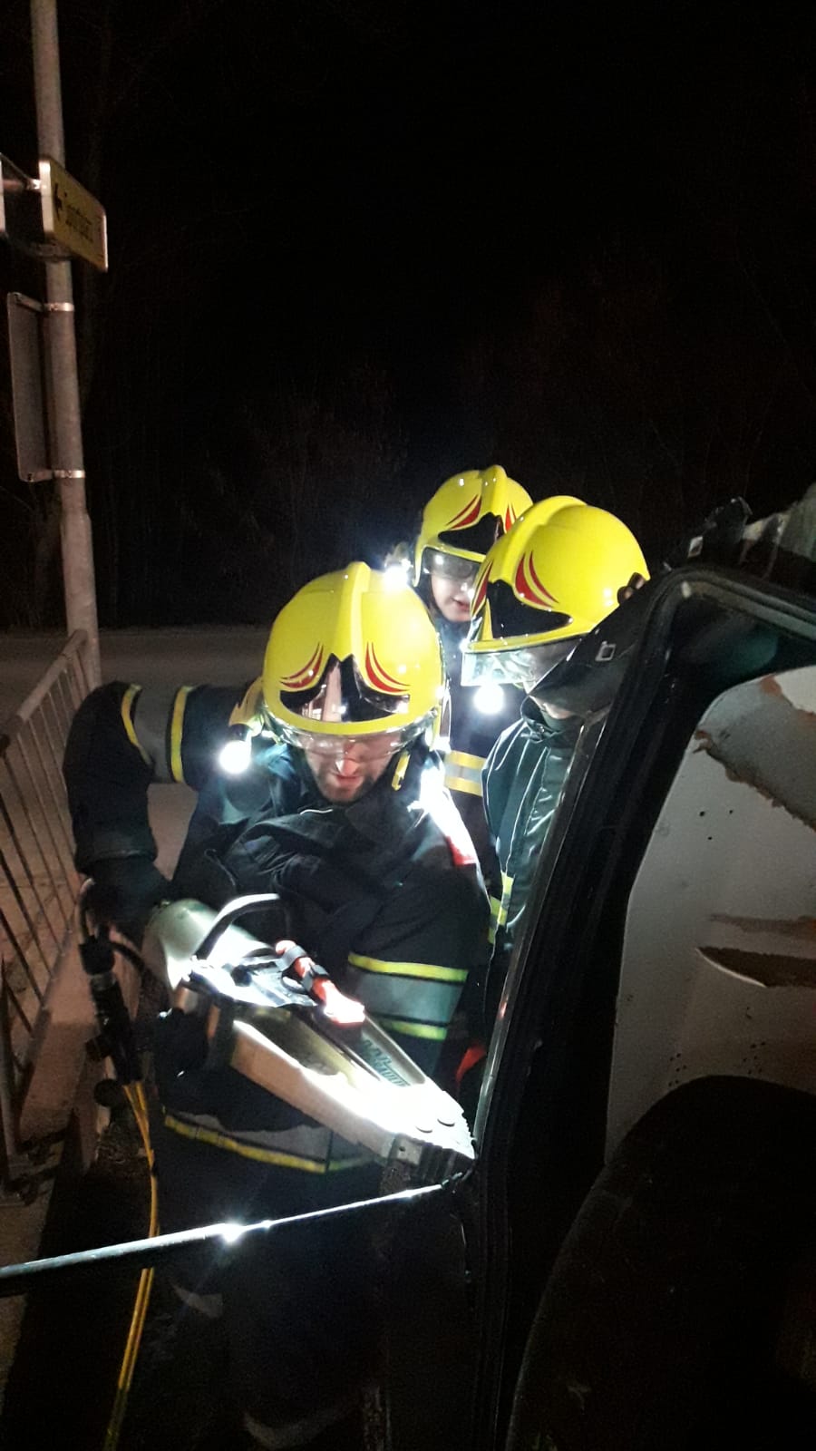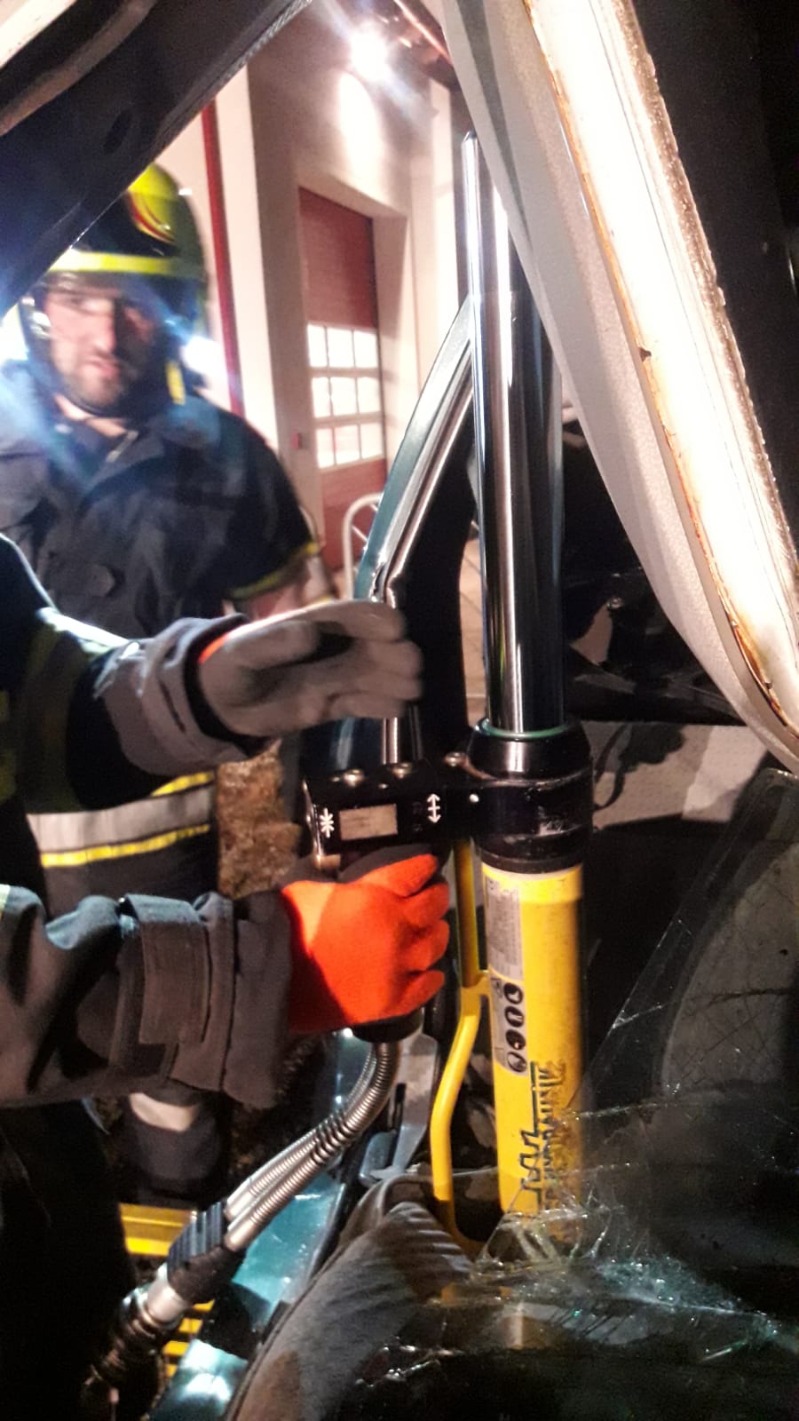 Heute fand wieder eine techn. Übung statt. Bei einem deformierten Klein-Bus wurde mit Spreitzer und Rettungszylinder ein Zugang zum Fahrgastraum hergestellt