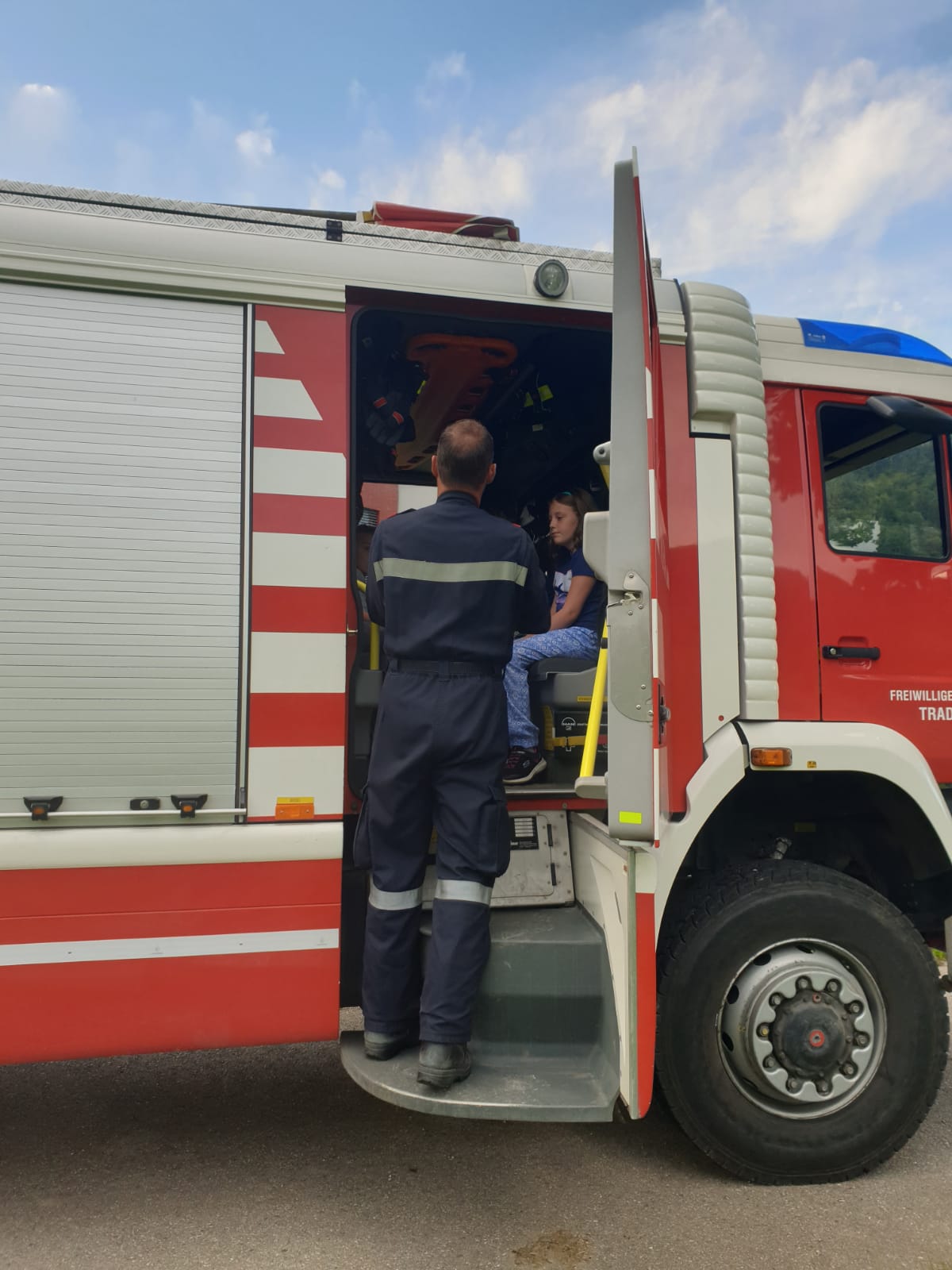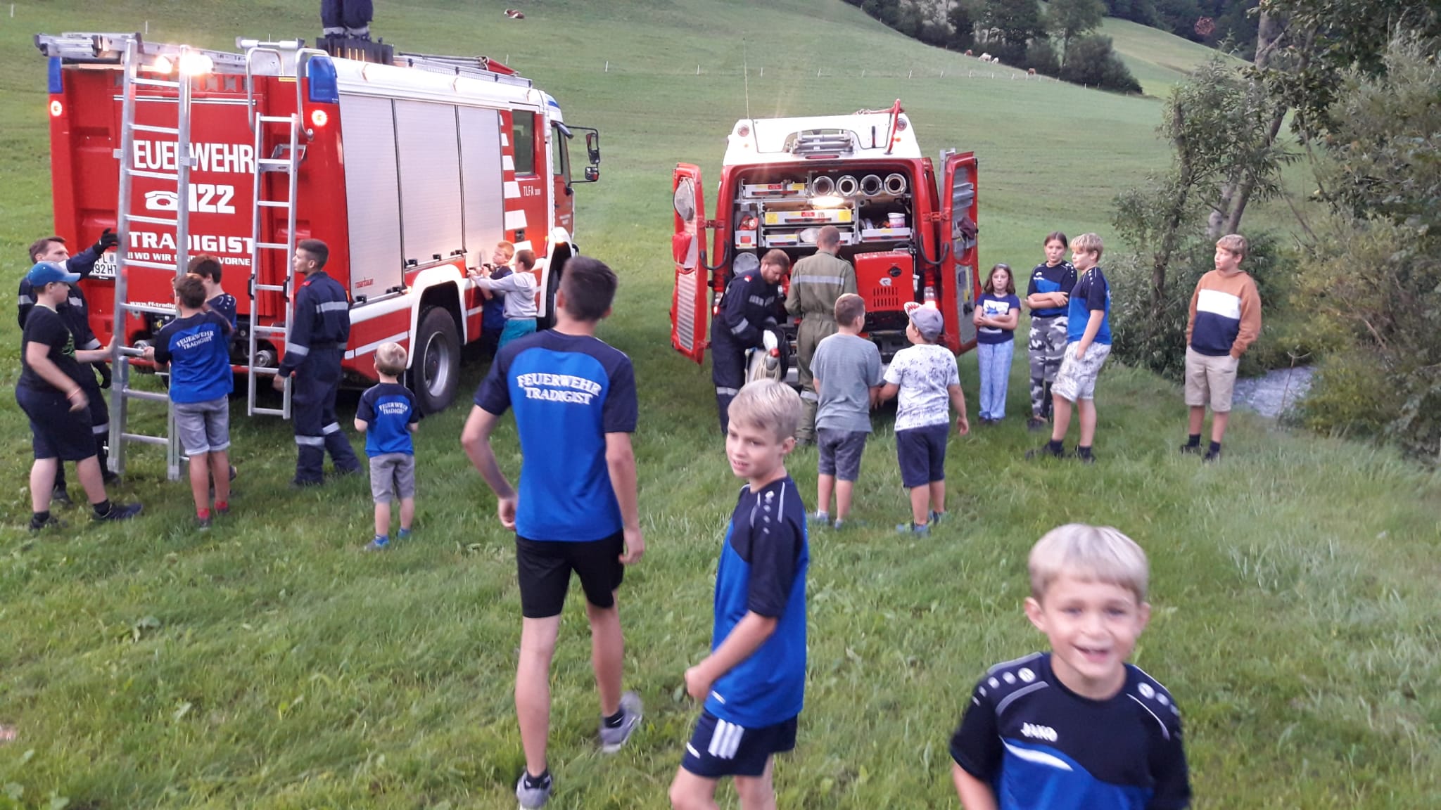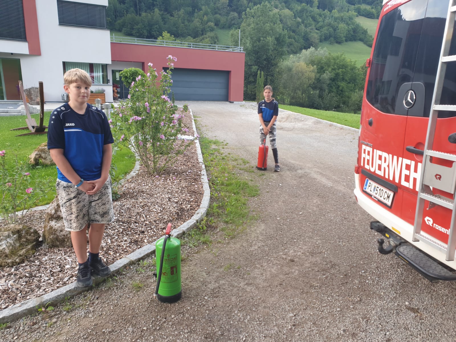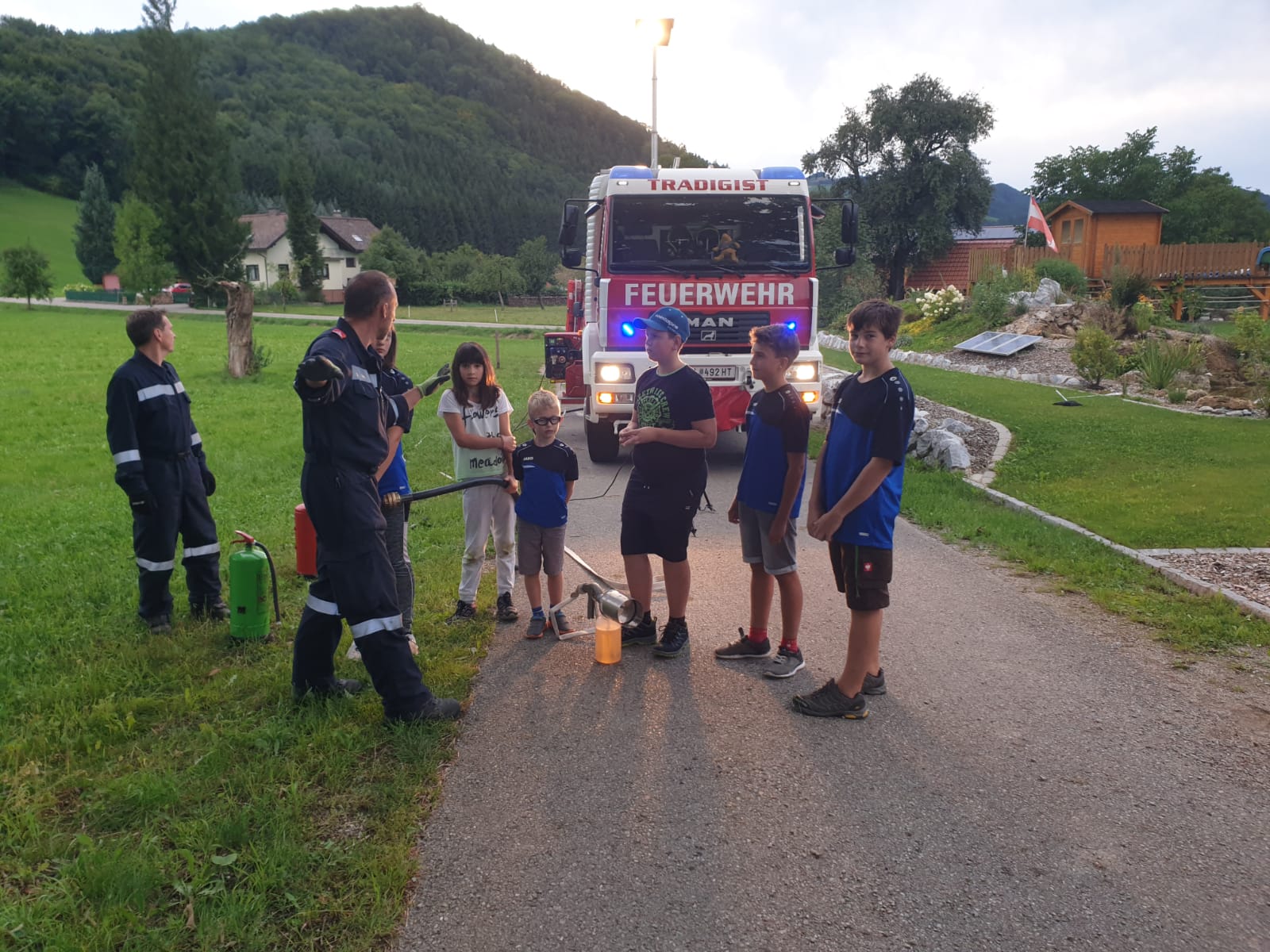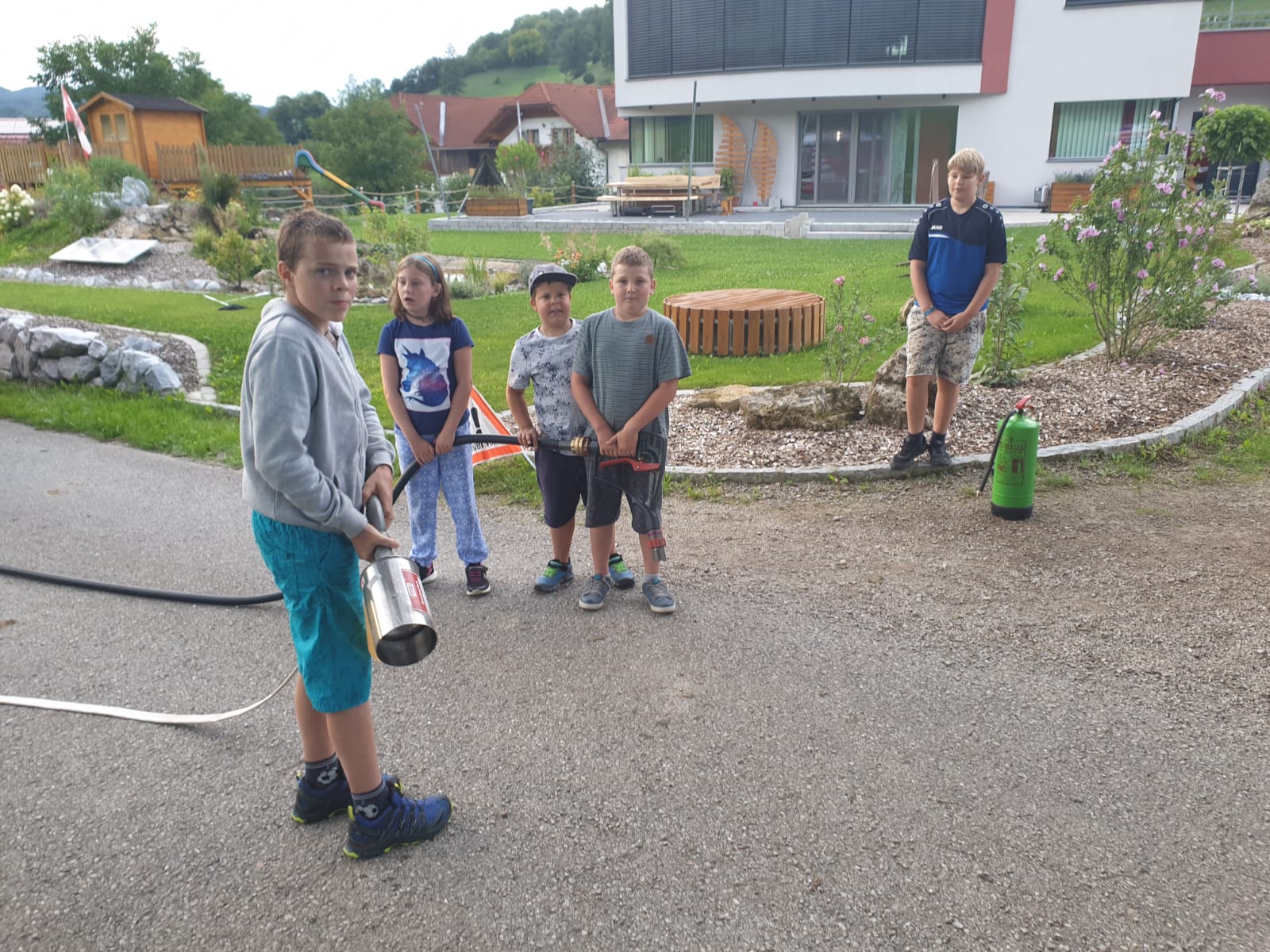 Danach wurde aus Steckleitern und einer Plane ein Auffangbecken (z.B. für austretende Schadstoffe) errichtet. Zur Demonstration wurde das Becken mit Wasser gefüllt und wieder ausgepumpt.