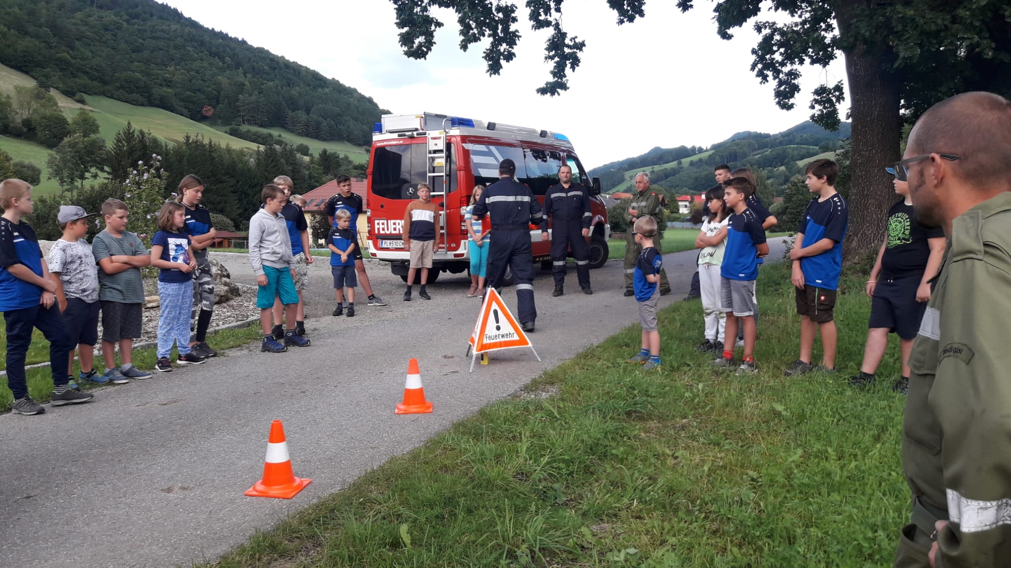 Heute sicherten wir mit Verkehrsleitkegeln, Winkerkellen, Warndreiecken, Blaulicht und Verkehrsleiteinrichtung eine angenommene Unfallstelle ab.