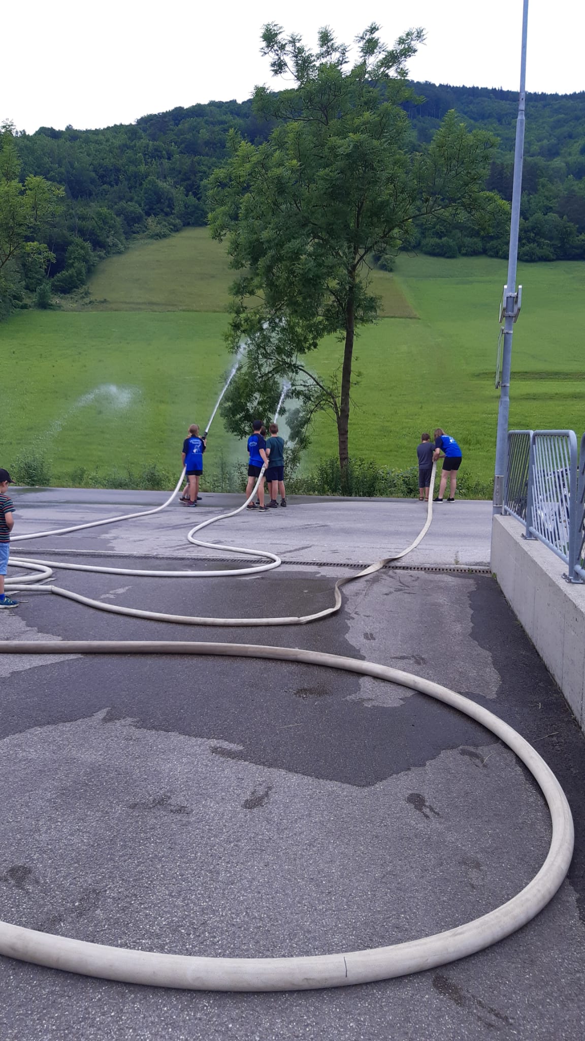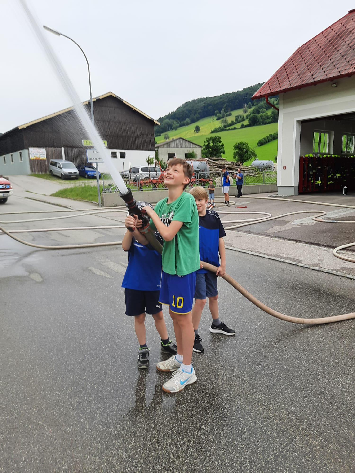 Die heutige Übung war wieder für Interessierte zum Reinschnuppern ins Feuerwehrwesen offen. Nach einer Besprechung und Gruppenzuteilung im Feuerwehrhaus wurden Wasserversorgung und Schlauchleitungen aufgebaut, um den angenommenen Brand zu löschen.