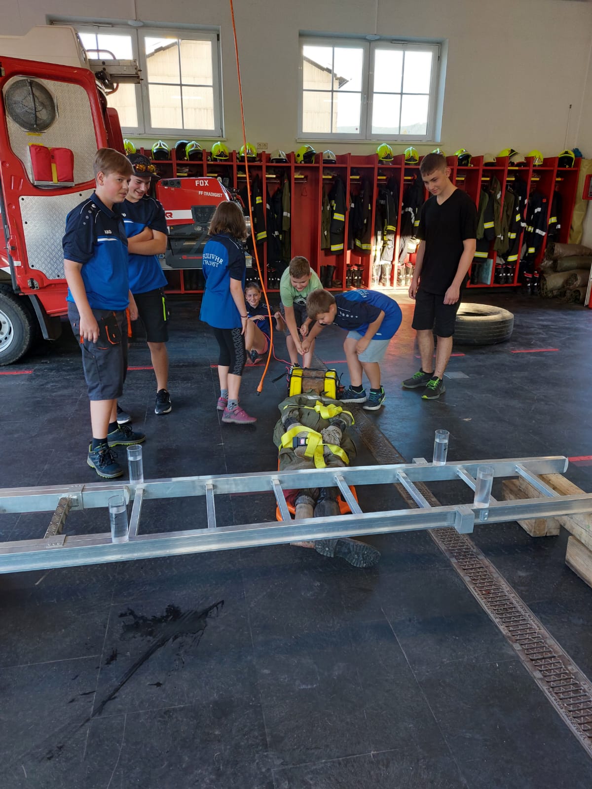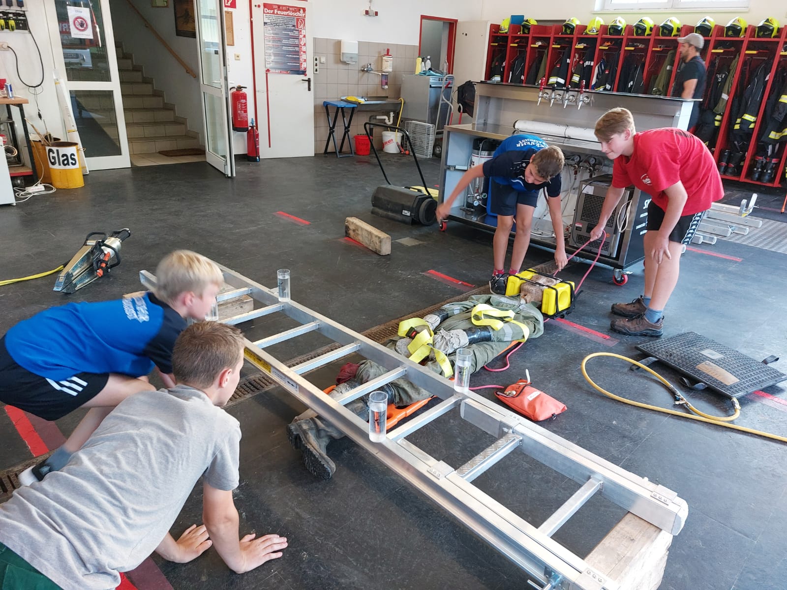 Bei der heutigen offenen Übung wurden Hebe- und Bewegungsmöglichkeiten von schweren Gegenständen erprobt. In 2 Stationen fanden die Teilnehmer*innen Gegenstände vor, die es zu Heben und/oder zu Bewegen galt. Gute Teamarbeit, Geschicklichkeit, Kenntnisse über die Hilfsmittel/Gerätschaften und deren Einsatzmöglichkeiten sind wichtige Parameter, um im Einsatzfall richtig und routiniert reagieren zu können. Als Hilfsmittel dienten den Teams Hebekissen, Spreizer und Rangierroller.