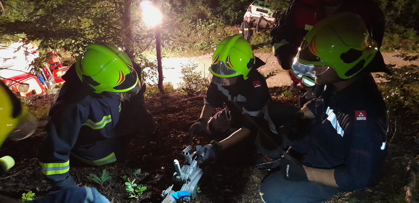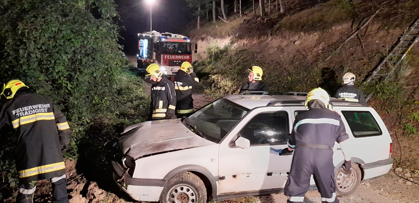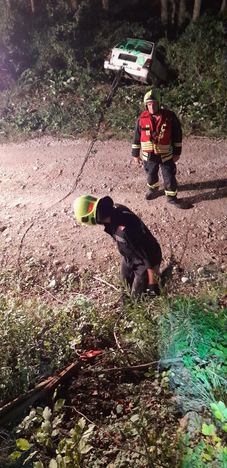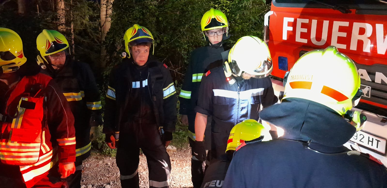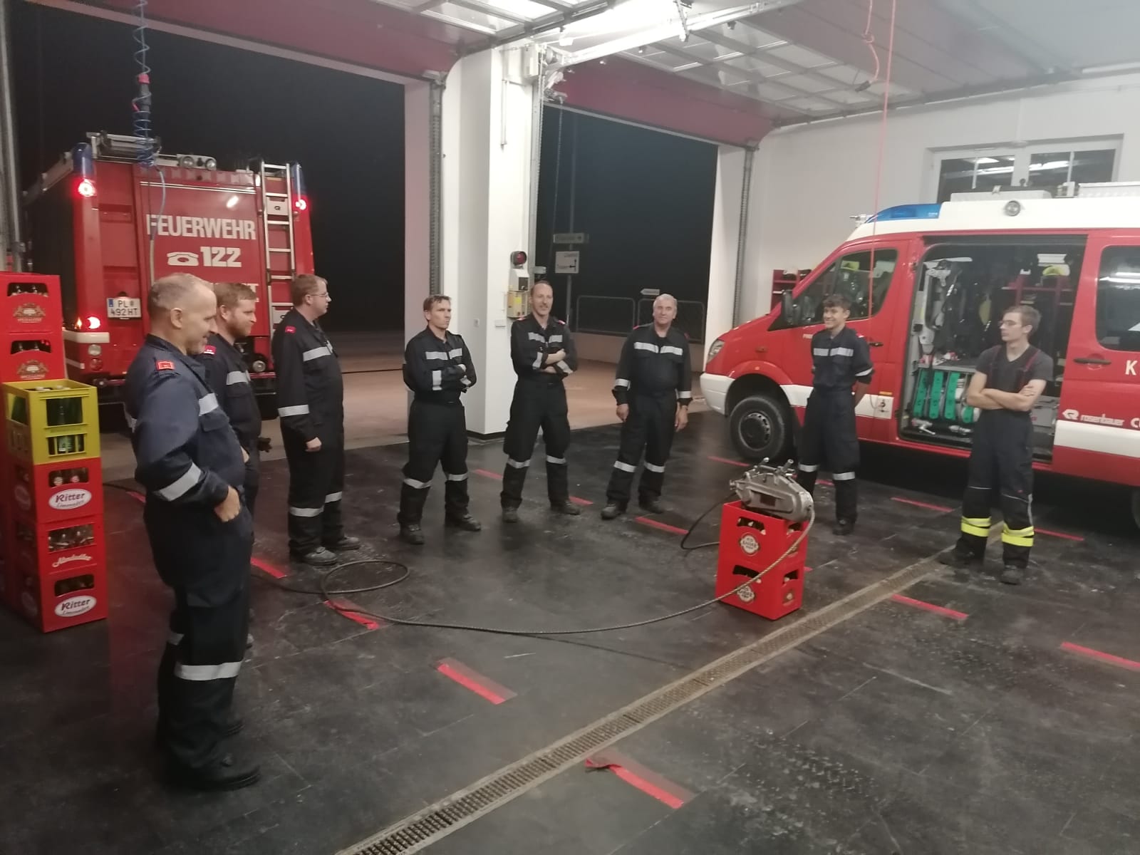 Bei der heutigen techn. Übung wurde eine PKW - Bergung im unwegsamen Gelände mittels Greifzug geübt.