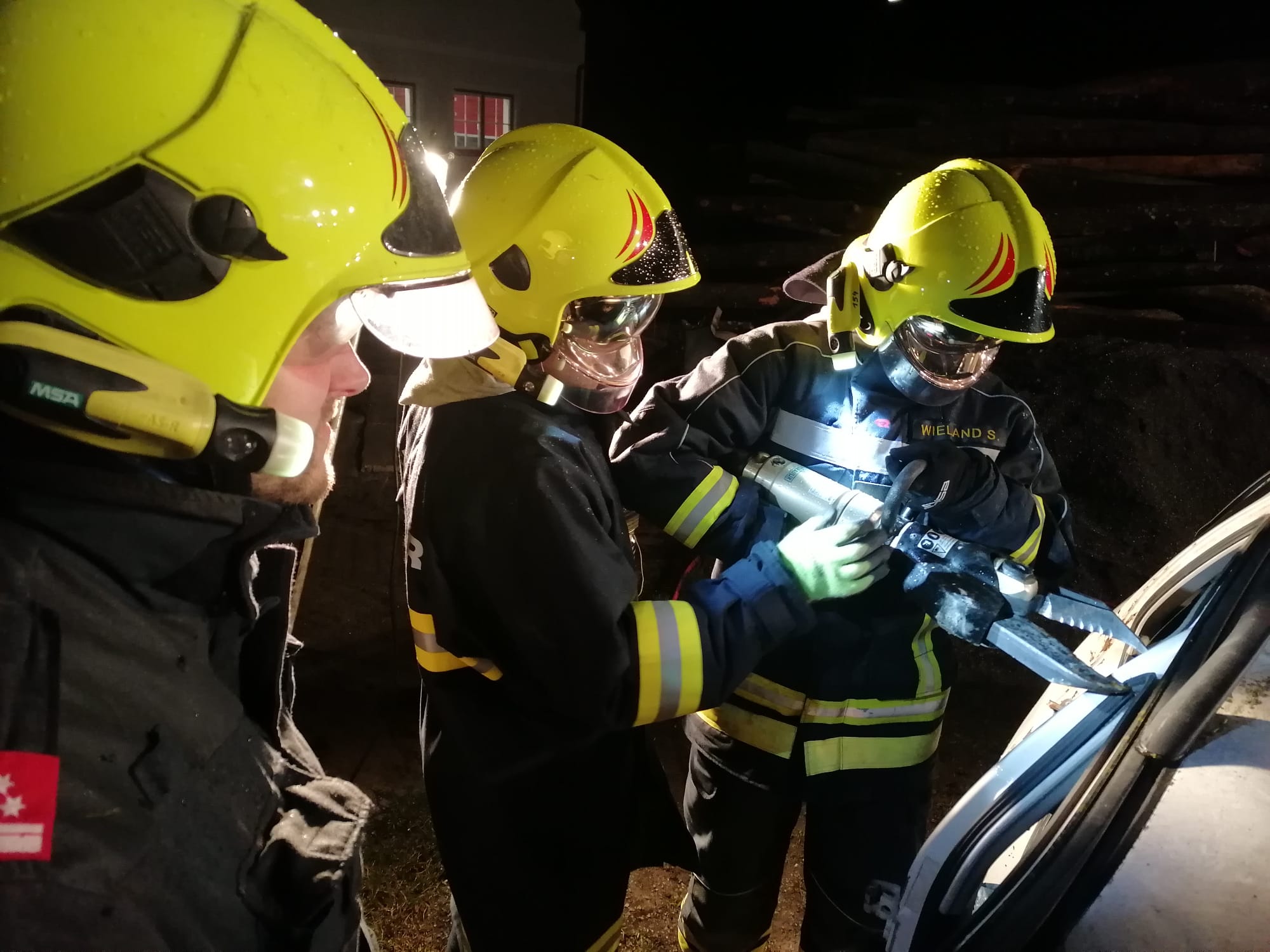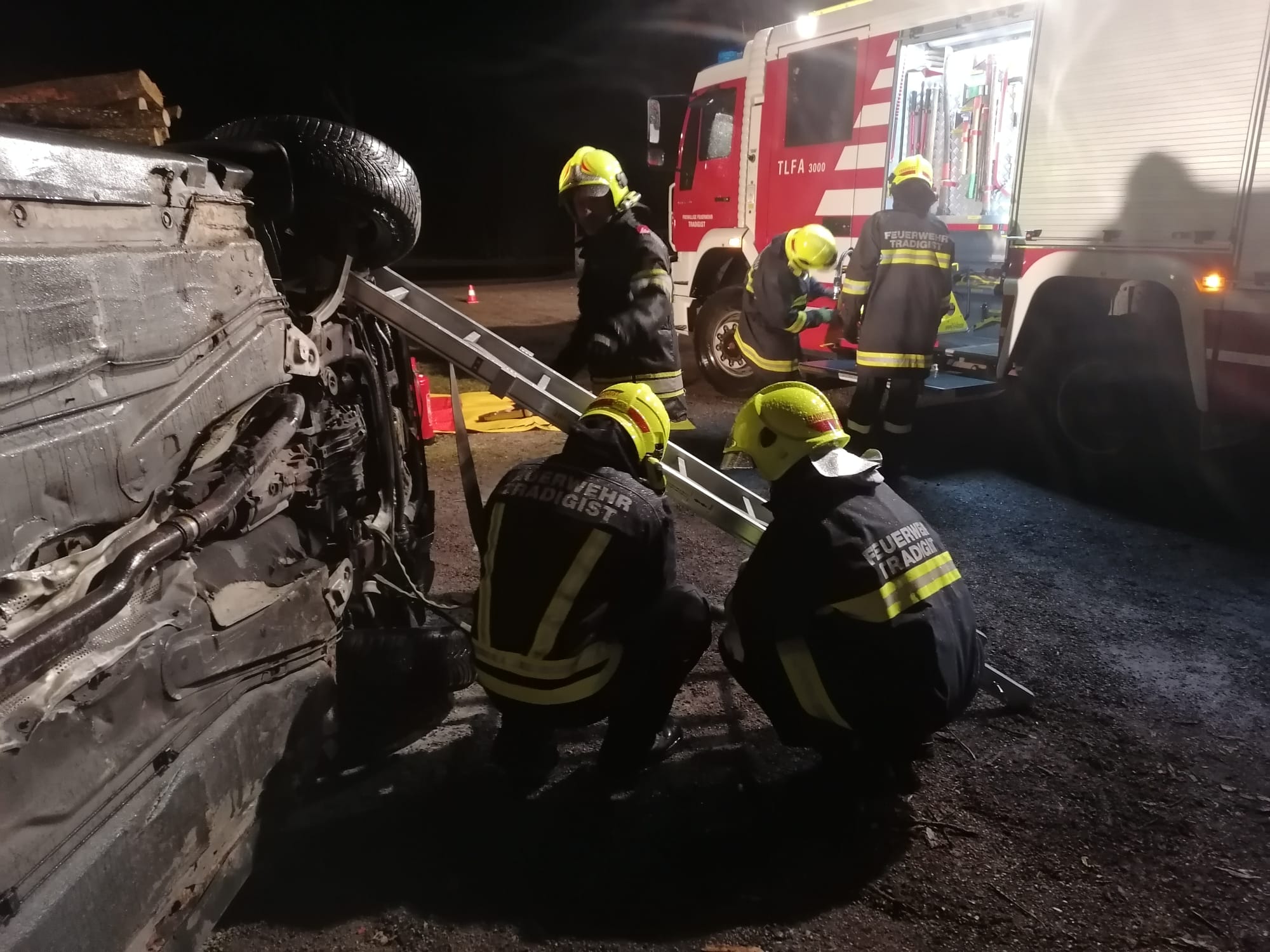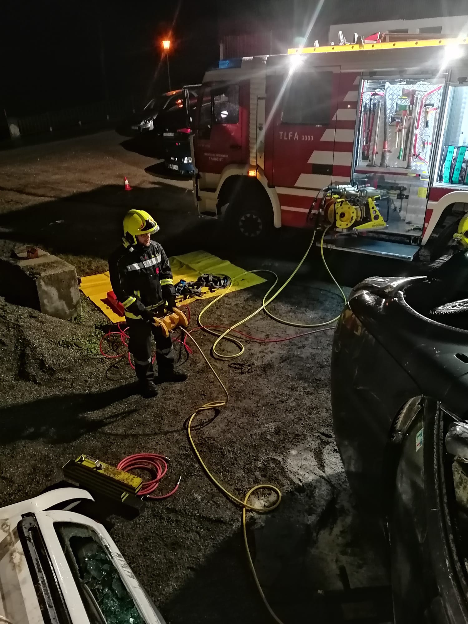 Zum Einsatz kamen: hydraulisches Rettungsgerät (Schere und Spreizer), Hebekissen, Glassäge, Spineboard und diverse Absicherungs- und Beleuchtungsmittel.