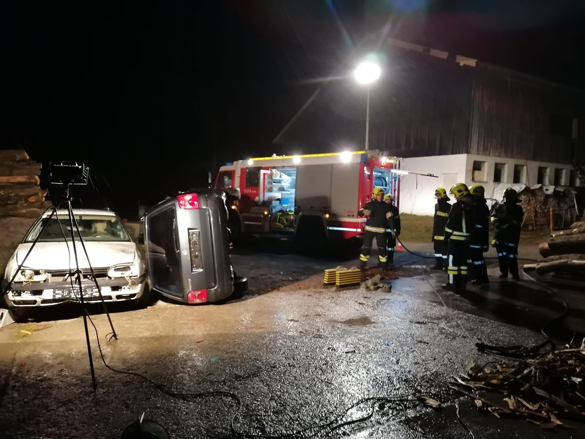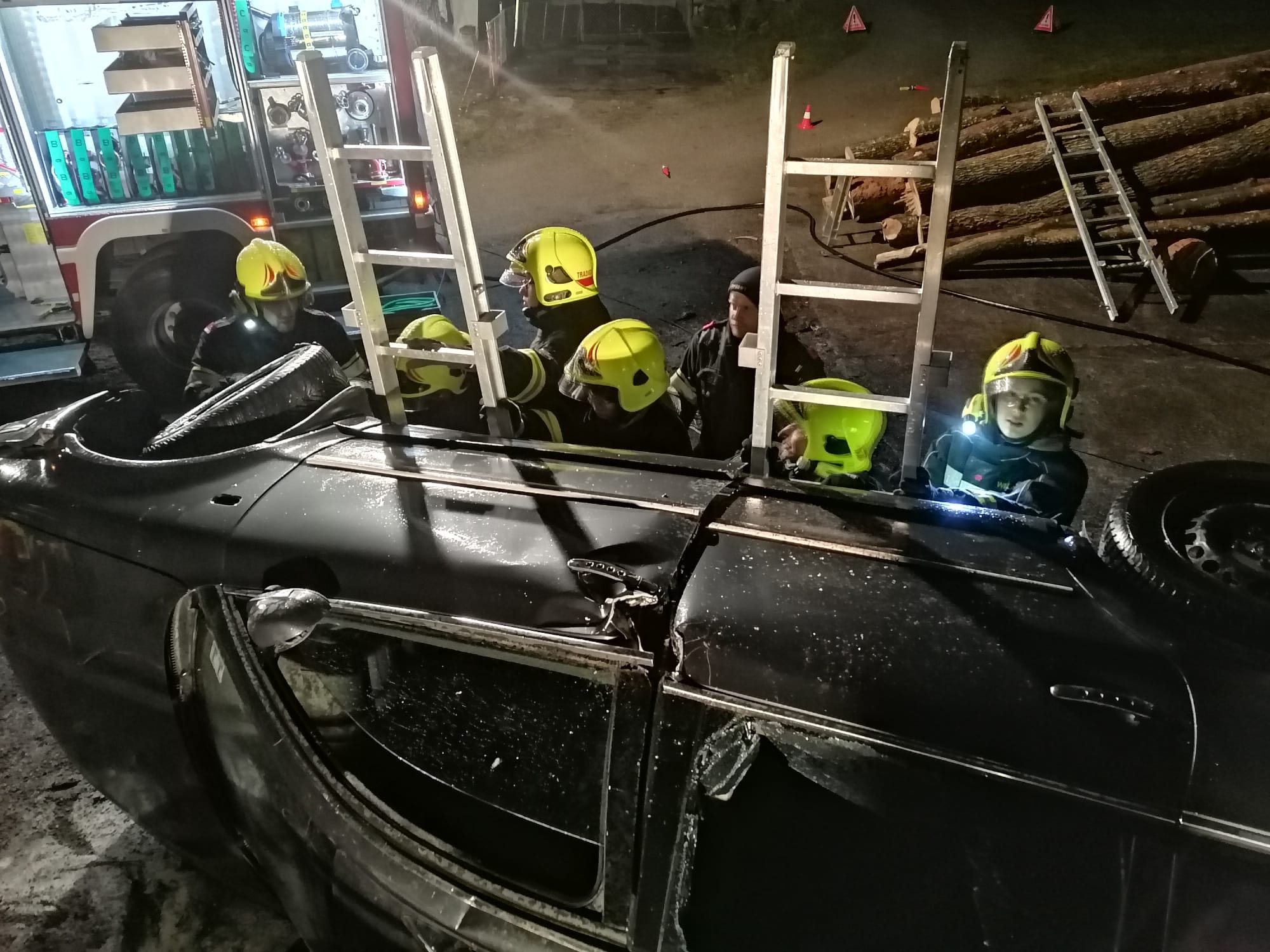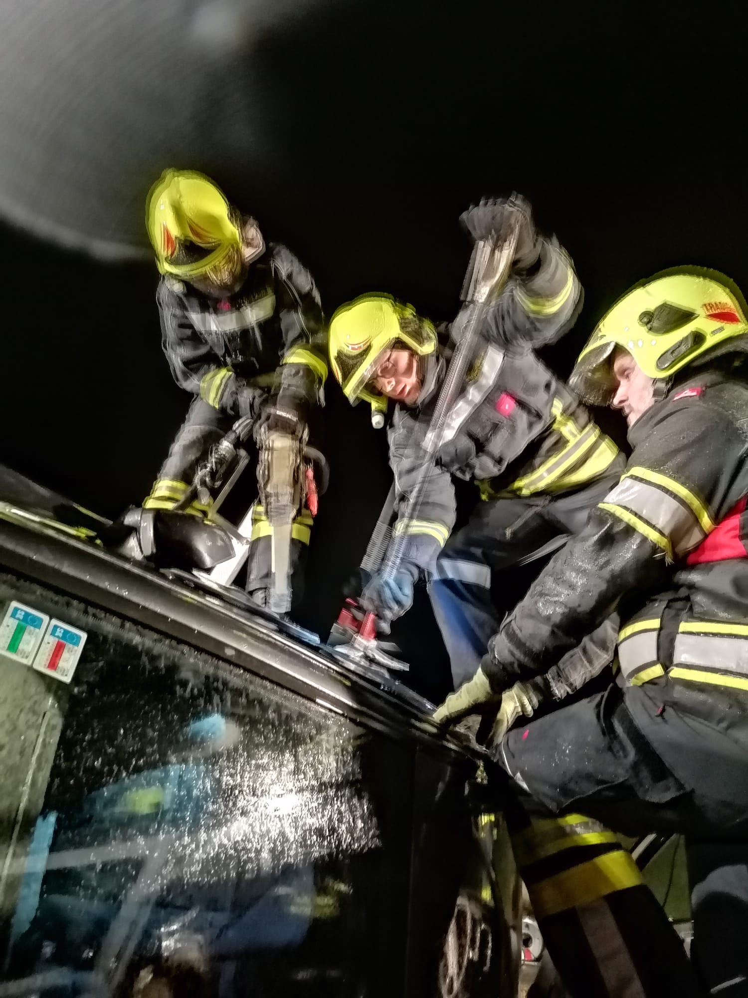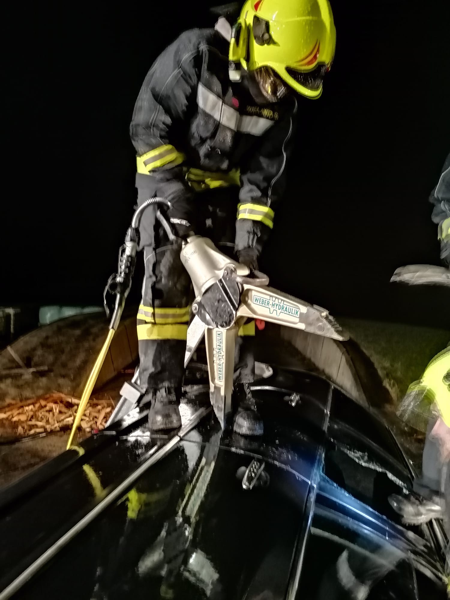 Zum Einsatz kamen: hydraulisches Rettungsgerät (Schere und Spreizer), Hebekissen, Glassäge, Spineboard und diverse Absicherungs- und Beleuchtungsmittel.