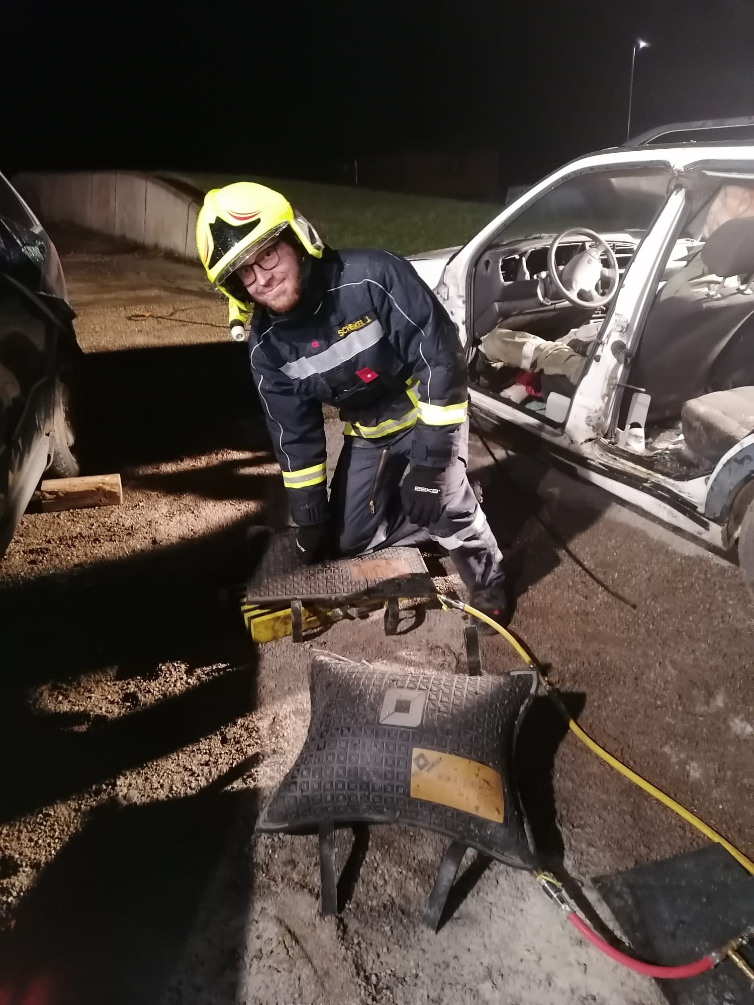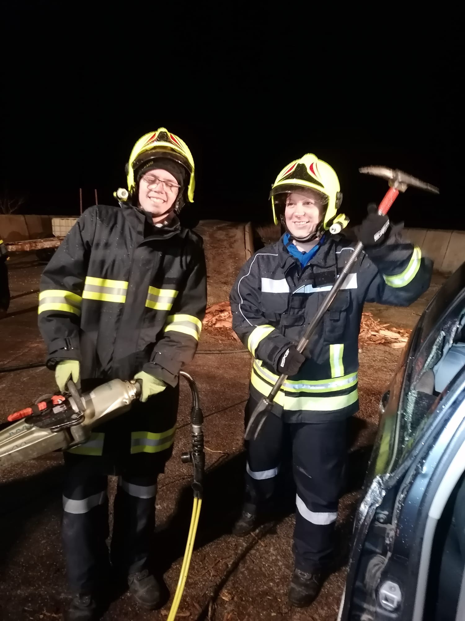 Thema der heutigen Übung war "technischer Einsatz nach Verkehrsunfall". Übungsannahme waren 2 verunfallte PKW mit einer eingeklemmten Person.