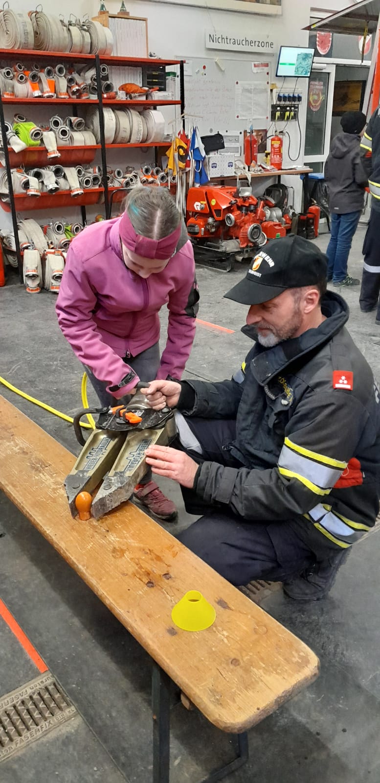 In kleinen Übungsgruppen aufgeteilt wurden Gerätschaften und Hilfsmittel in den Feuerwehrfahrzeugen erkundet, Geschicklichkeit mit dem hydraulischen Rettungsgerät (Spreizer) erprobt, und Aufgabenstellungen über Funk übermittelt. Den Abschluss stellte eine Besprechung aller Übungsteile dar.