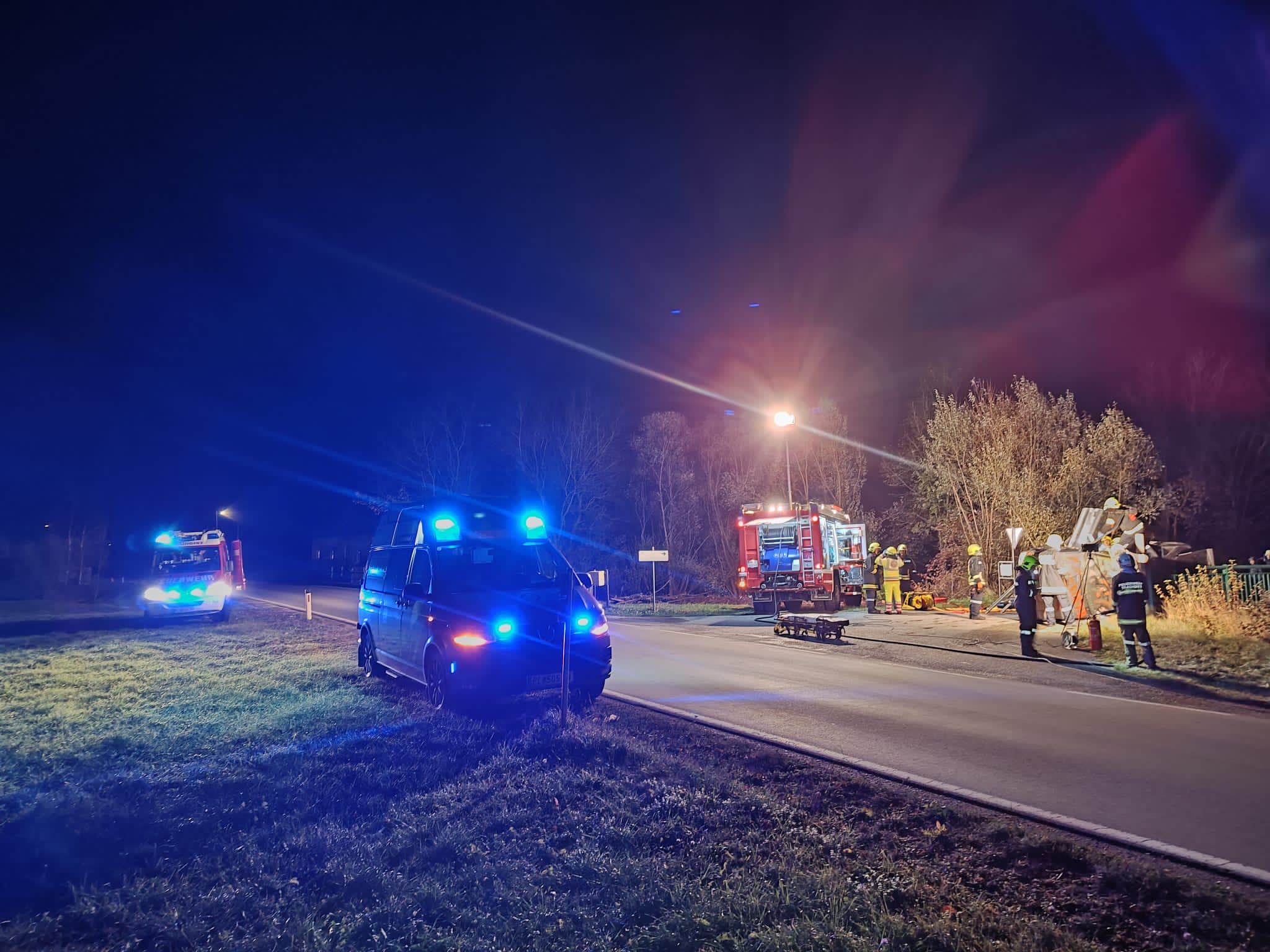 Übungsszenario war ein Verkehrsunfall mit einem PKW, welcher seitlich auf der Straße an einem Brückengeländer lag.