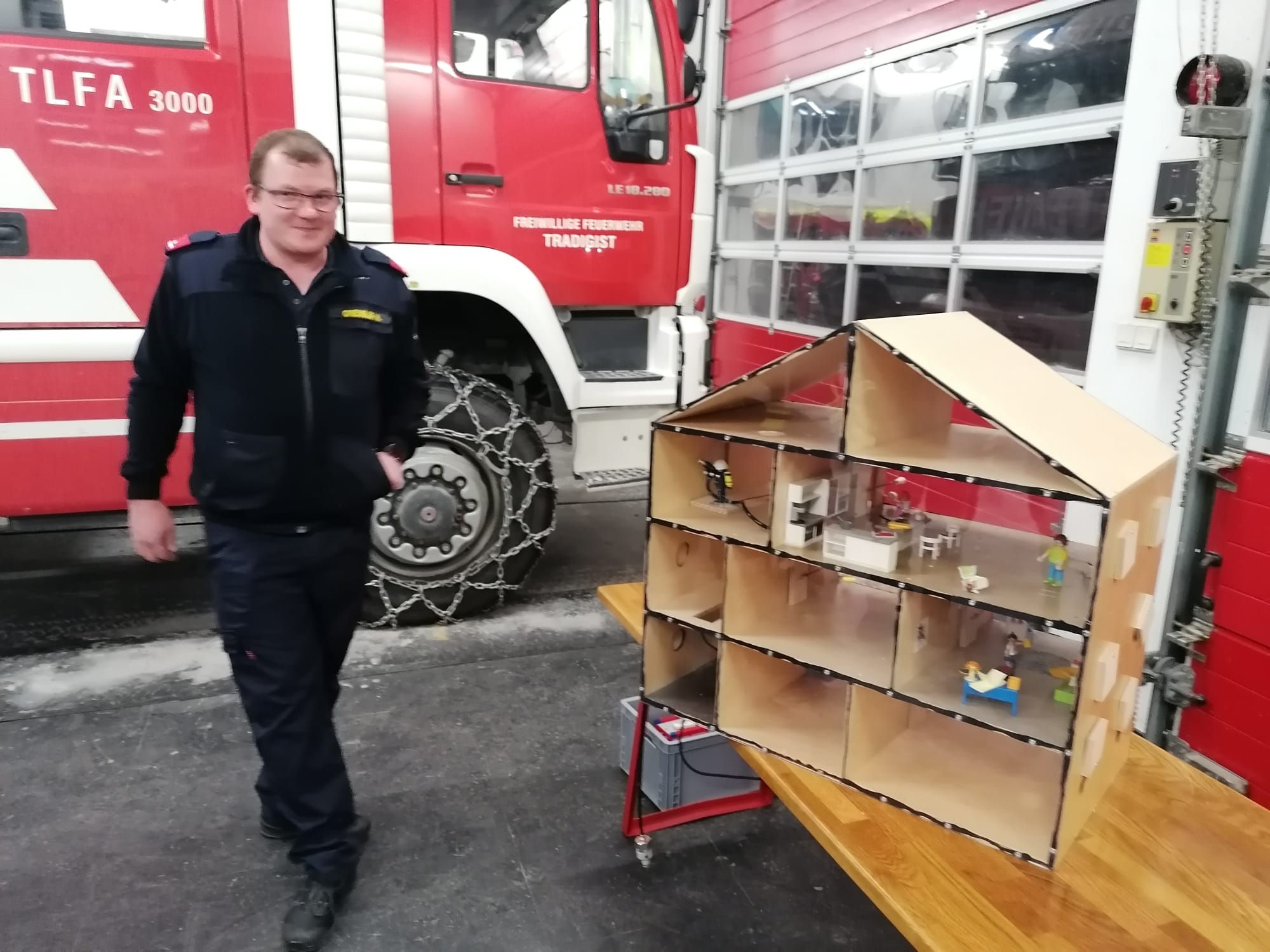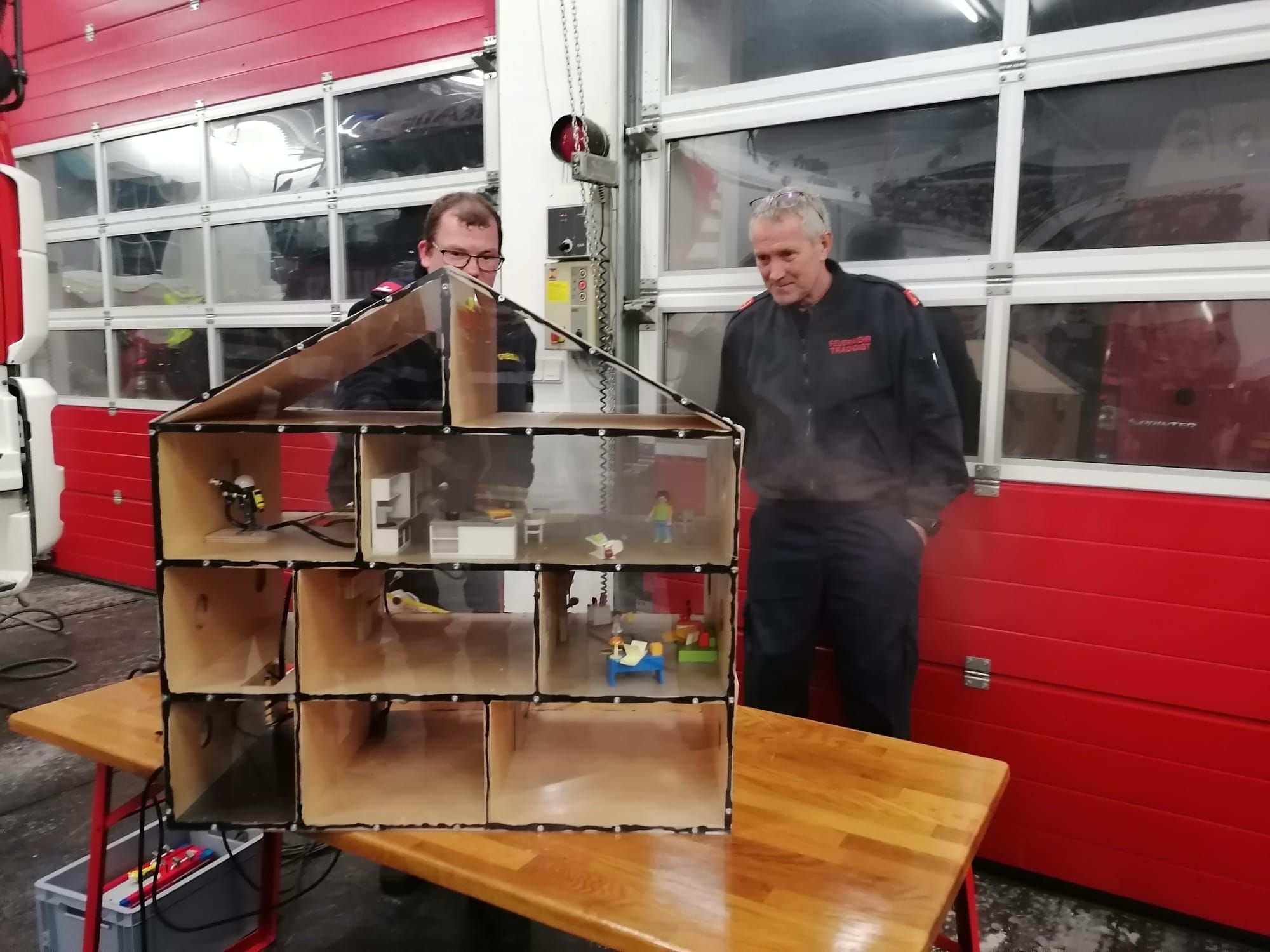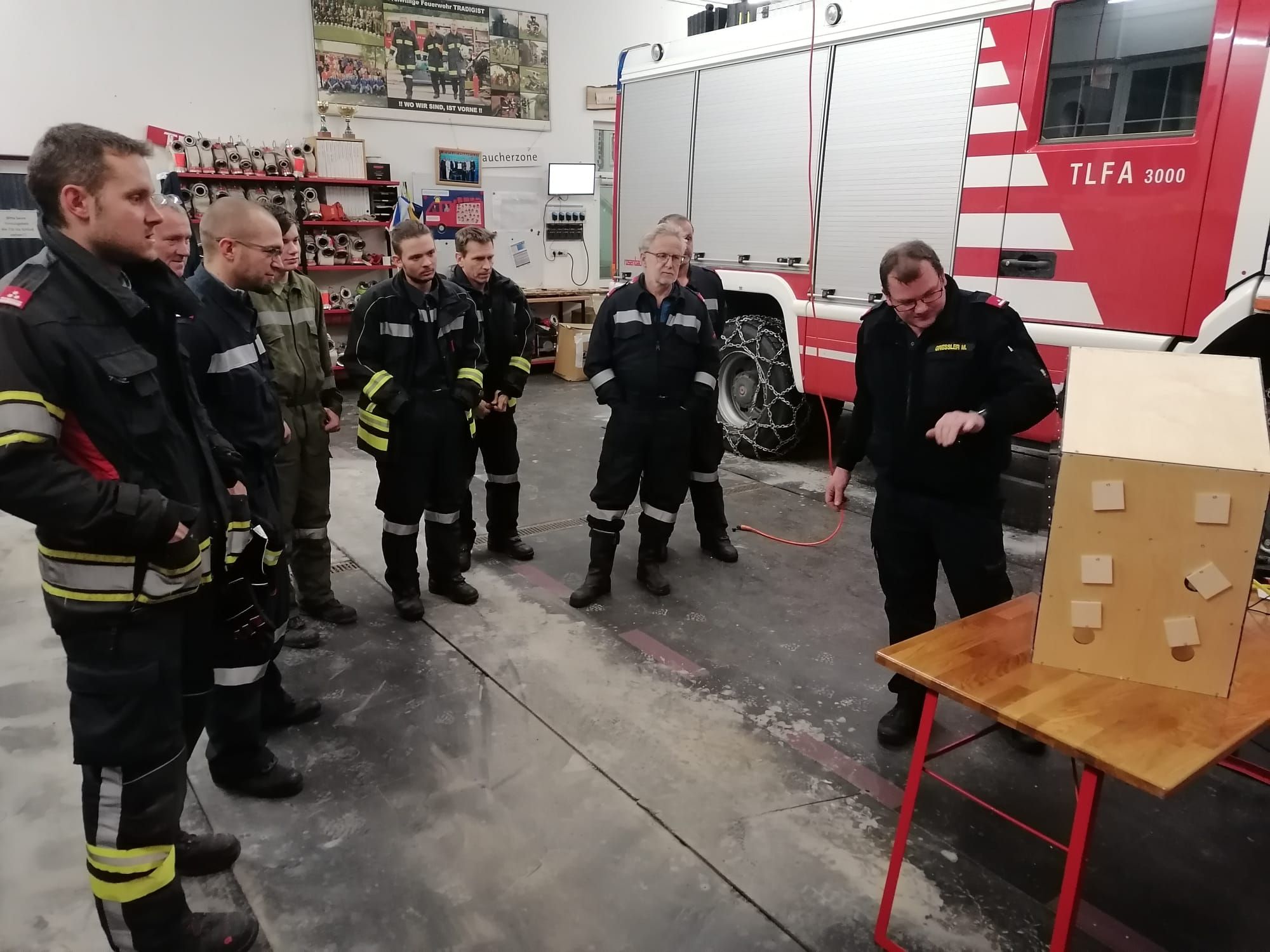 - Anhand eines selbstgebauten Modells zeigte uns unser Feuerwehrkollege aus Rabenstein, Michael Griessler, den Einsatz von einem Überdruckbelüfter in einem verrauchten Gebäude.