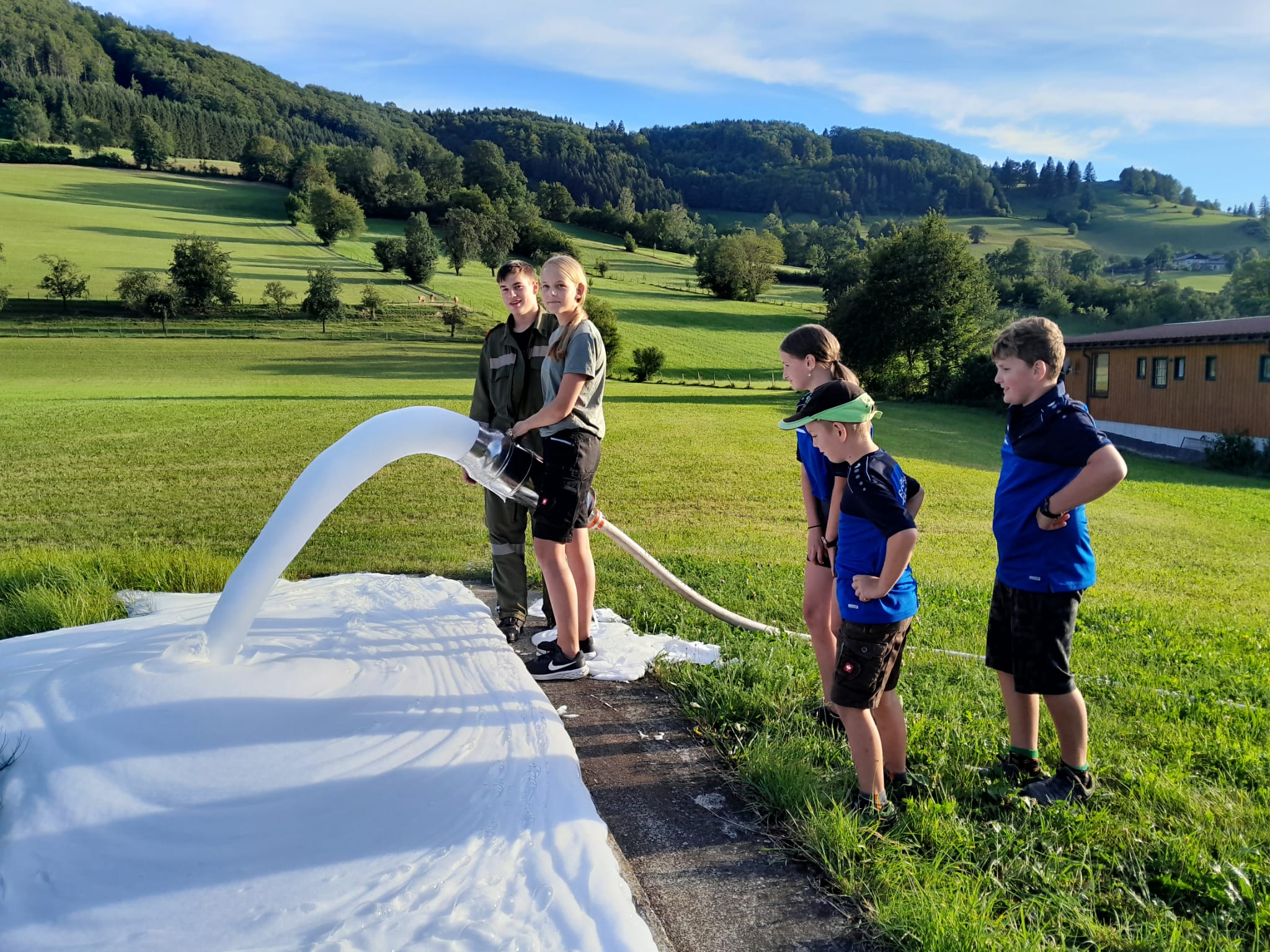 Es galt den richtigen Umgang mit Feuerlöschern und Schaummittel zu üben. Im Zuge dessen wurde das Wissen über verschiedene Löschtechniken, Löschmittel und deren richtige Handhabung thematisiert und vertieft.