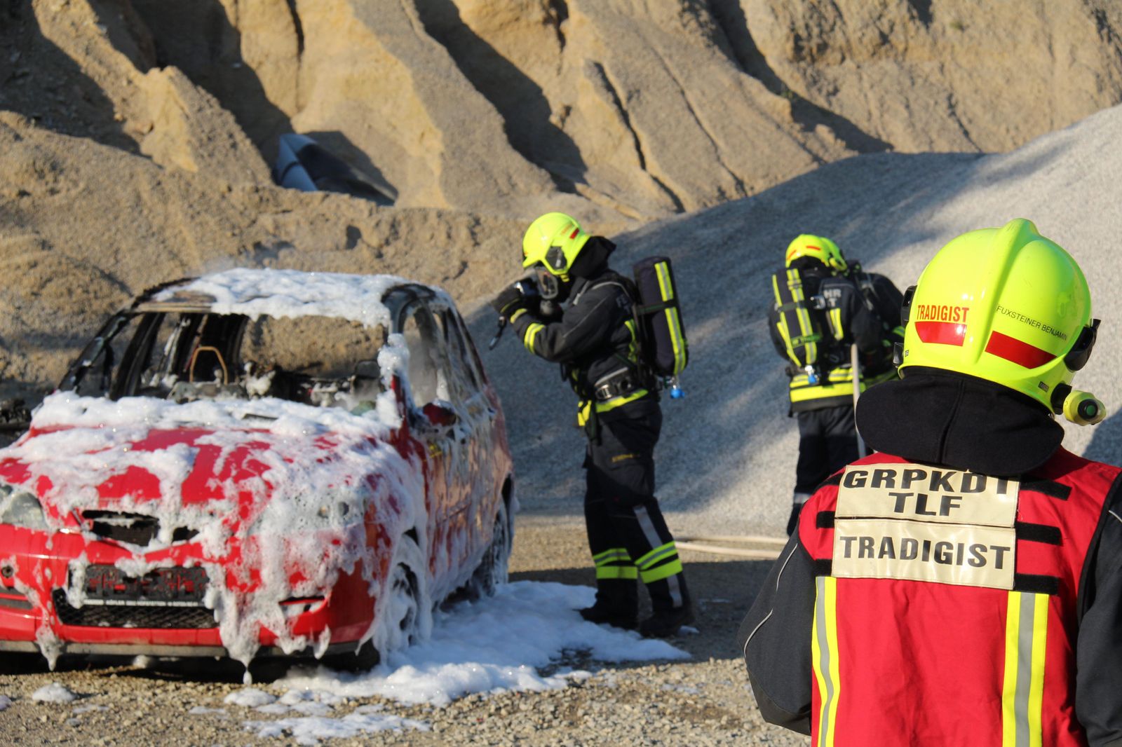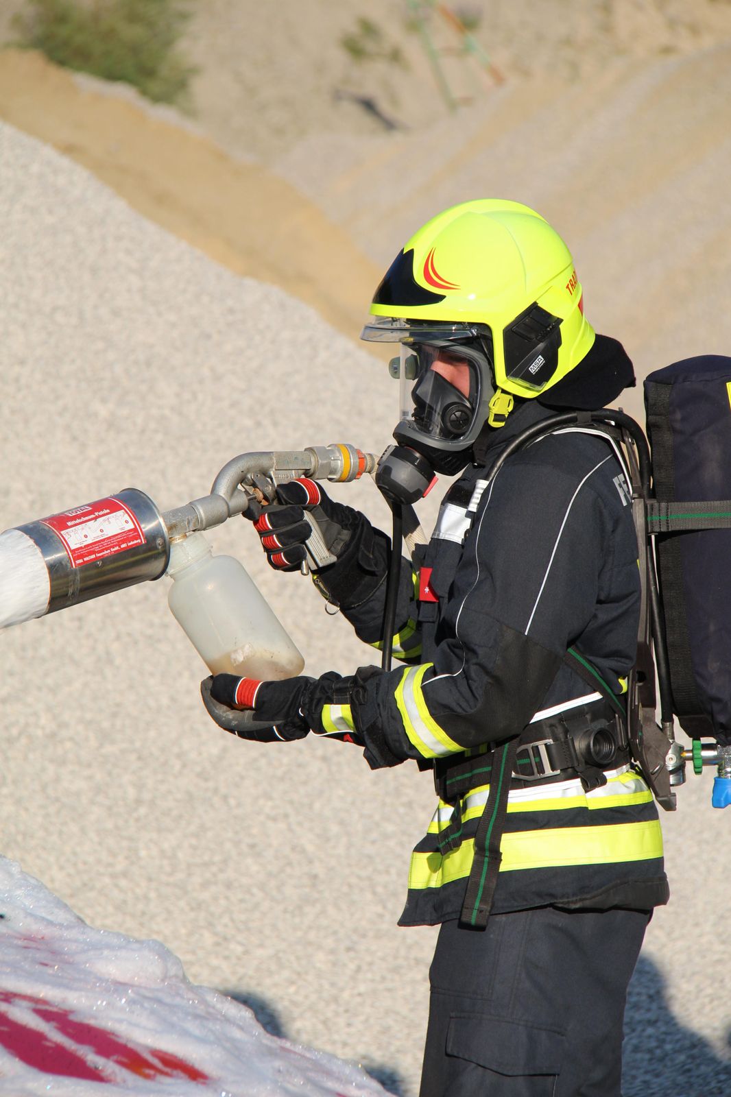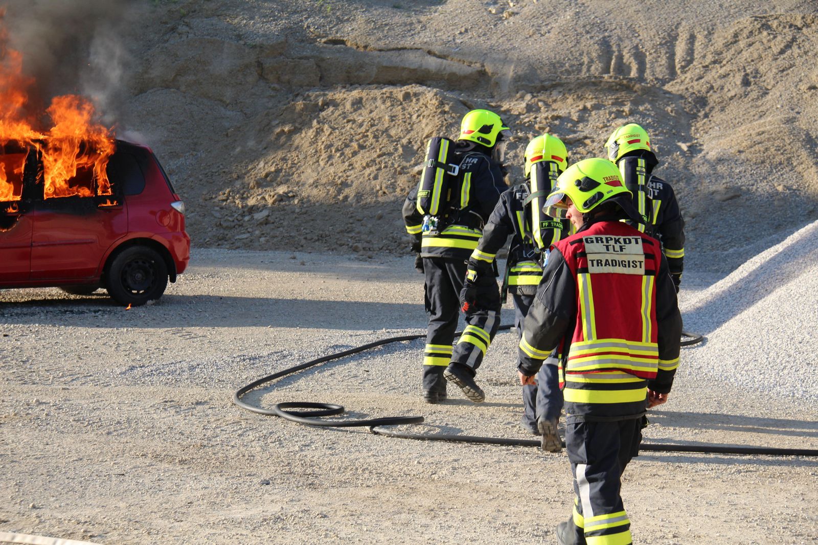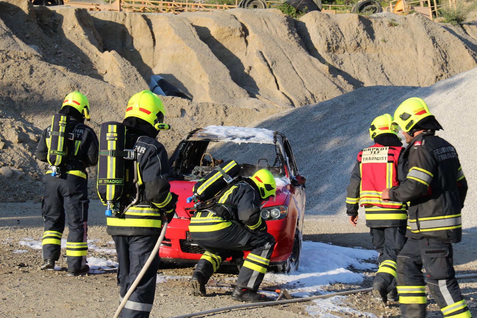 Vor Ort stellte sich rasch heraus, dass es sich um eine geplante Übung handelte. Dennoch wurde die Situation von allen Beteiligten mit der nötigen Ernsthaftigkeit und höchster Motivation behandelt. Nach dem Eintreffen begann der Atemschutztrupp mit der Brandbekämpfung: Zunächst wurde der angenommene Fahrzeugbrand mit Wasser bekämpft, anschließend erfolgte eine Nachlöscharbeit mit Schaum – selbstverständlich unter Verwendung des vollständigen Atemschutzes.