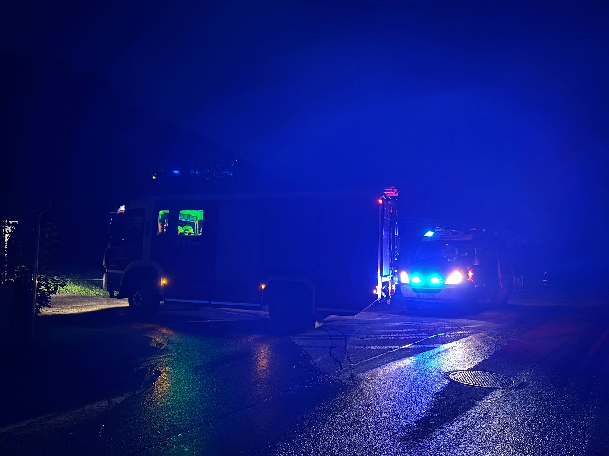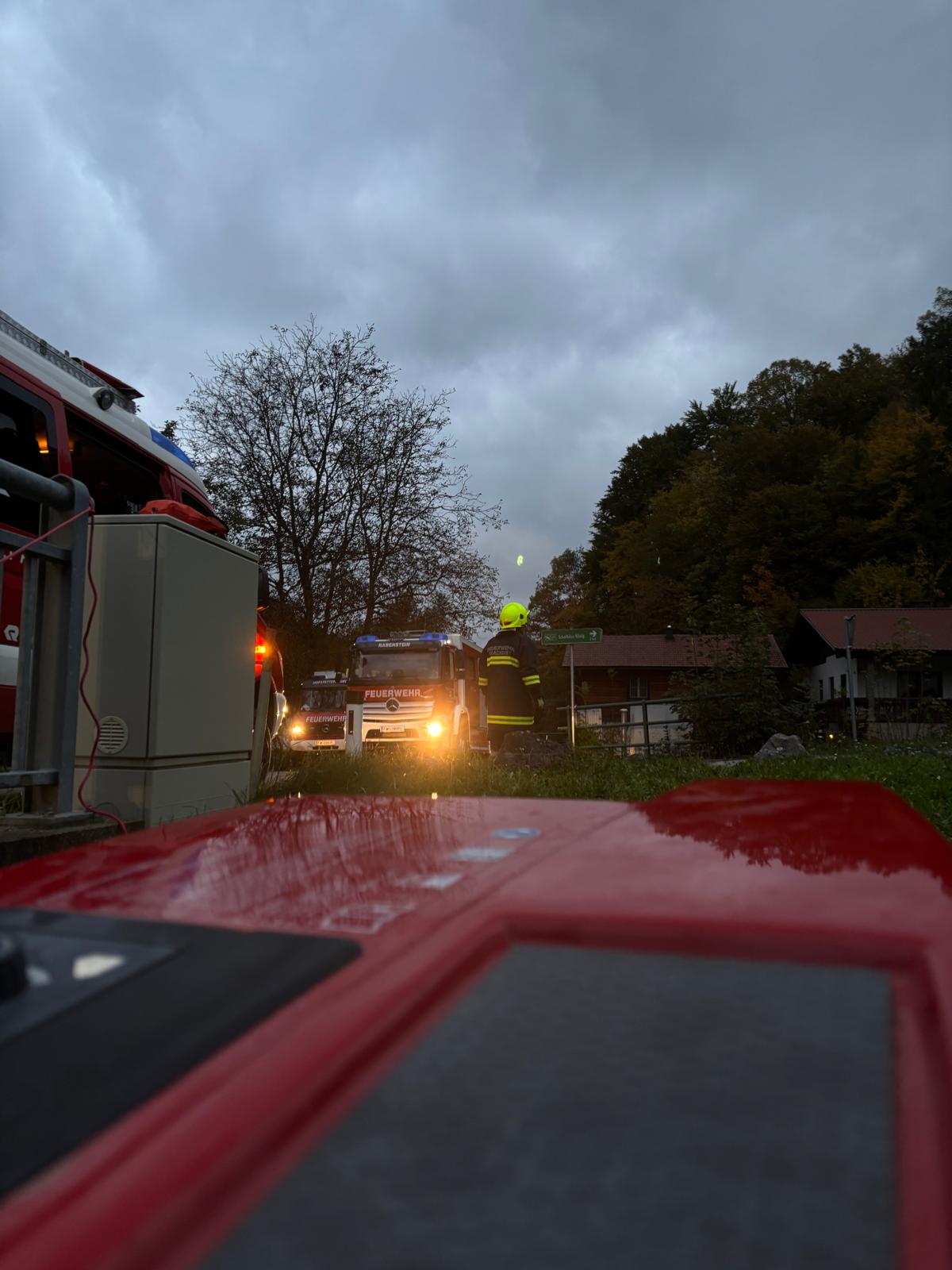 Ein besonderes Augenmerk lag auf der Sicherstellung der Löschwasserversorgung. Aufgrund der großen Entfernung zur nächstgelegenen Wasserentnahmestelle musste eine Relaisleitung aufgebaut werden. Diese bestand aus 5 Pumpen und insgesamt 56 B-Schläuchen, was einer Gesamtlänge von 1.120 Metern entsprach. Dabei waren rund 170 Höhenmeter zu überwinden – eine erhebliche Herausforderung, die von den eingesetzten Kräften erfolgreich gemeistert wurde.