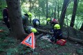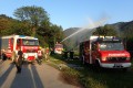 Thema der ersten Station war ein sogenannter Löschangriff. Die ersten beiden Löschleitungen wurden vom TLF bewerkstelligt, während die Mannschaft des KLF die Wasserversorgung vom Bach bis zum